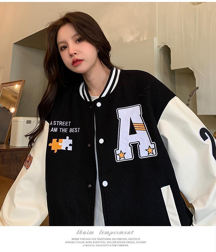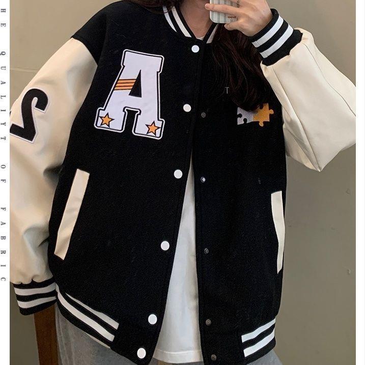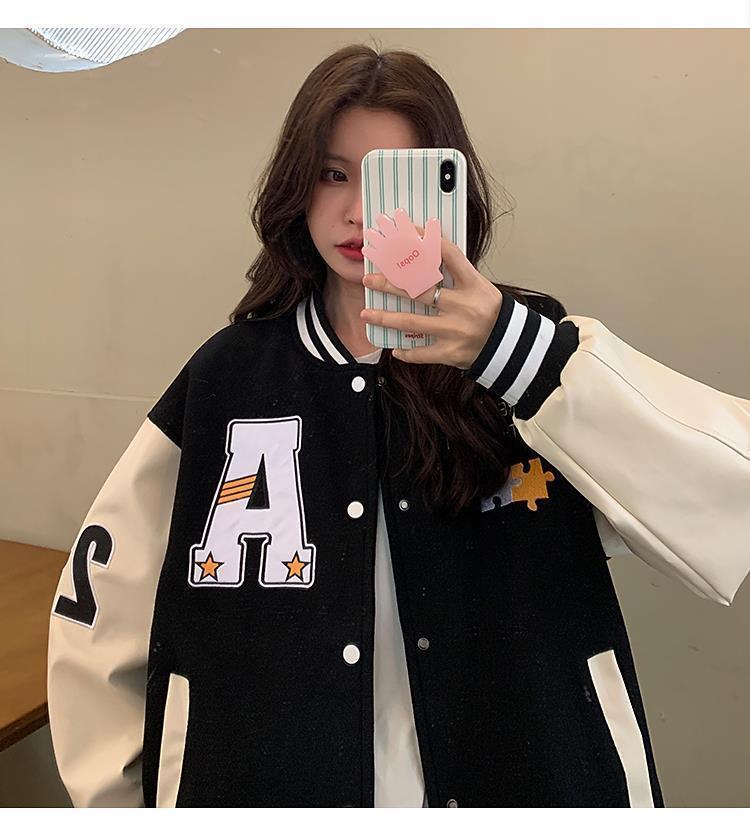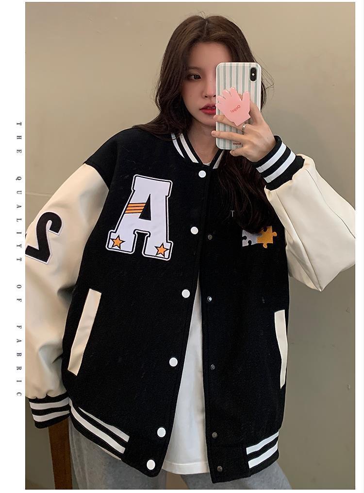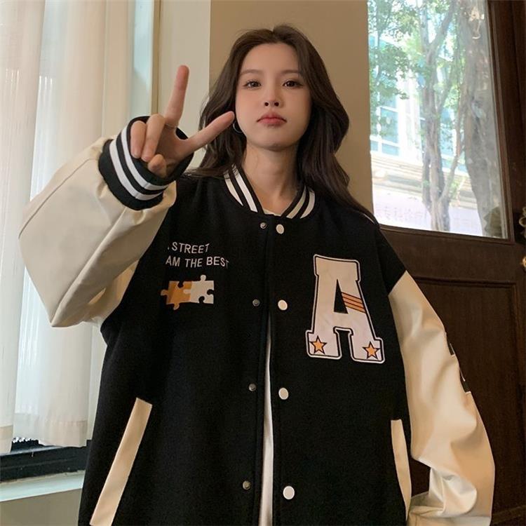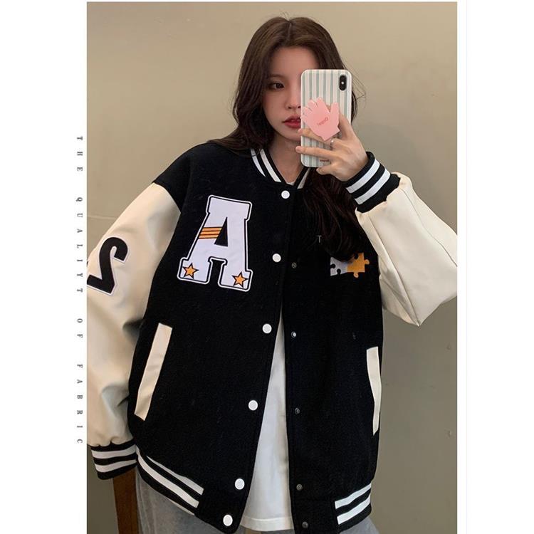 美式復古棒球服外套少女生2022春秋裝新款休閒寬松學生學院風夾克