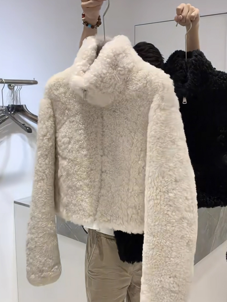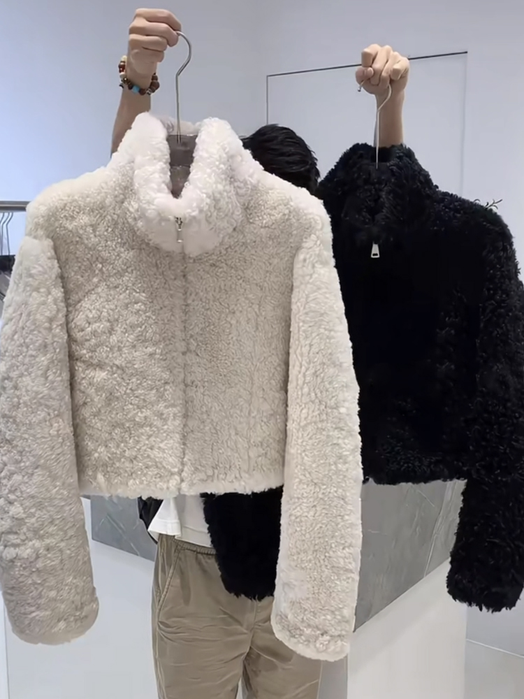 韓版時尚休閒加厚立領羊羔毛外套女秋冬小衆洋氣外穿寬松夾克上衣