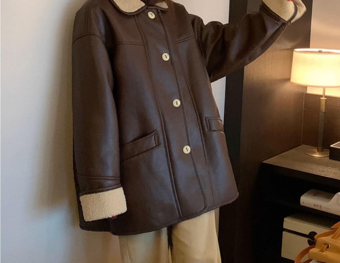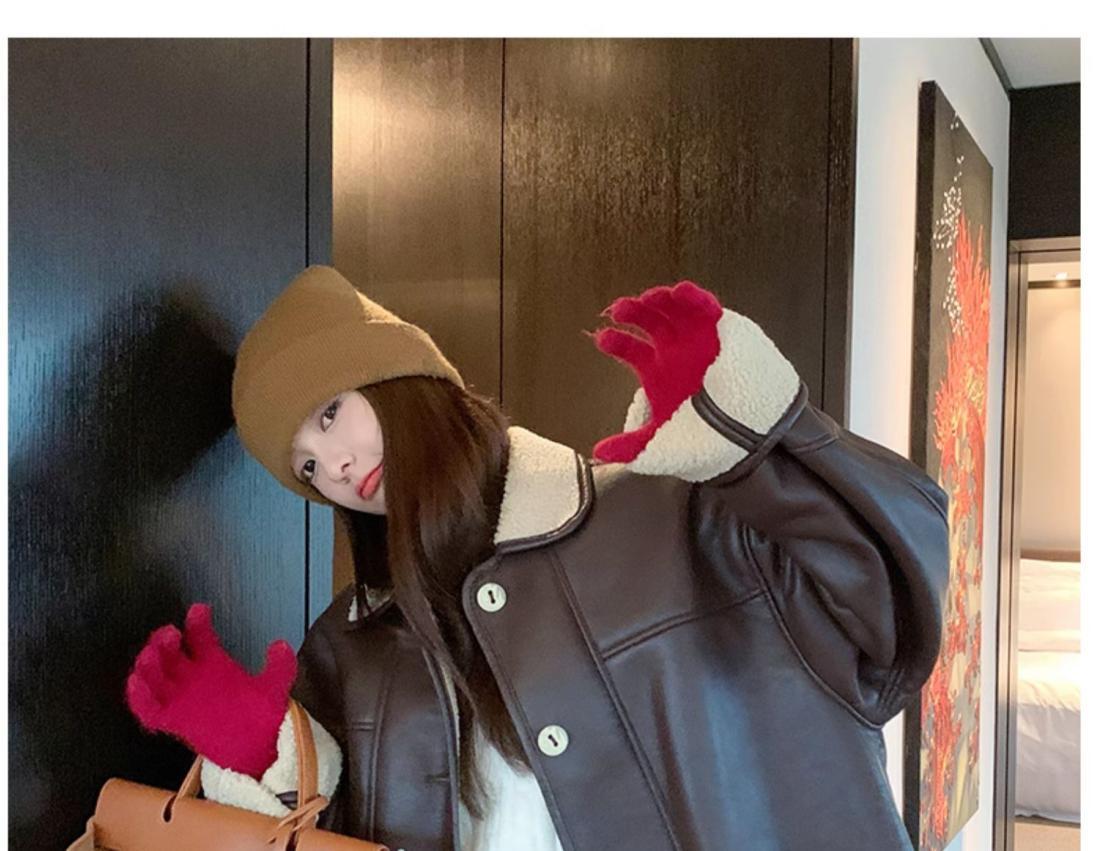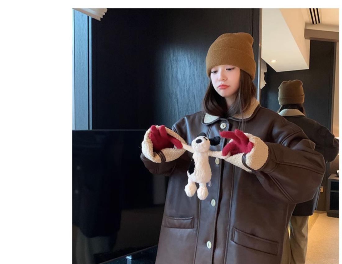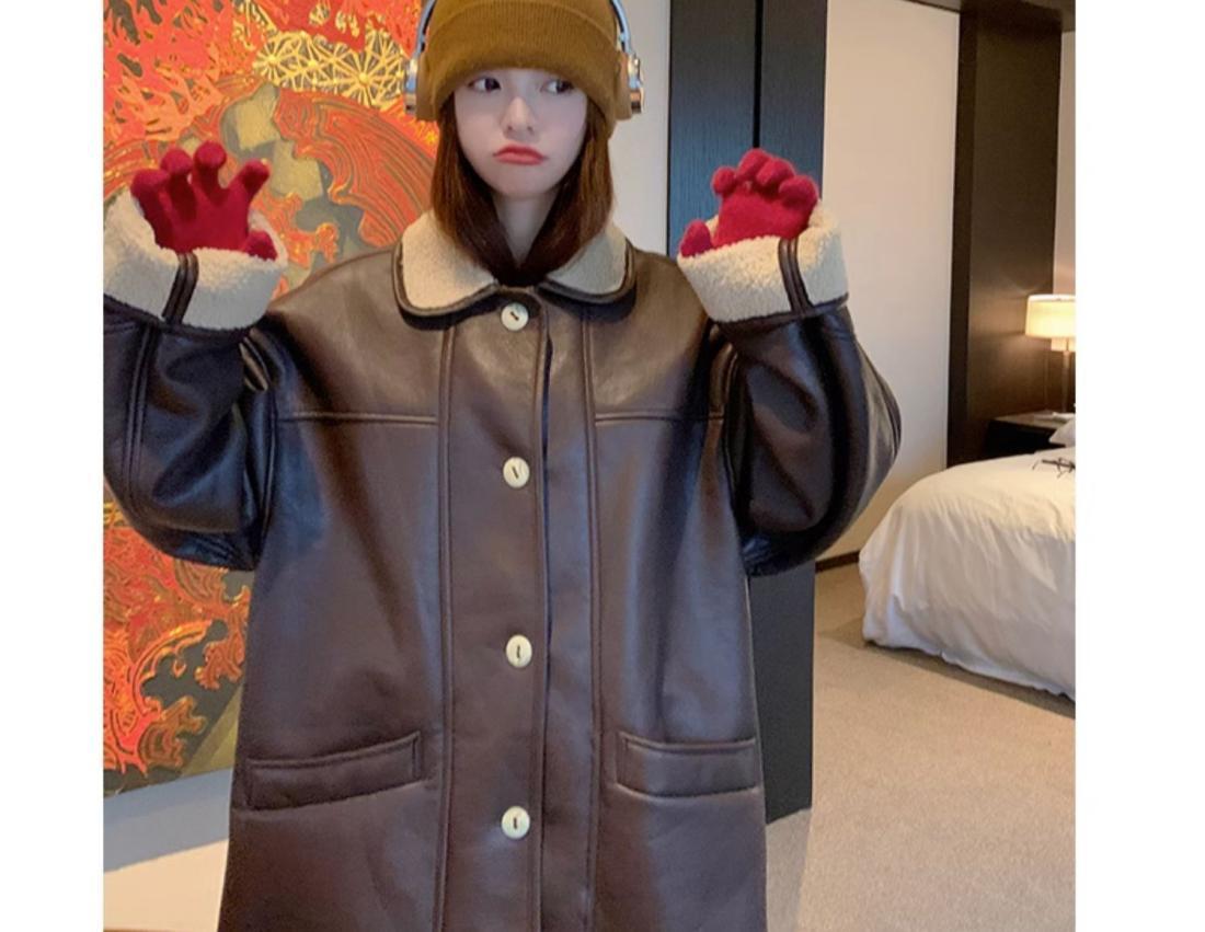 胖mm300斤大碼復古羊羔毛外套女秋冬寬松撞色加厚皮毛一體機車服