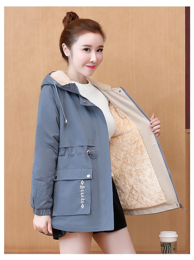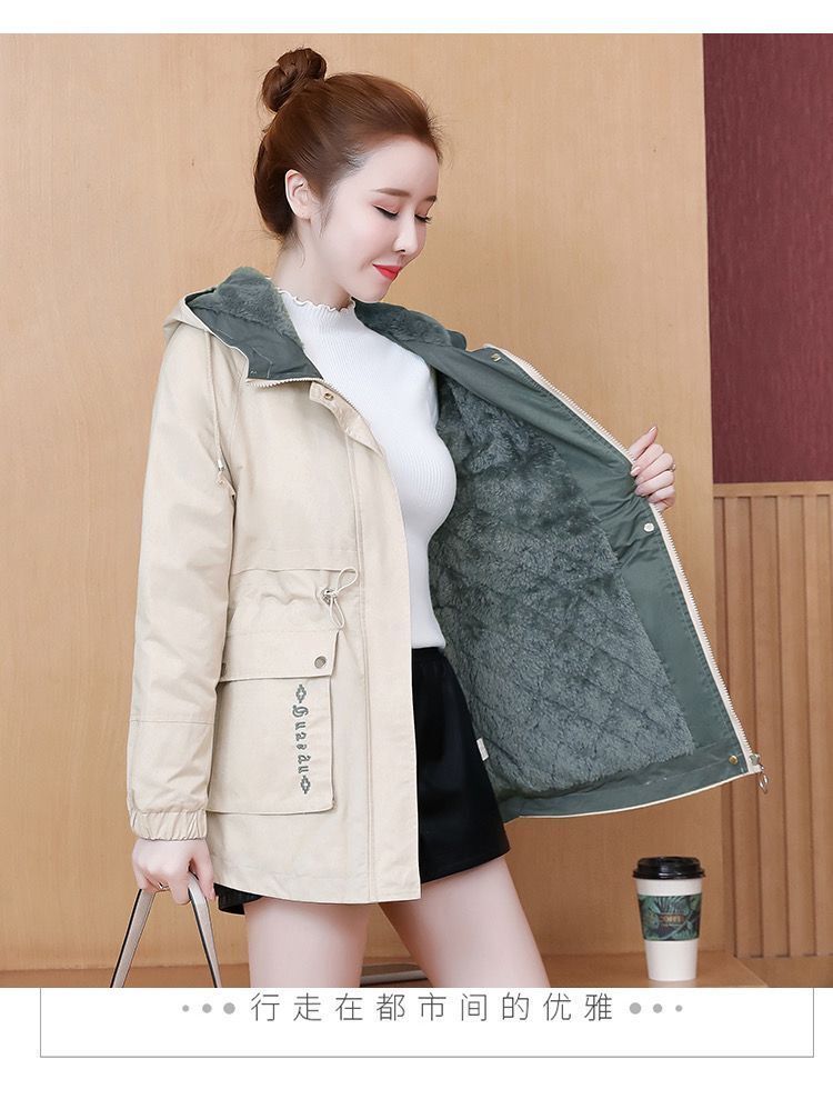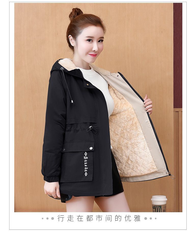 時尚加絨風衣外套女秋冬中長款2025新款韓版休閒保暖棉衣派克棉服