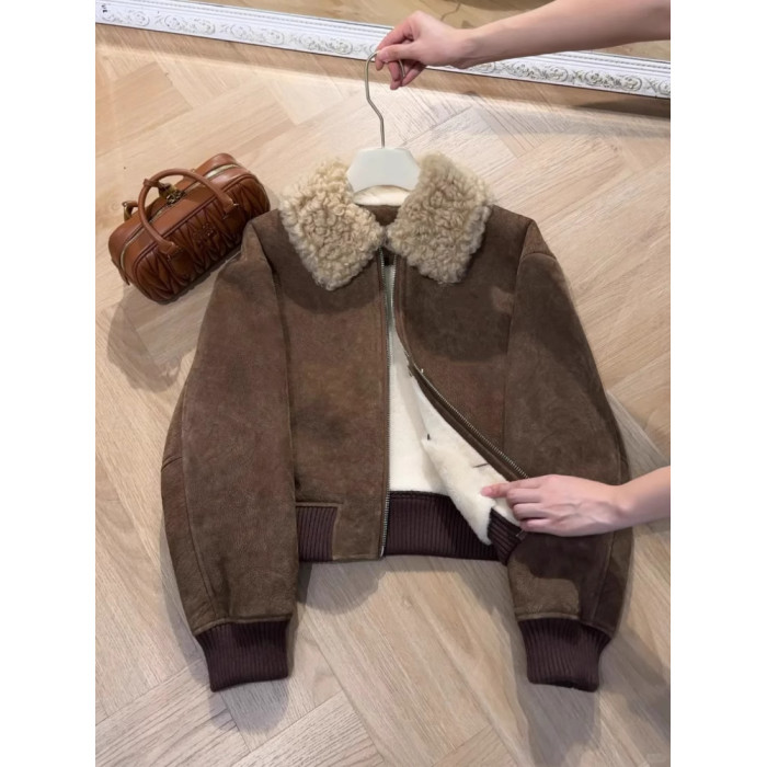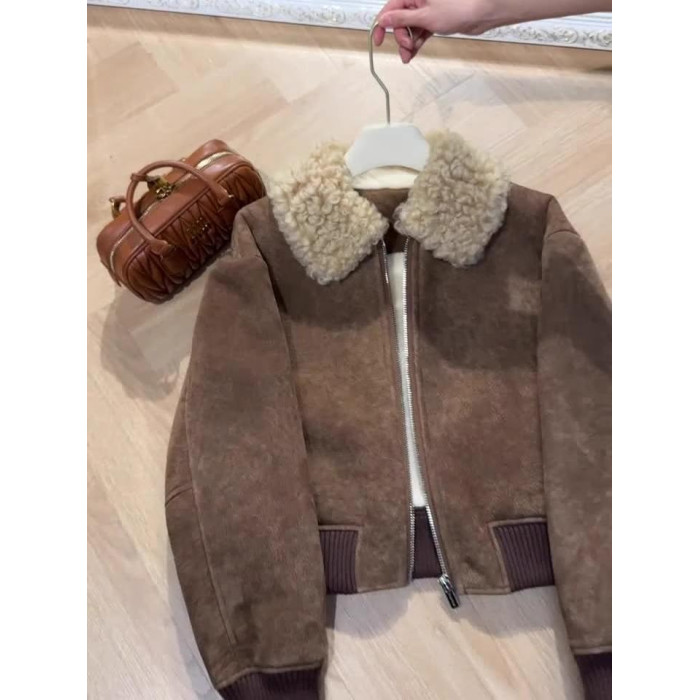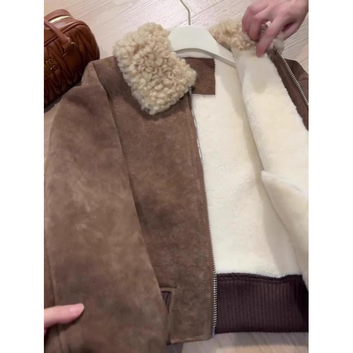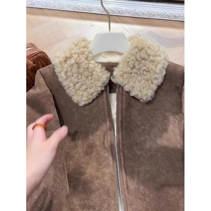 小衆韓系休閒高級感復古短款羊羔毛外套女冬季寬松顯瘦保暖洋氣潮