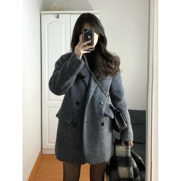 毛呢外套女短款小個子2024新款秋冬季高級感西裝赫本風厚呢子大衣