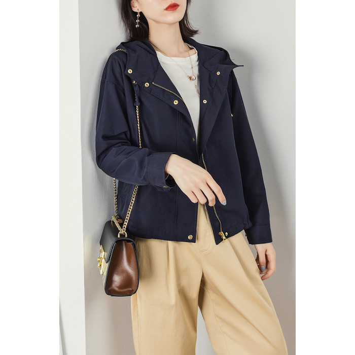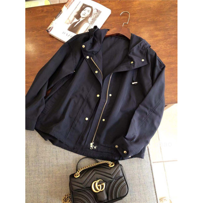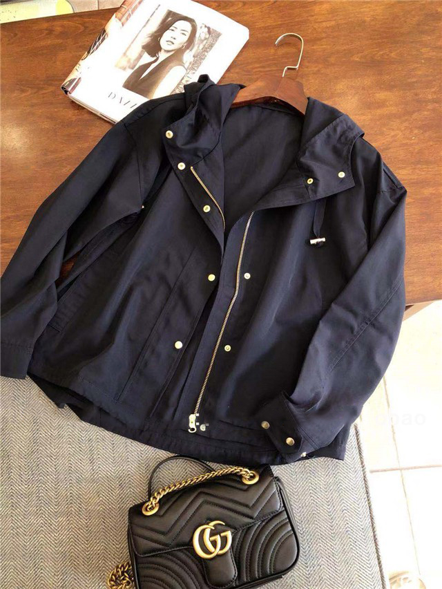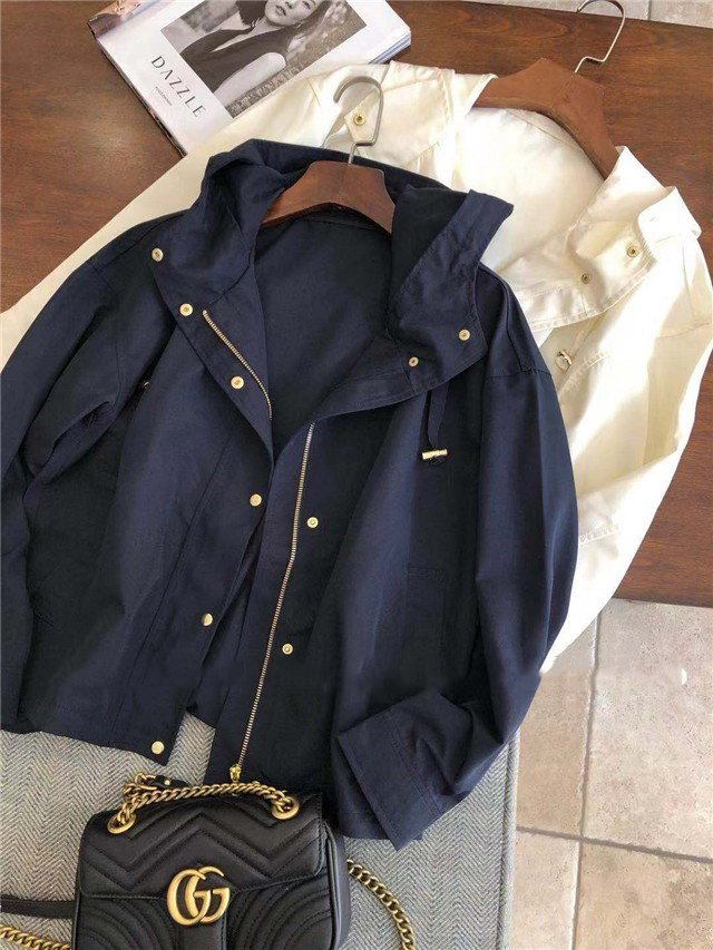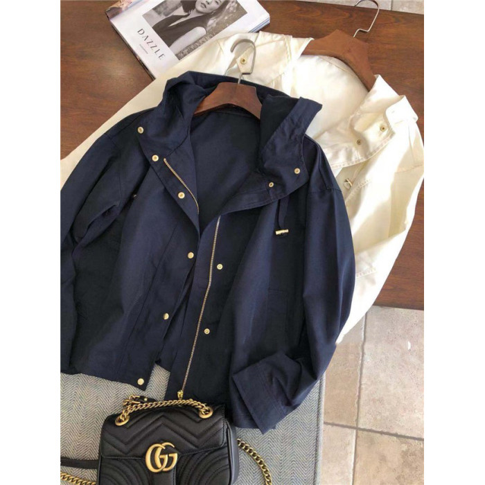 出日本專櫃多餘 23春新chao百搭帥氣金色釦短款帶帽防曬衣外套
