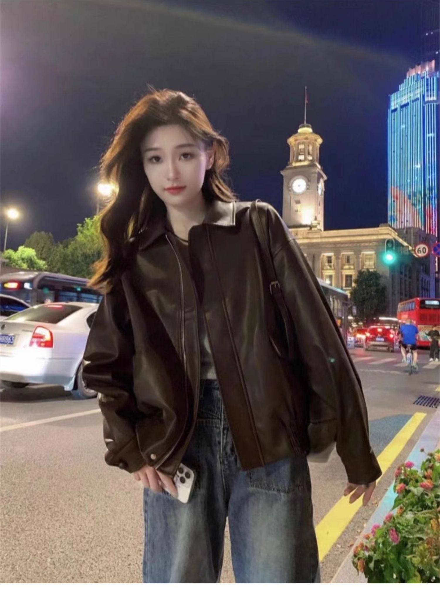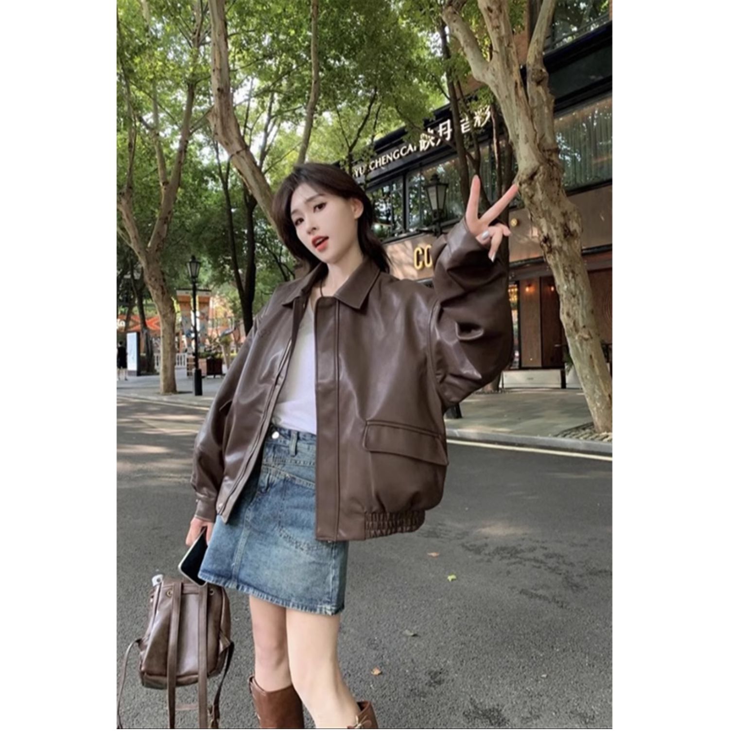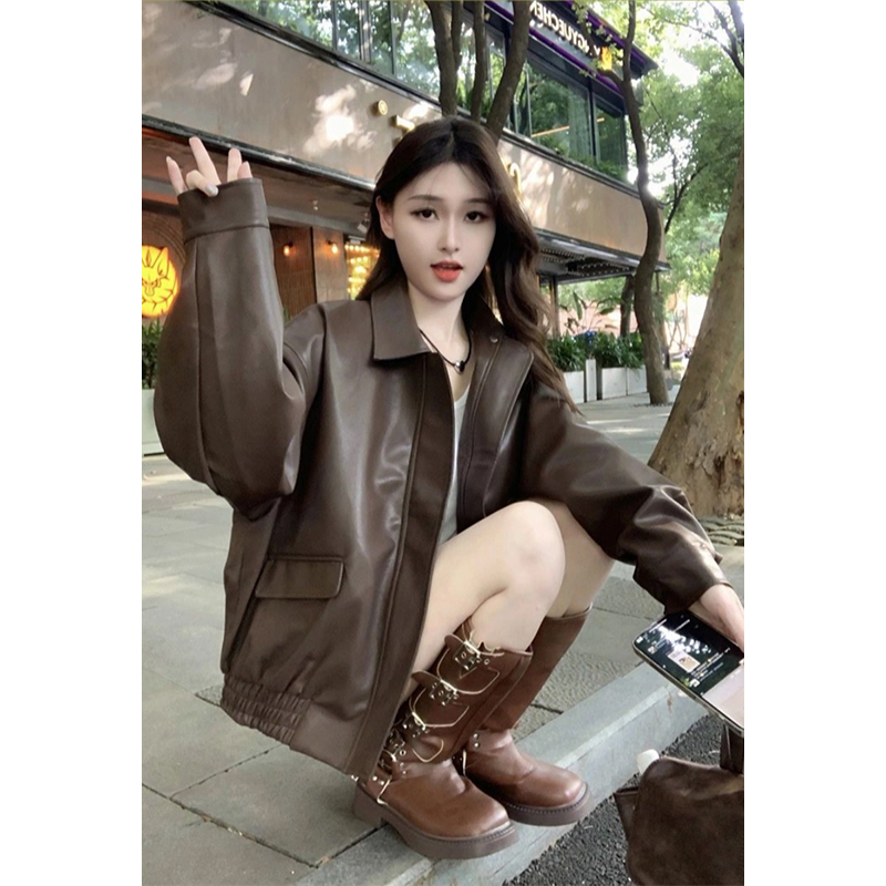 棕色pu皮衣外套女2025春秋港風爆款美拉德機車小個子加厚夾克棉服