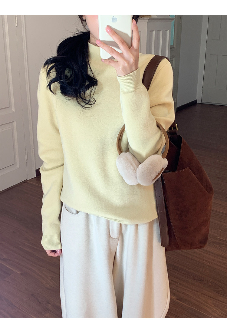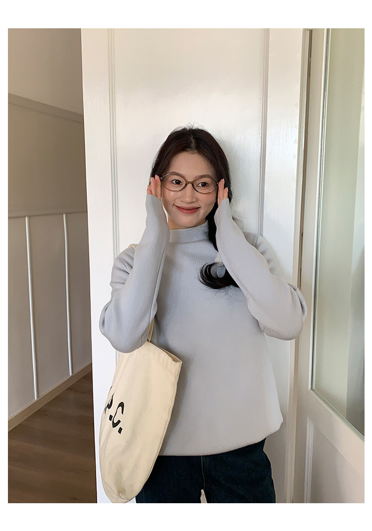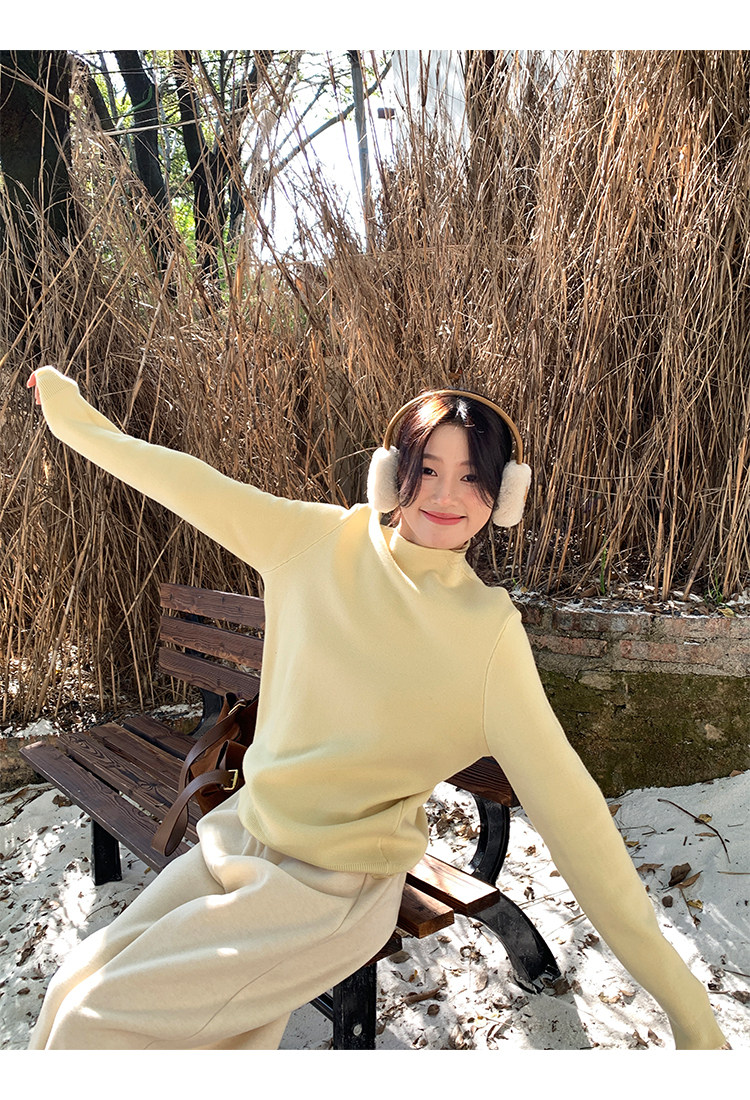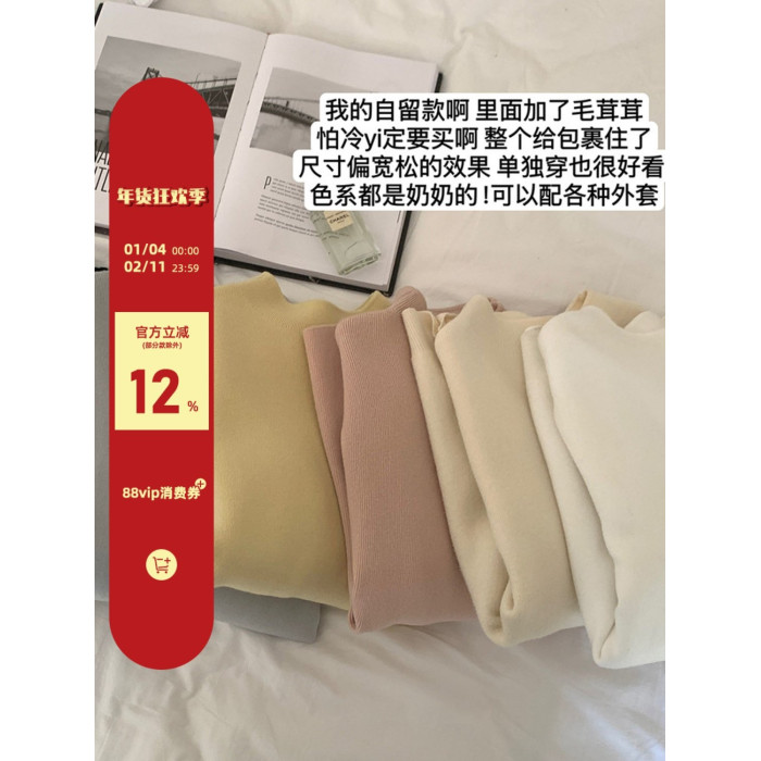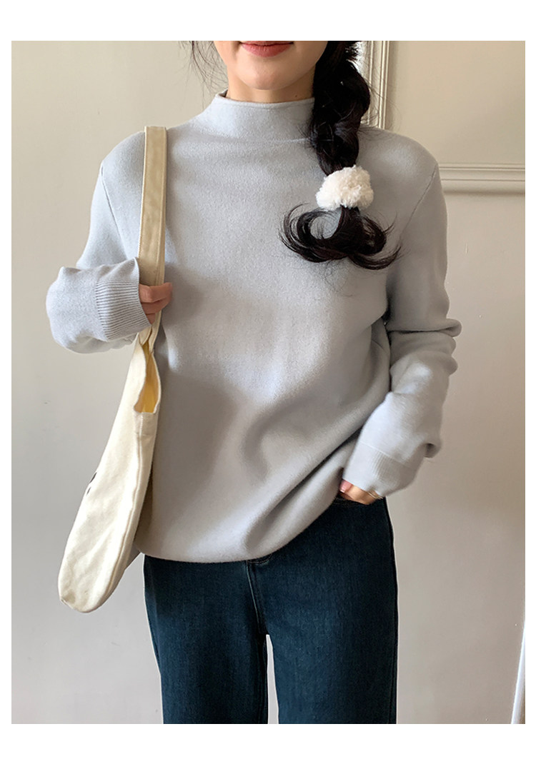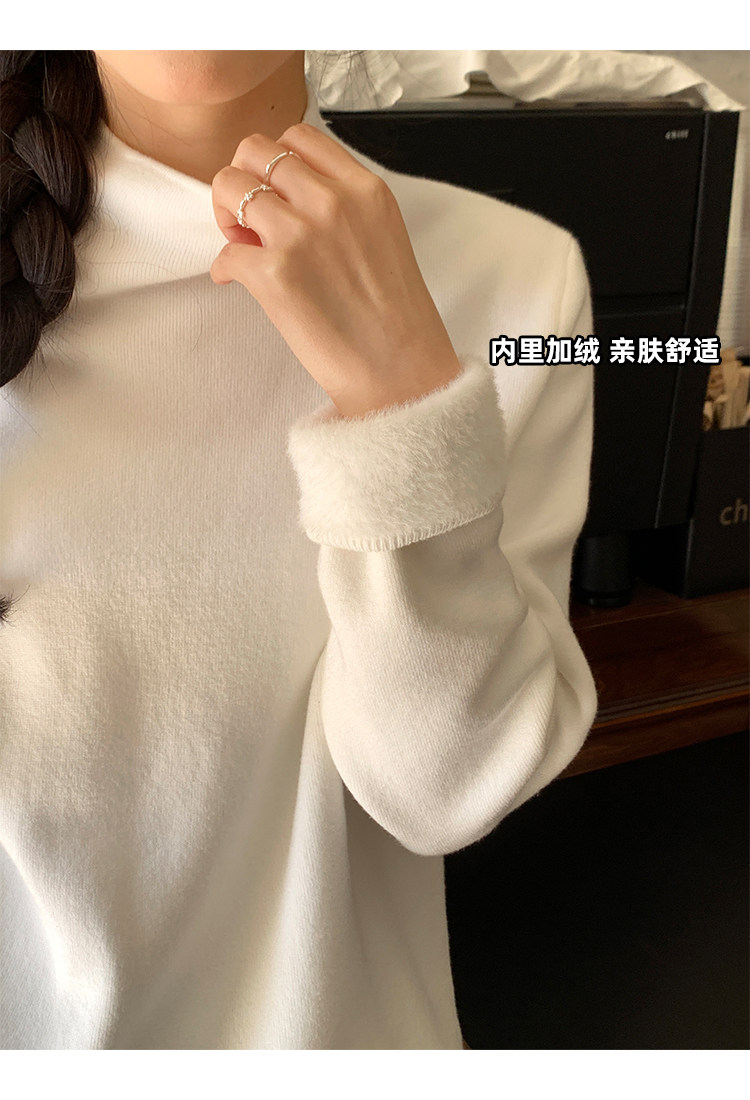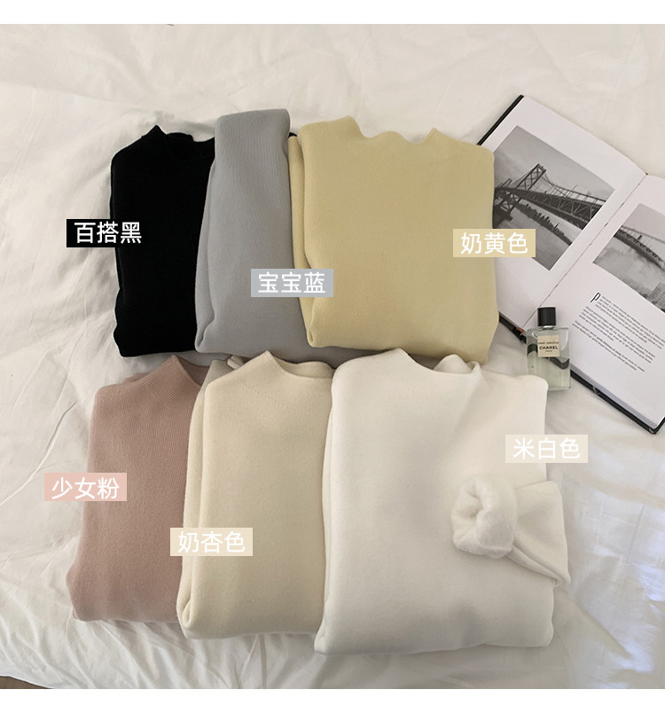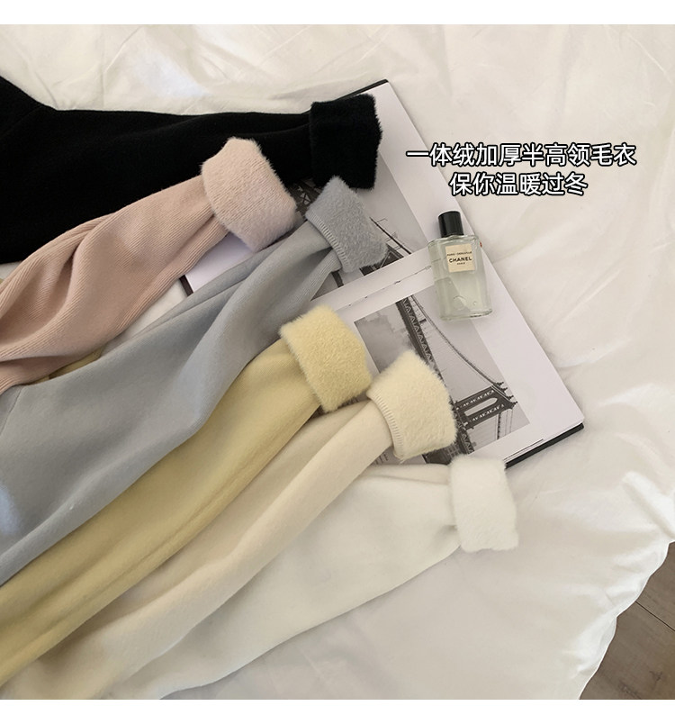 陸小團團半高領加絨針織毛衣純色冬季新款百搭厚實軟糯內搭上衣女