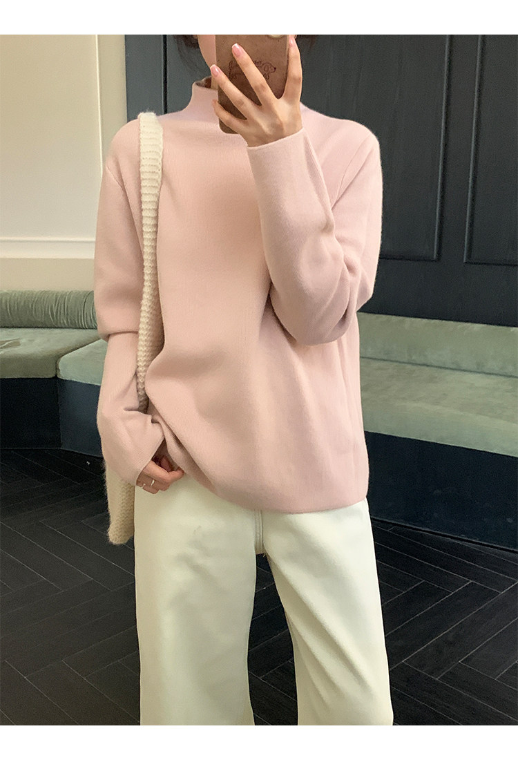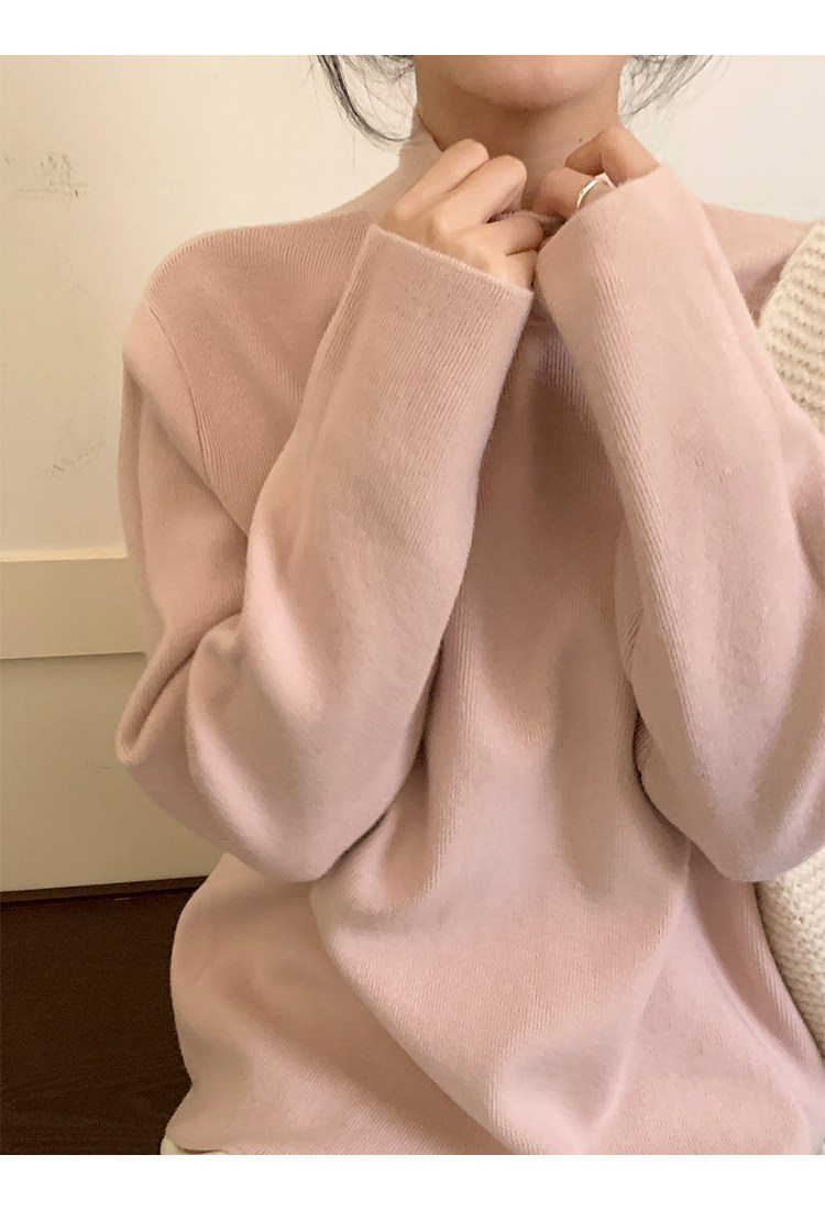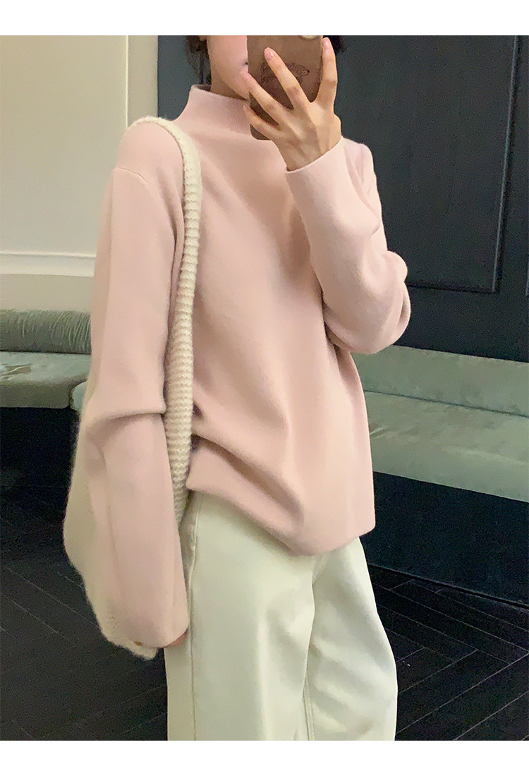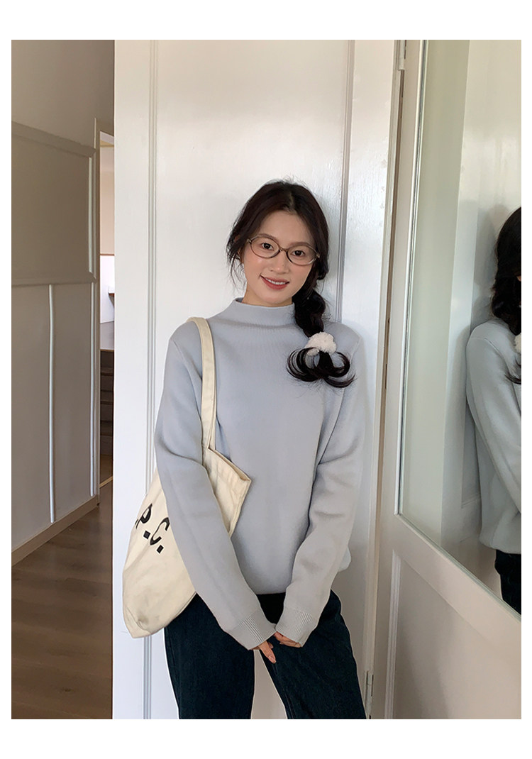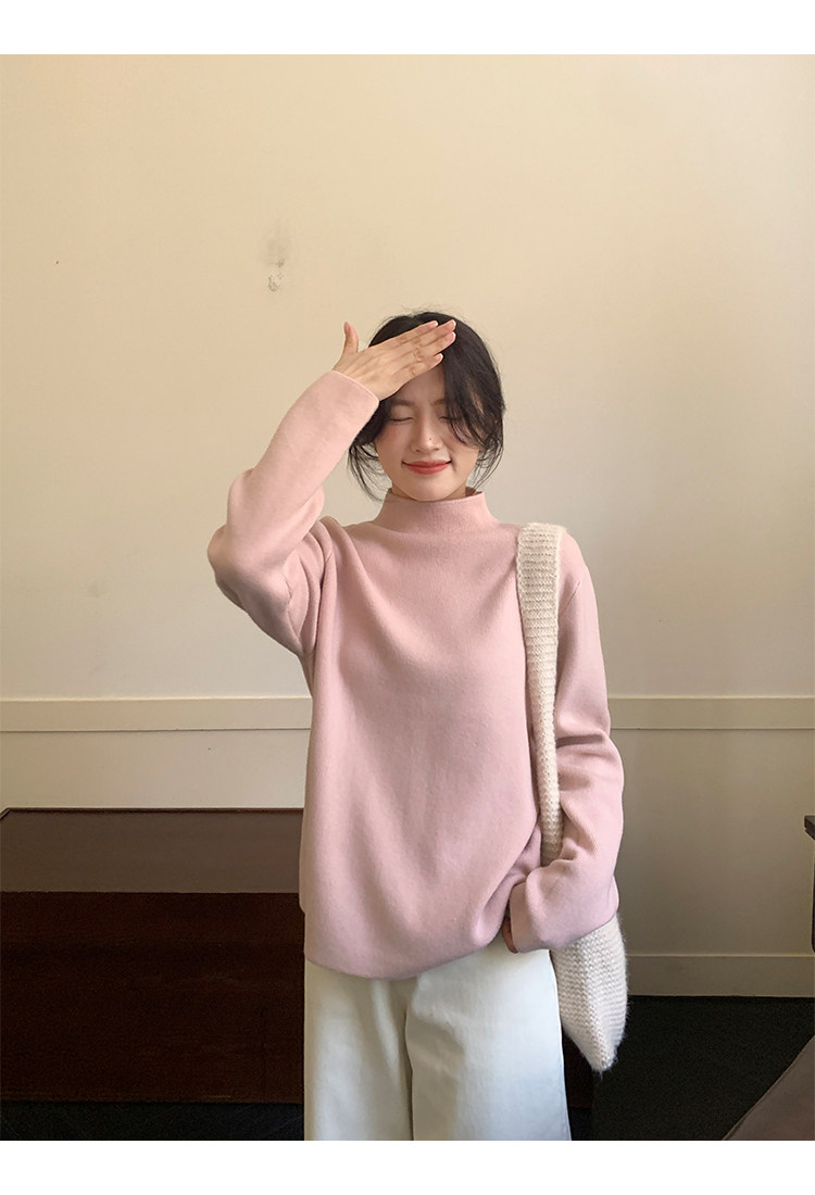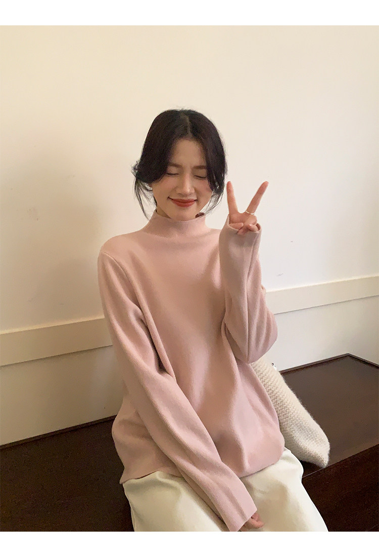 陸小團團半高領加絨針織毛衣純色冬季新款百搭厚實軟糯內搭上衣女