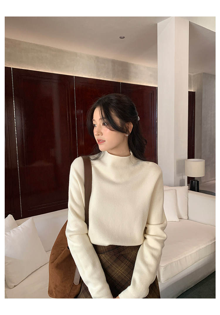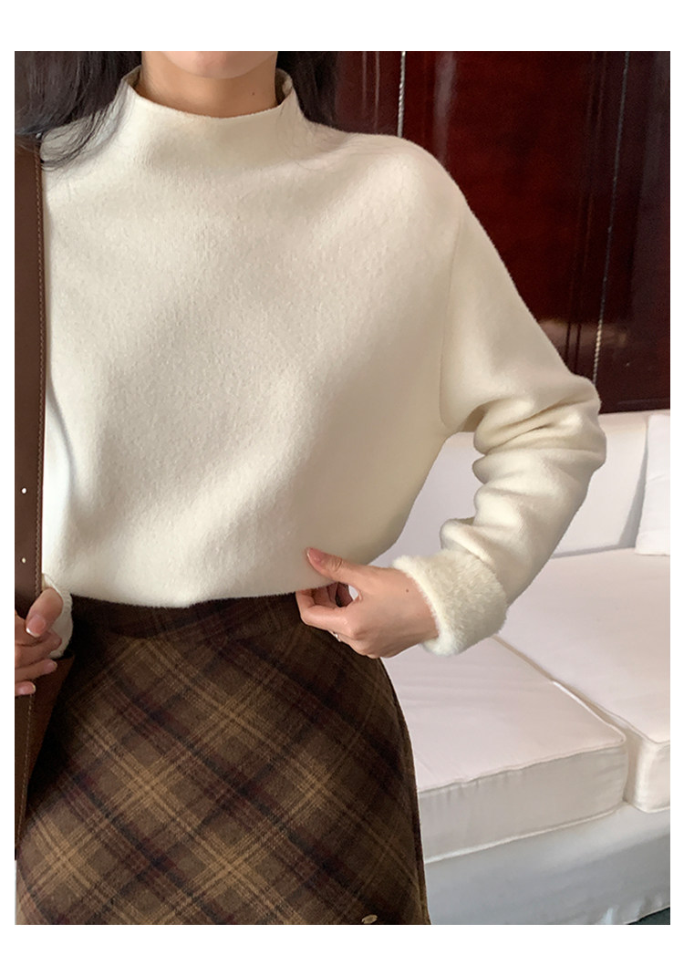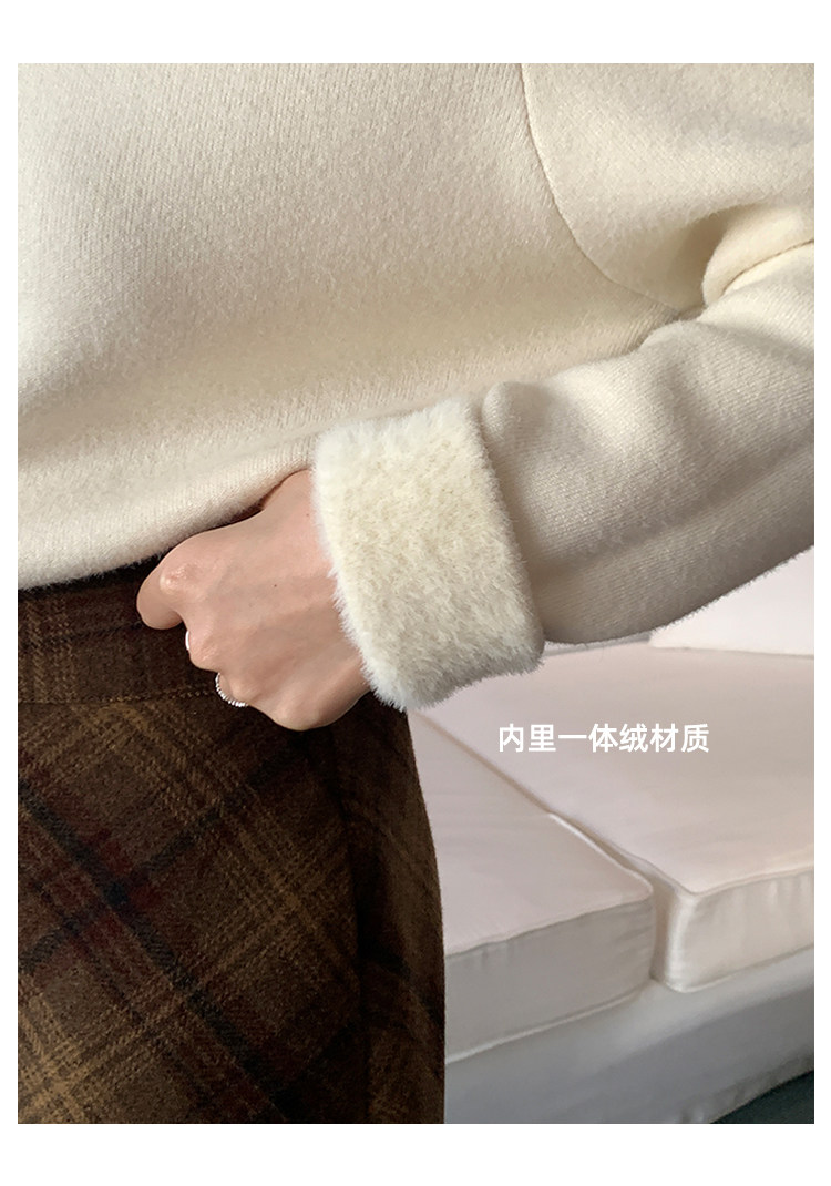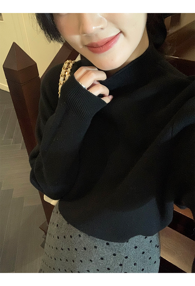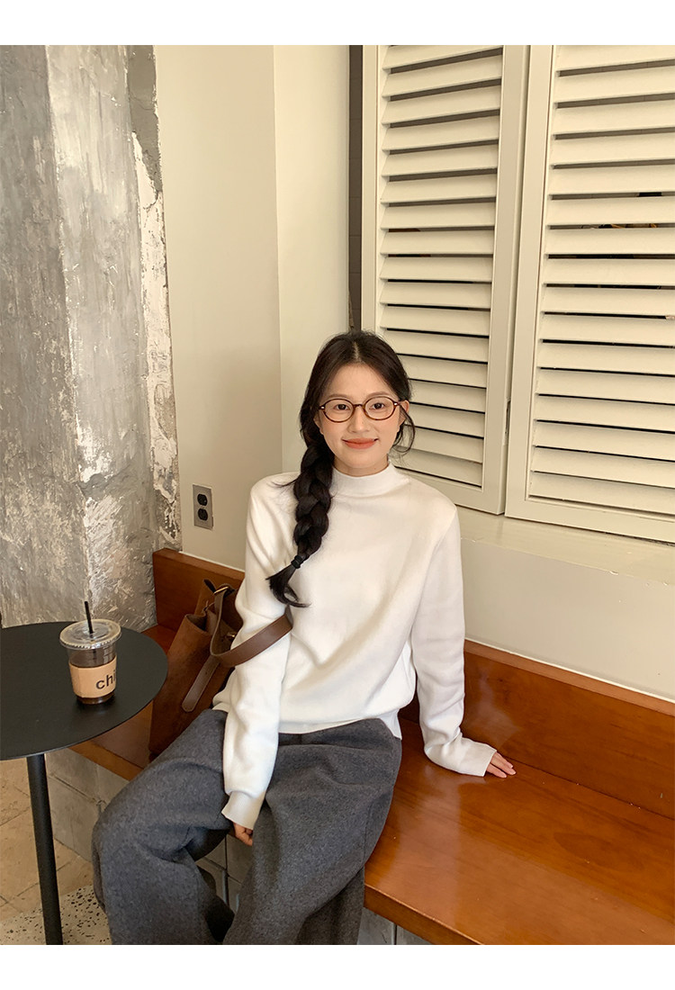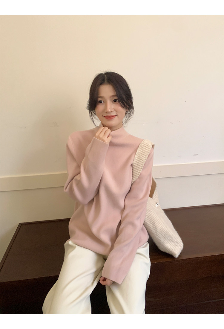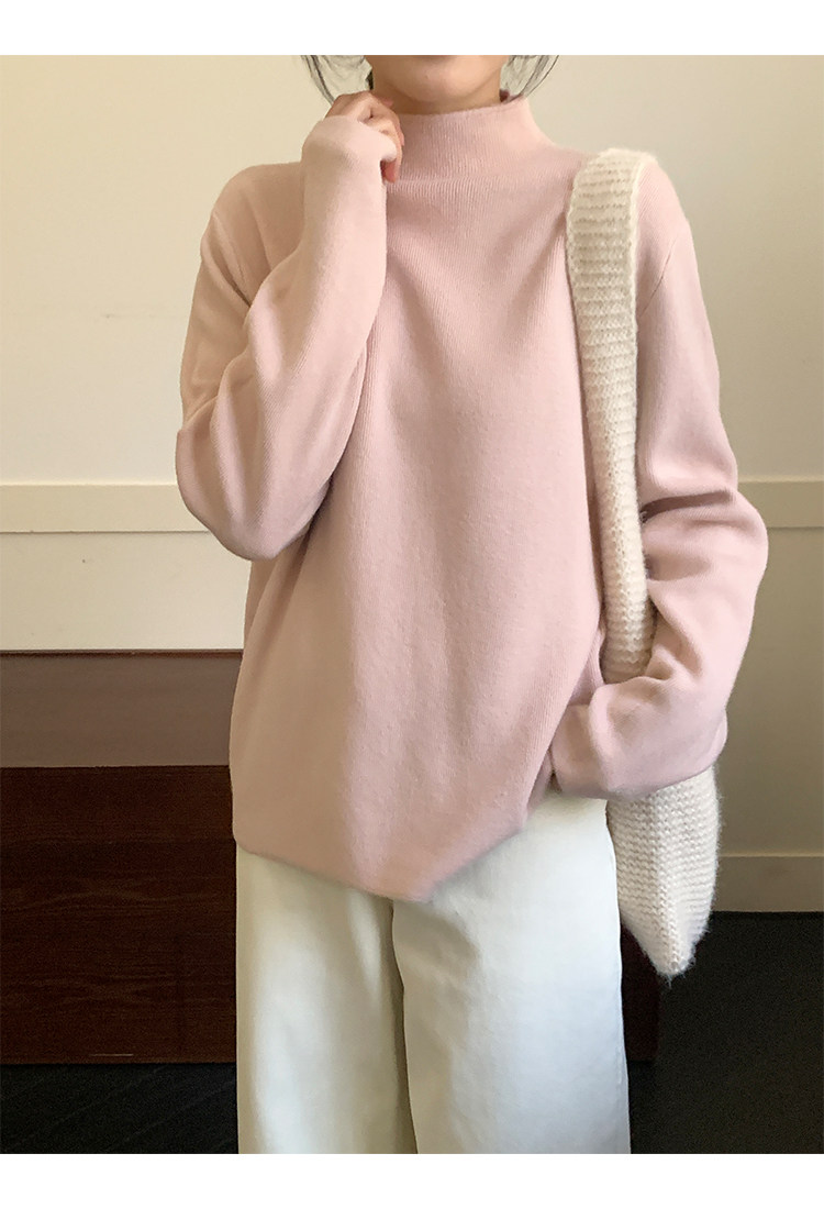 陸小團團半高領加絨針織毛衣純色冬季新款百搭厚實軟糯內搭上衣女