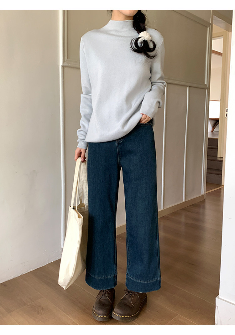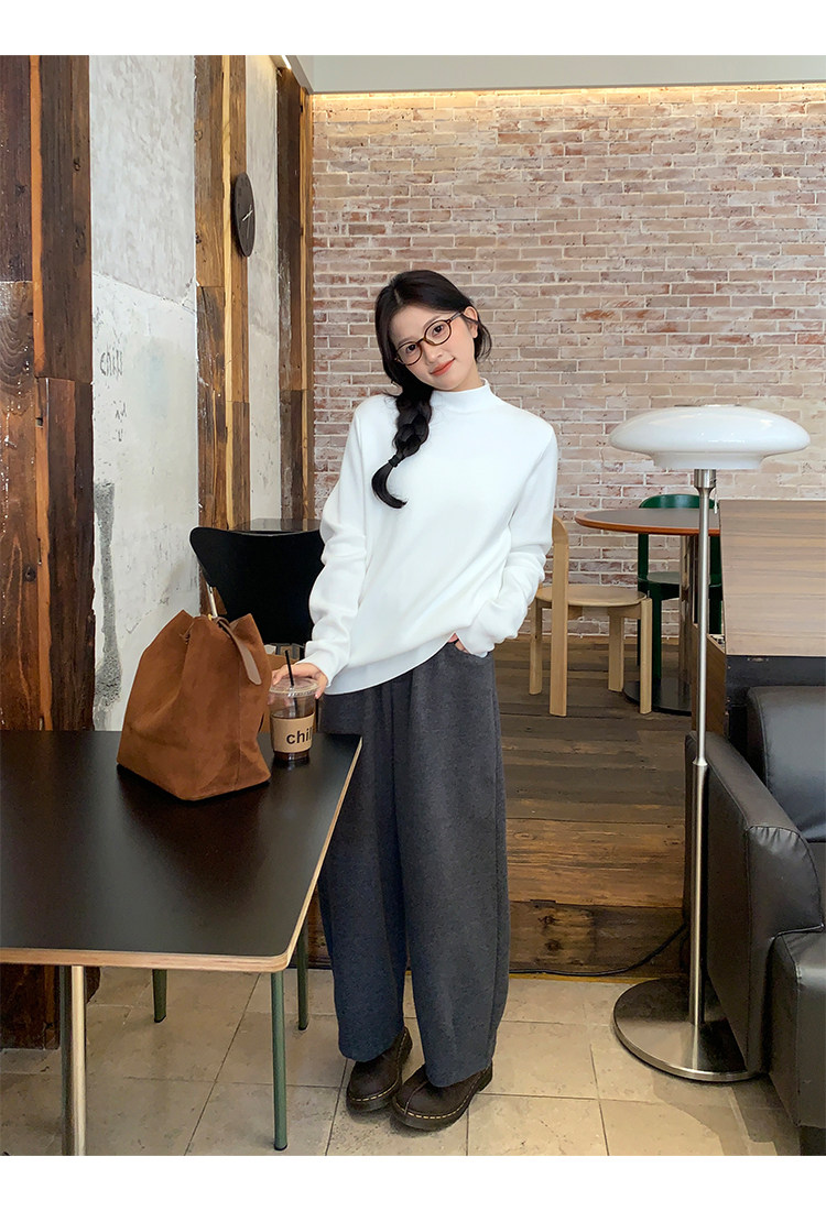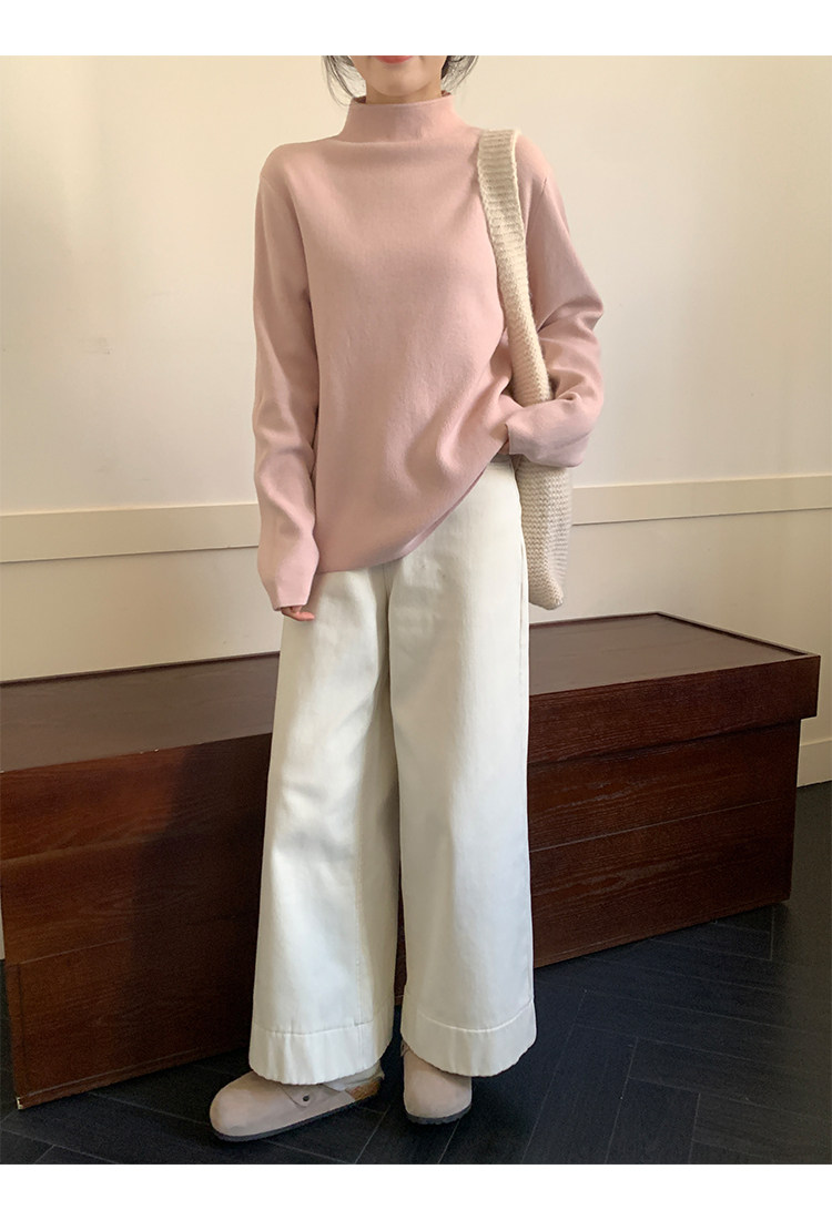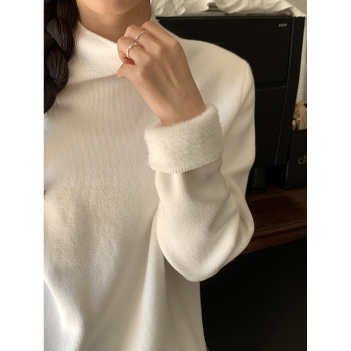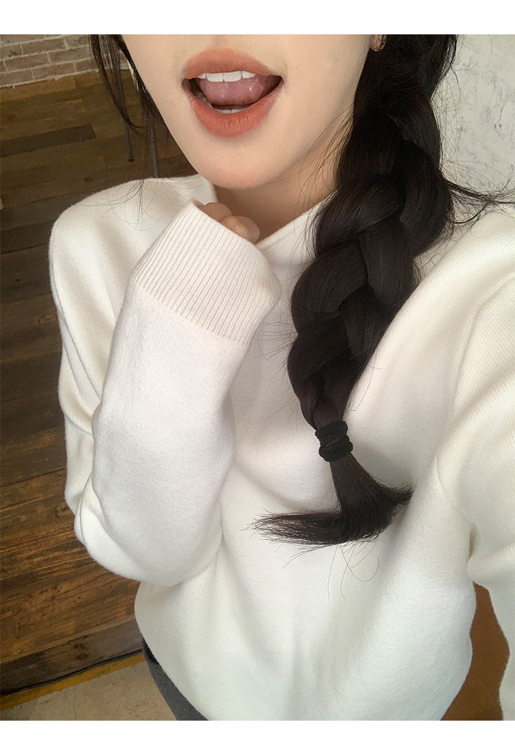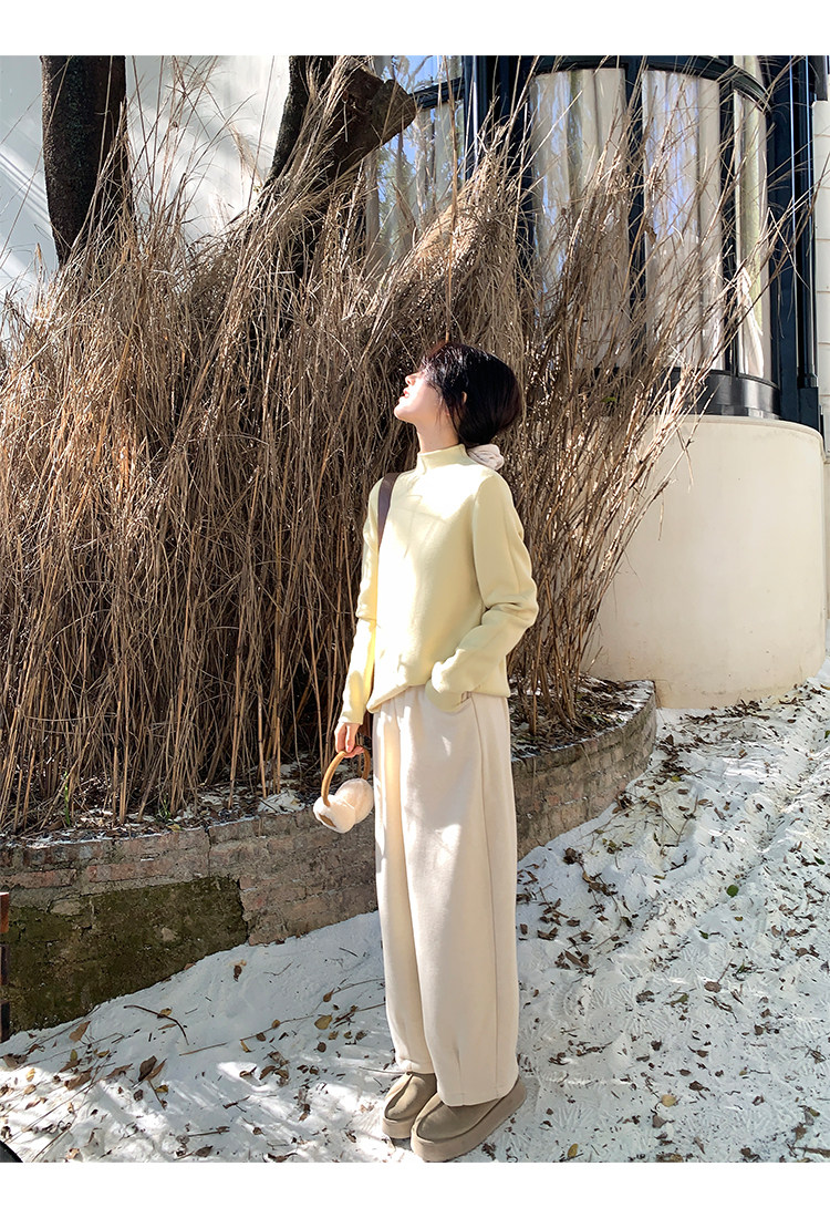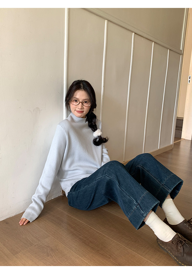 陸小團團半高領加絨針織毛衣純色冬季新款百搭厚實軟糯內搭上衣女