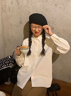 寬鬆長袖袖型可以修飾霤肩問題 視覺凸顯身材纖細感