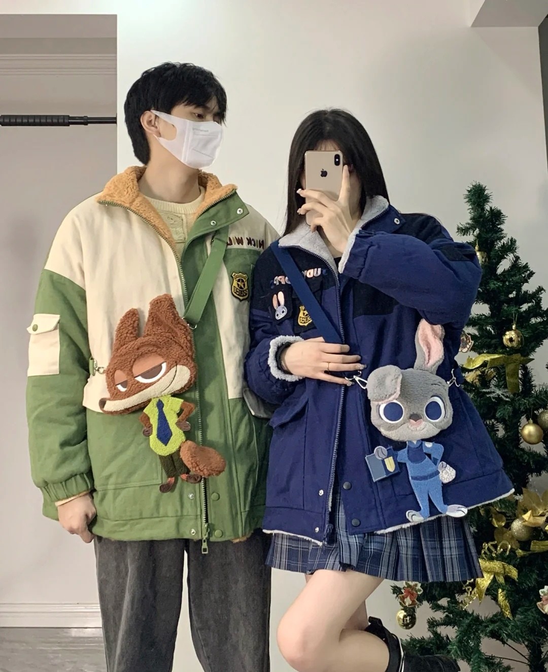 森女日系加絨加厚瘋狂動物城閨蜜裝棉服萌趣設計感外套 硃迪尼克