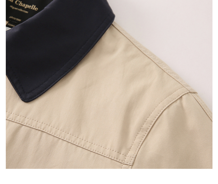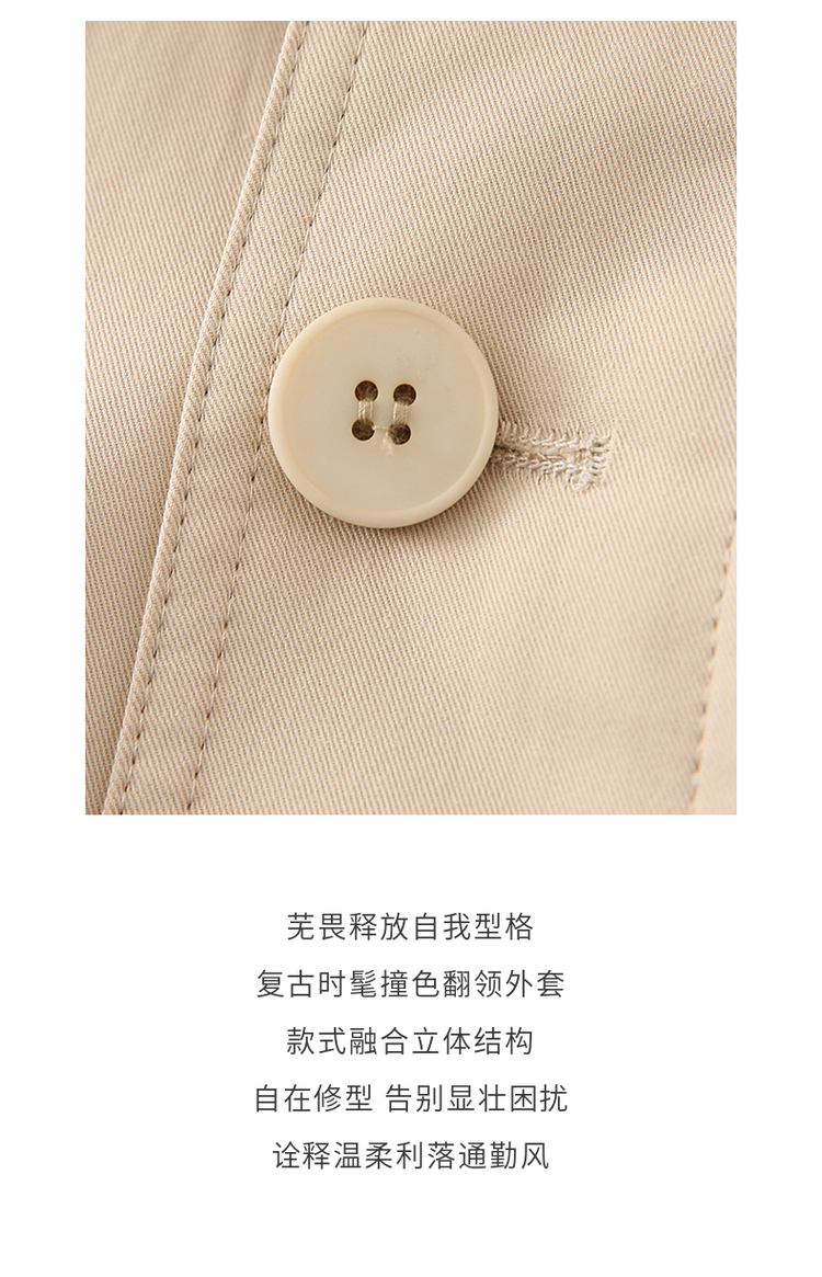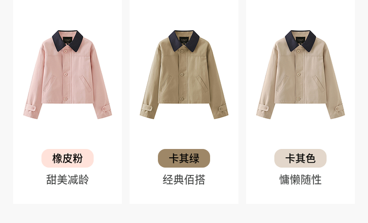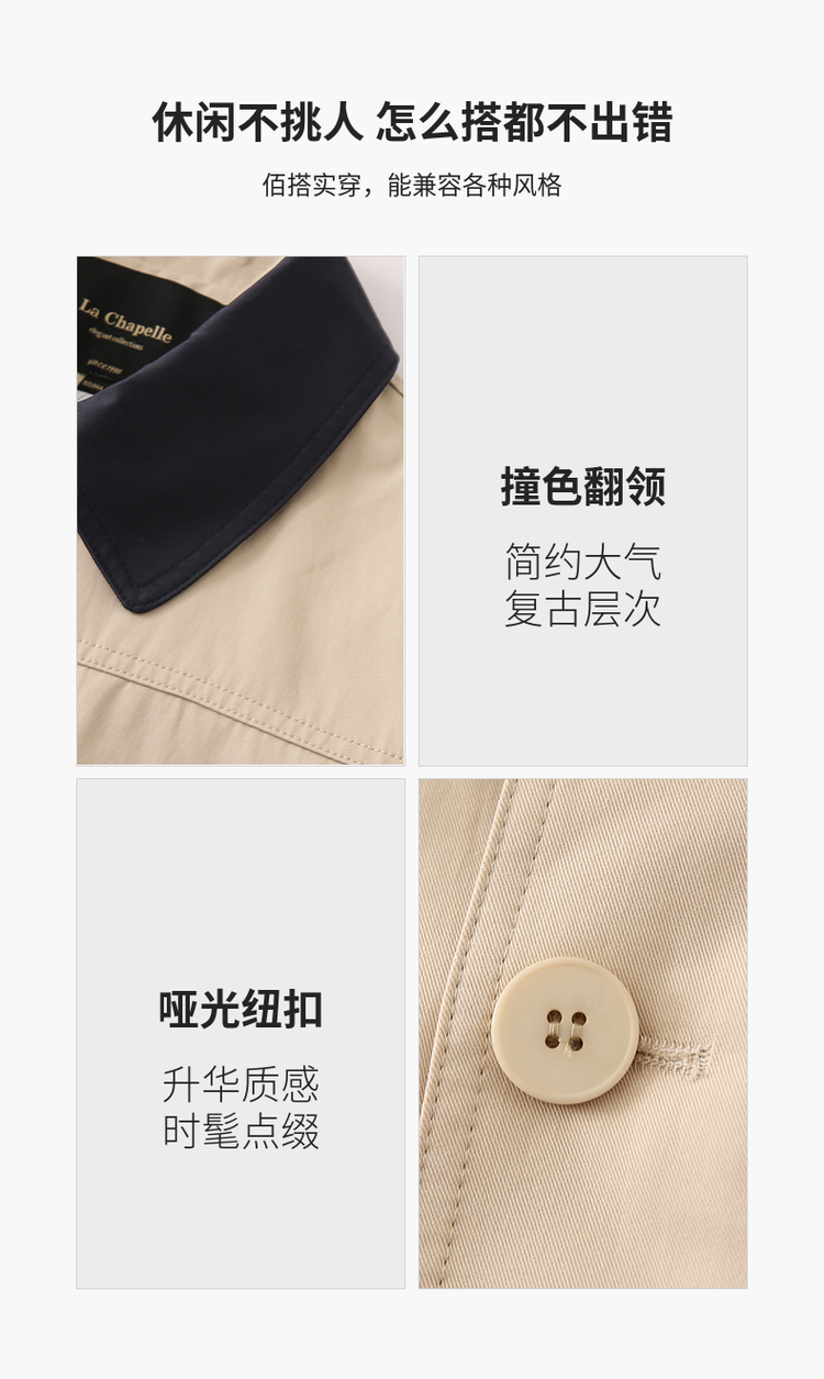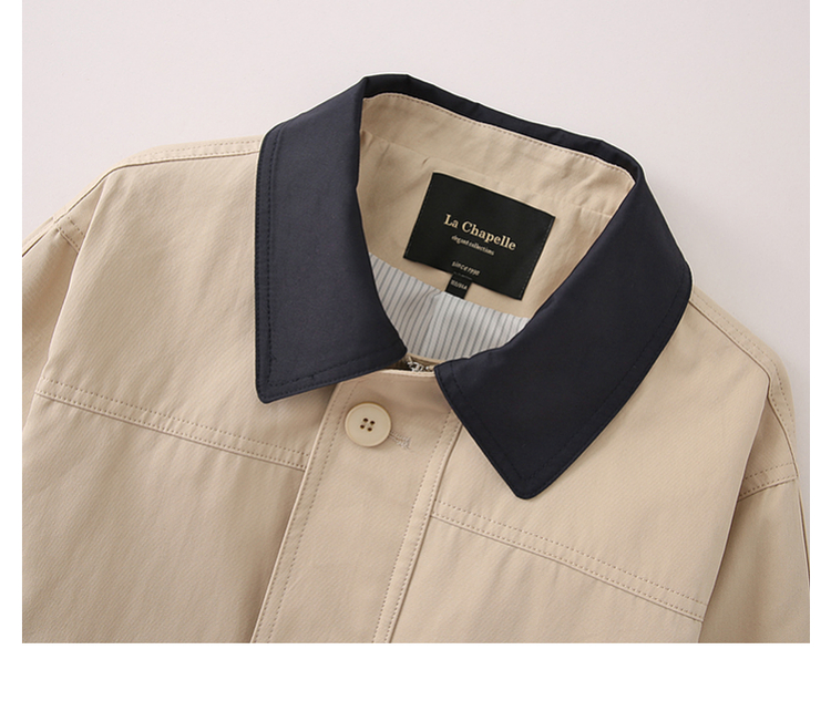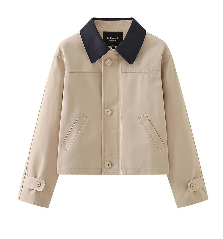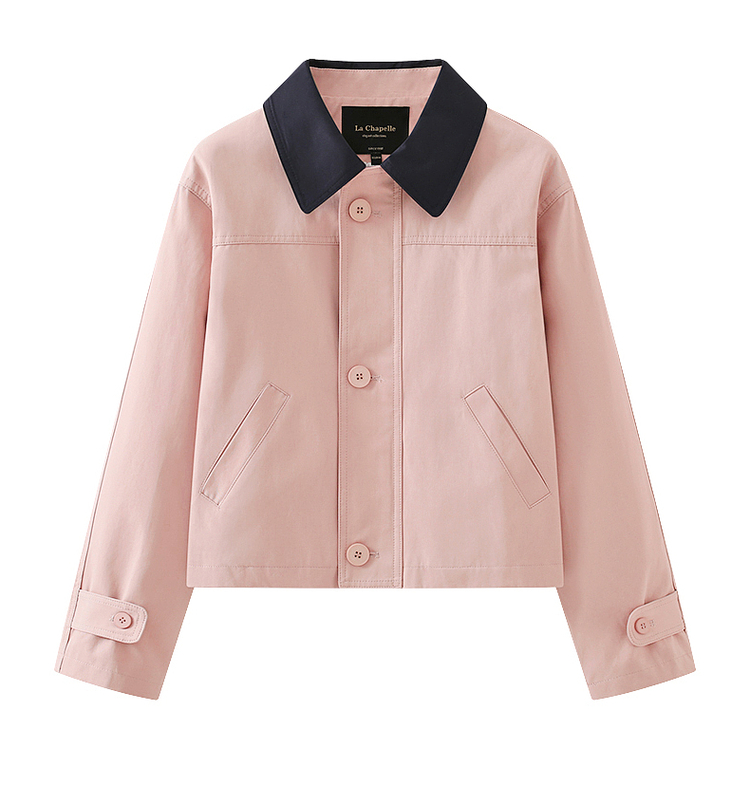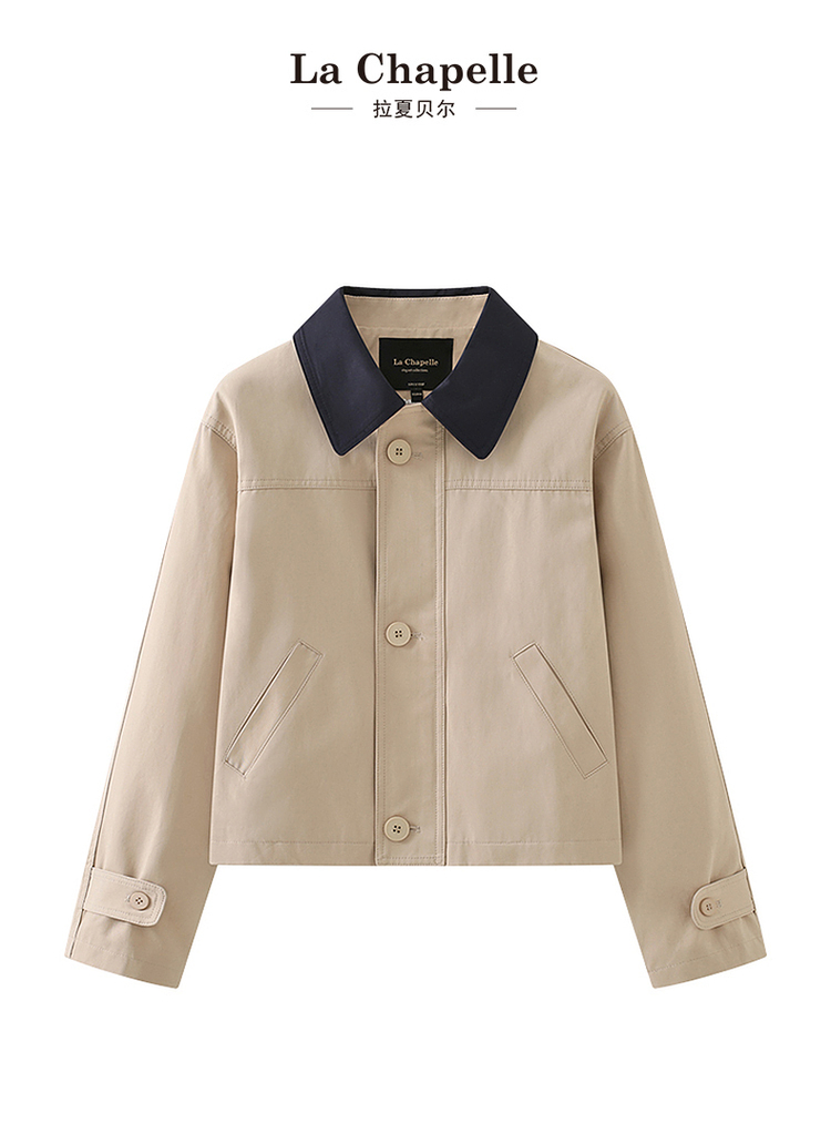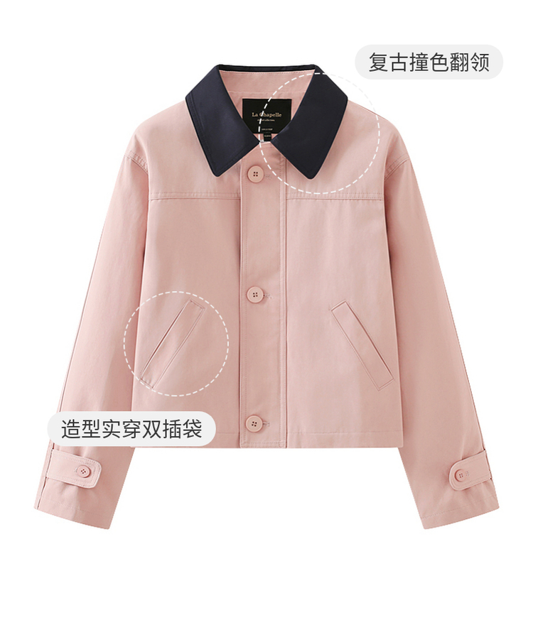 拉夏貝爾/La Chapelle巴恩風拼色翻領寬松外套女休閒短款夾克上衣