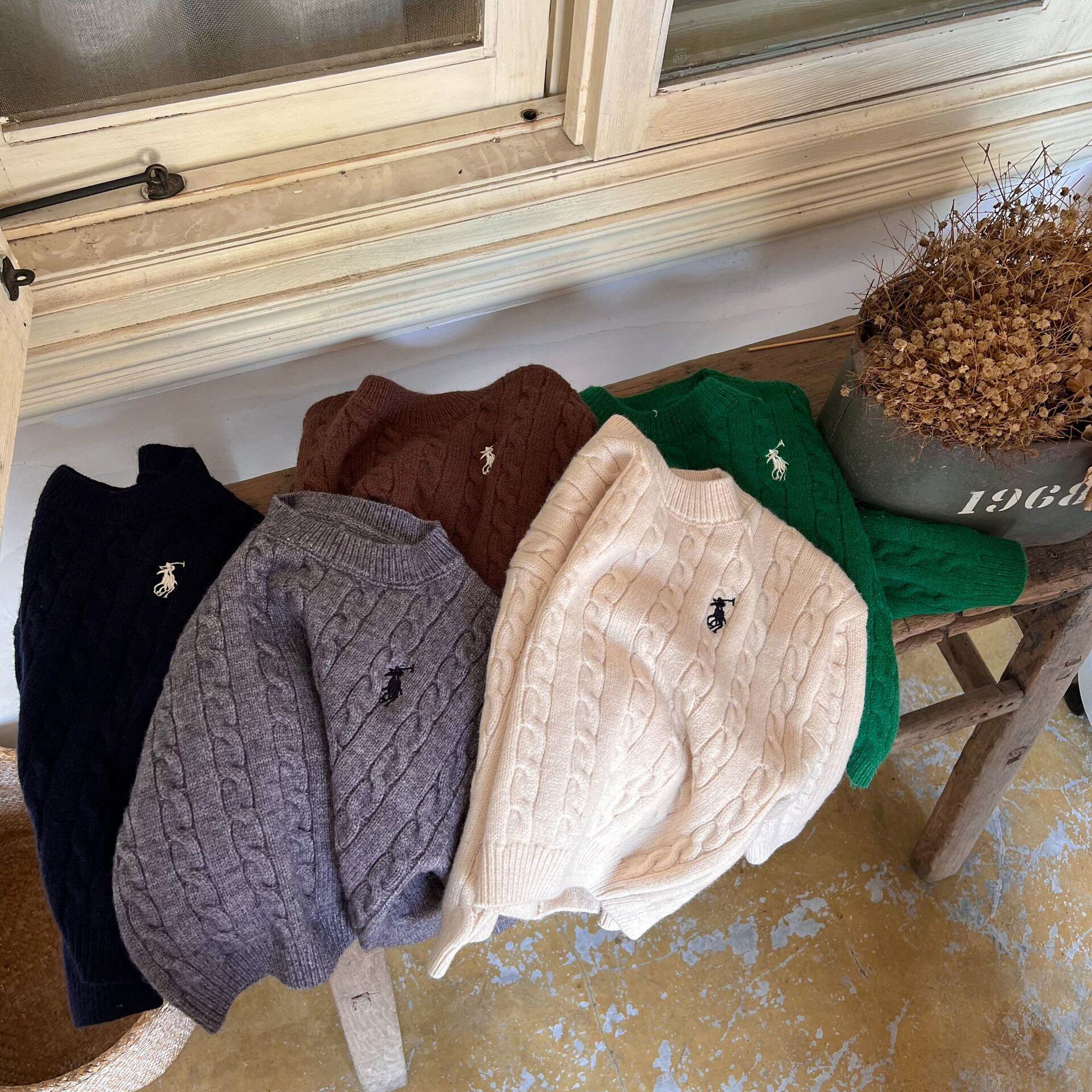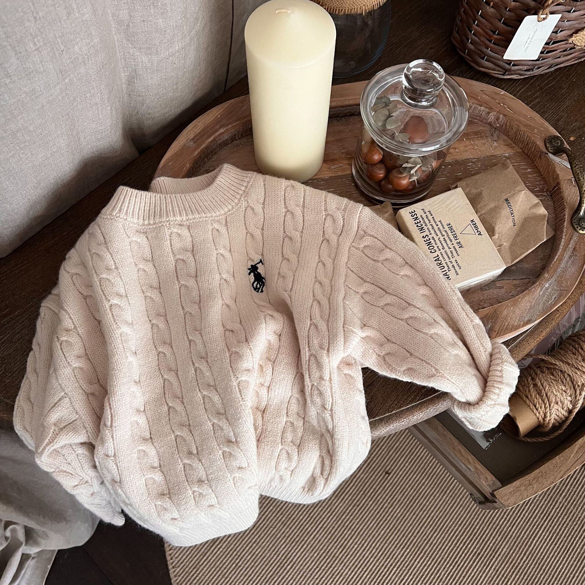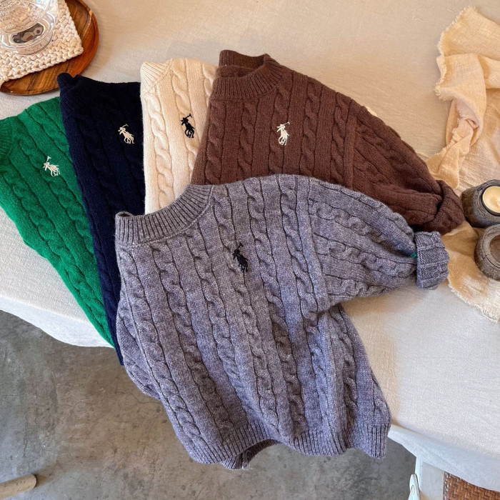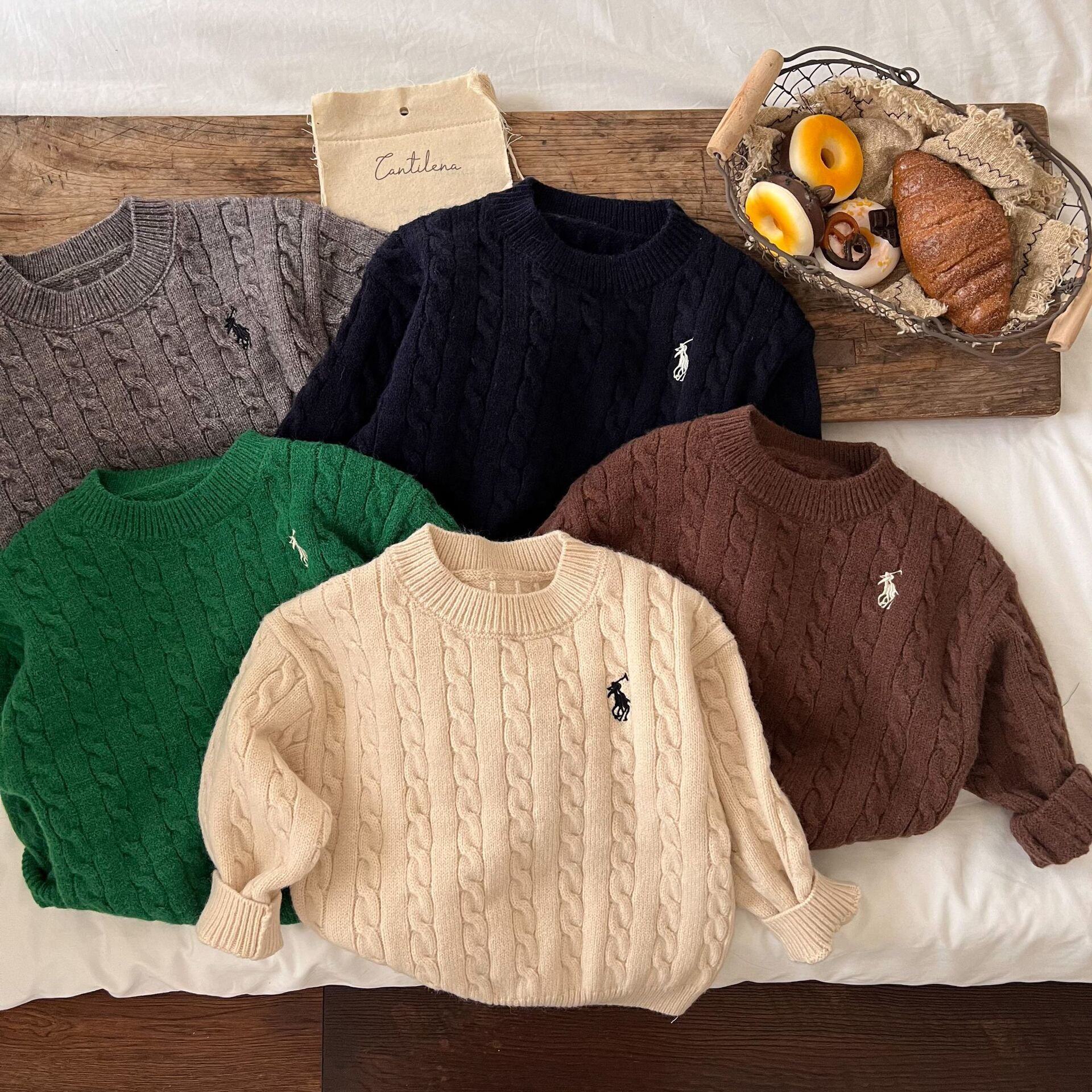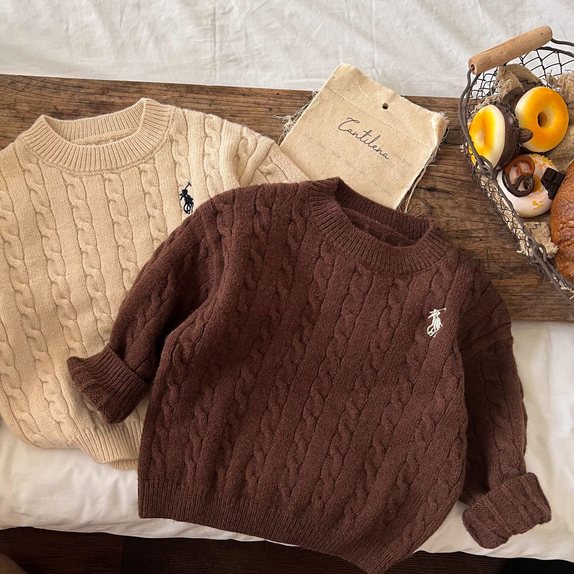 中小兒2024童毛衣布呐呐秋季新品男女寶寶純色刺綉寶寶絞花毛線衫