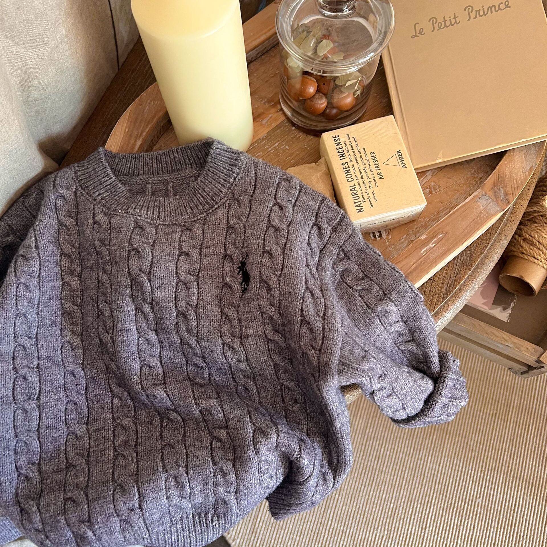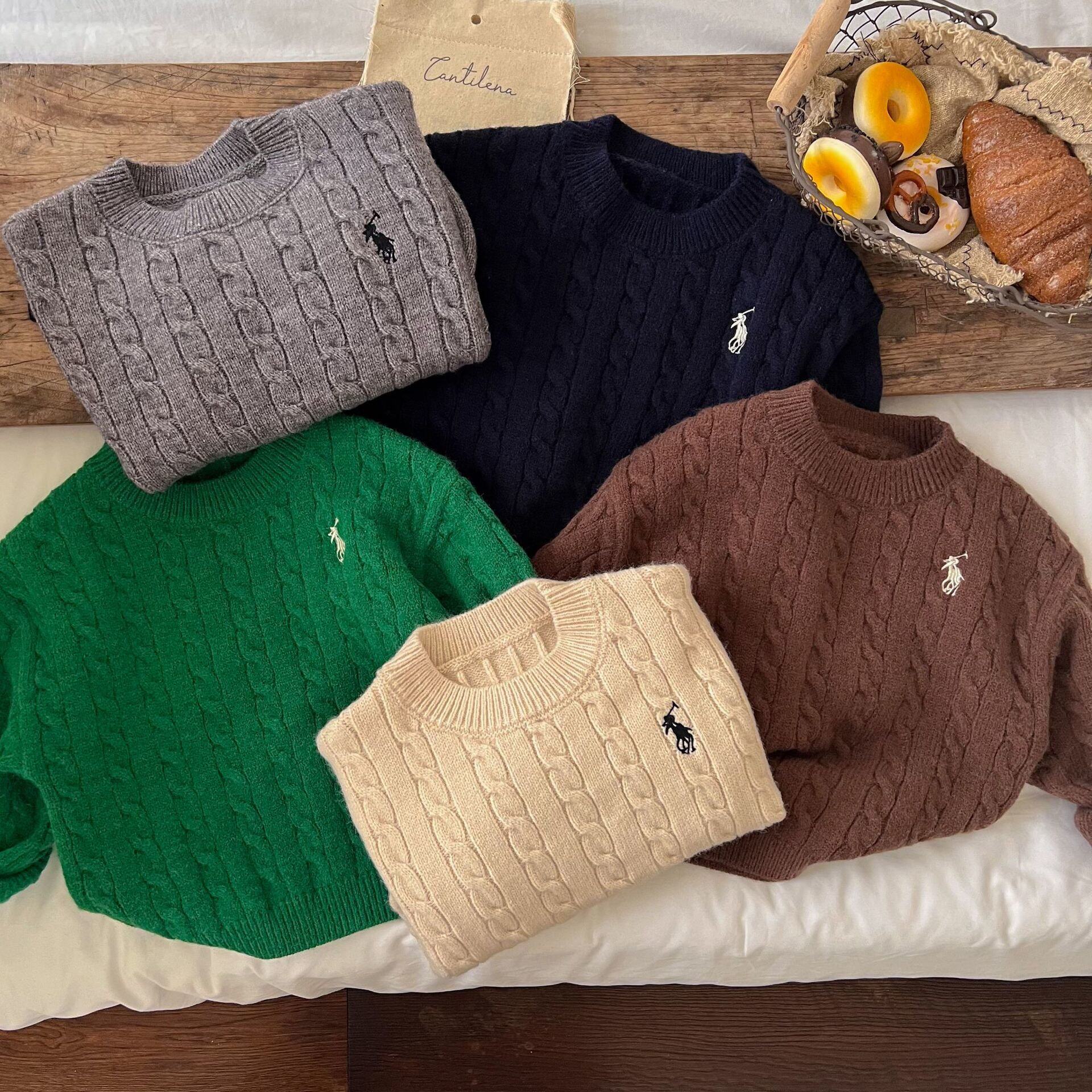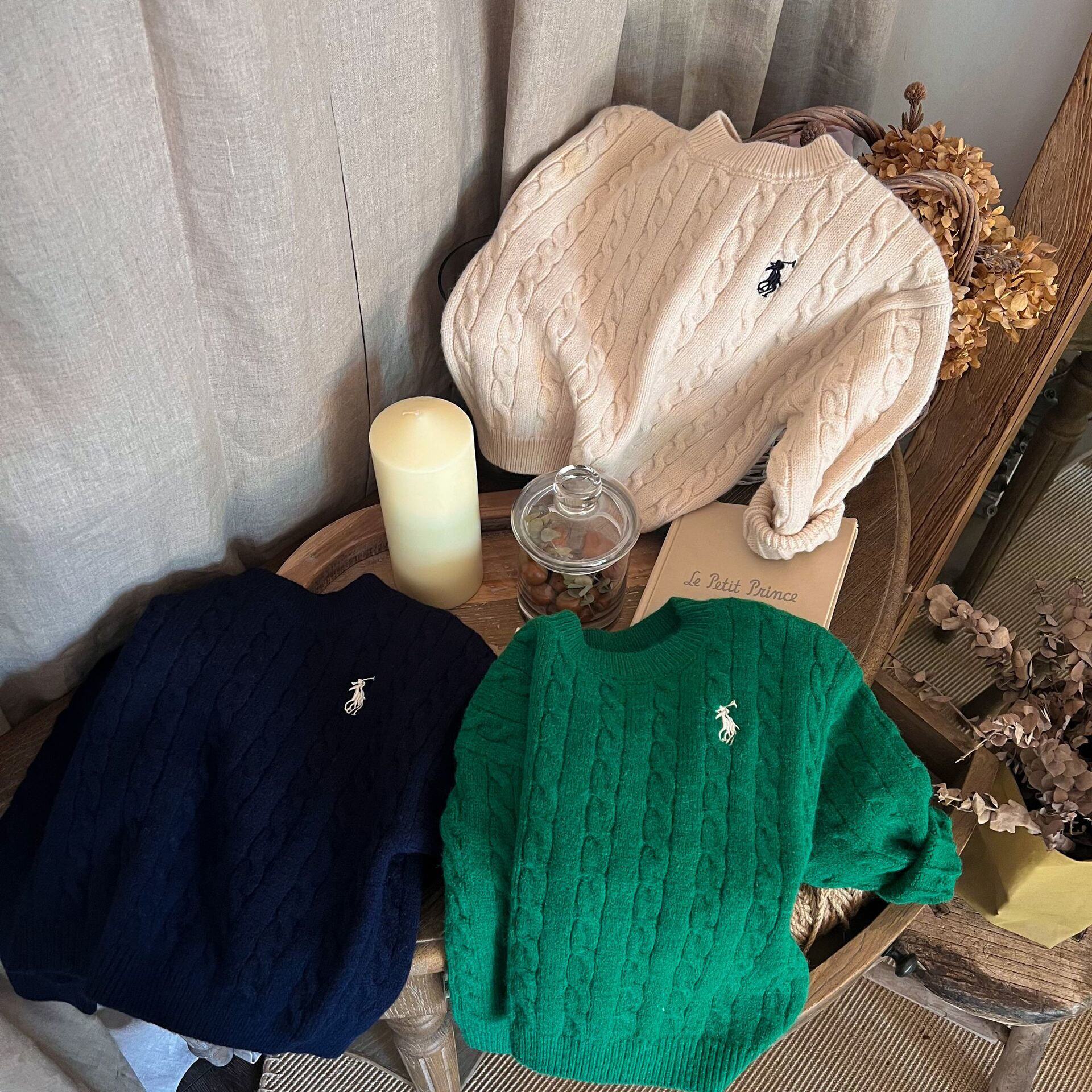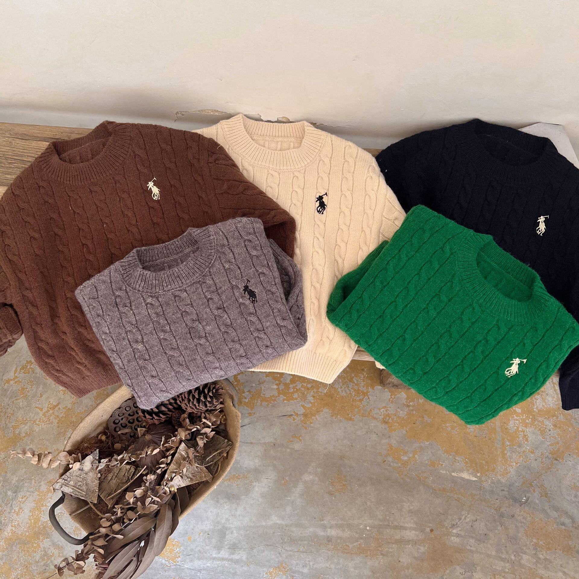 中小兒2024童毛衣布呐呐秋季新品男女寶寶純色刺綉寶寶絞花毛線衫