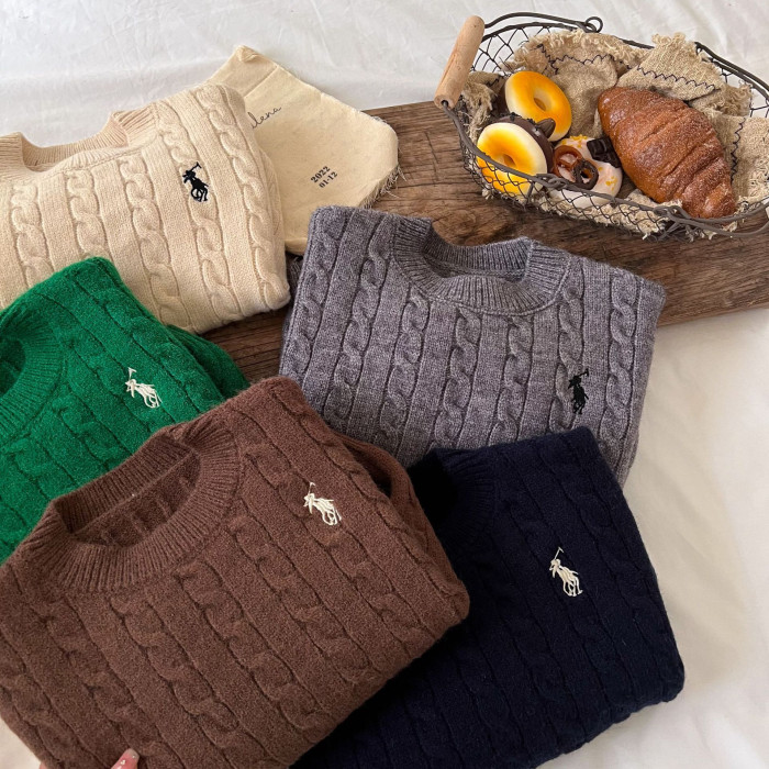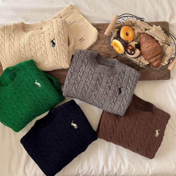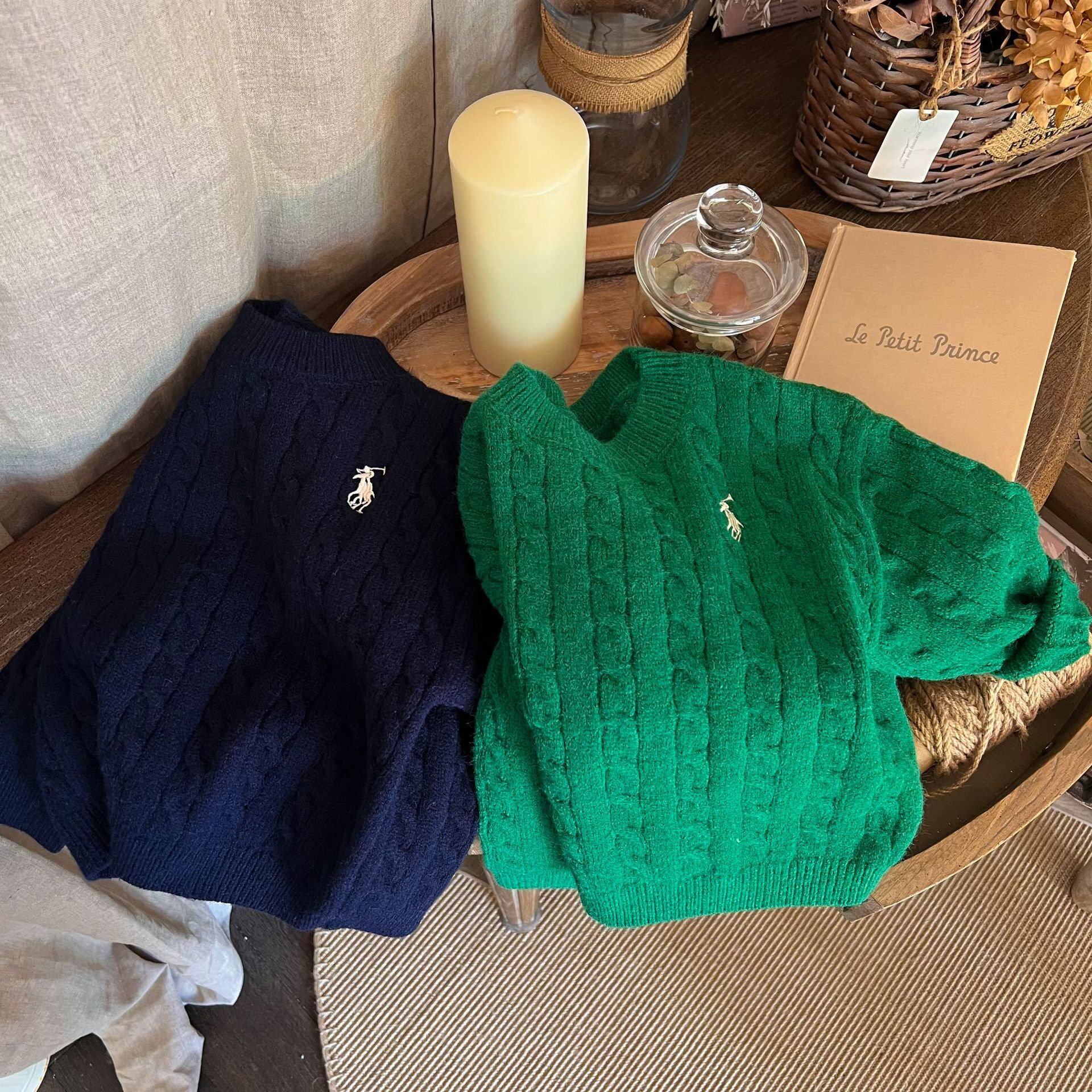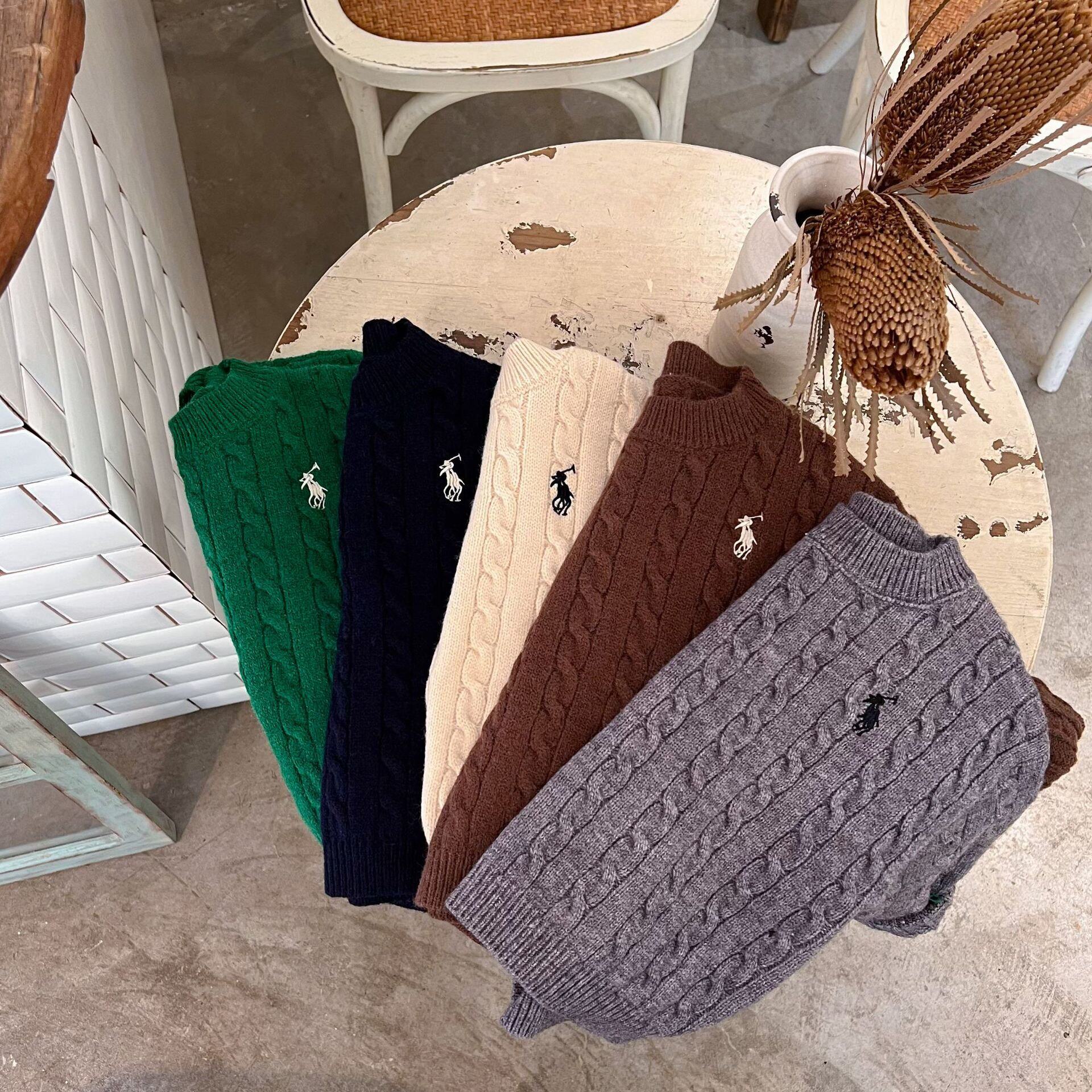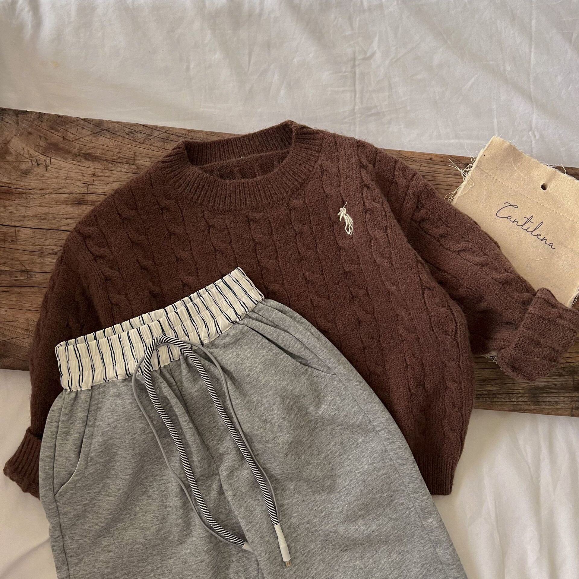 中小兒2024童毛衣布呐呐秋季新品男女寶寶純色刺綉寶寶絞花毛線衫
