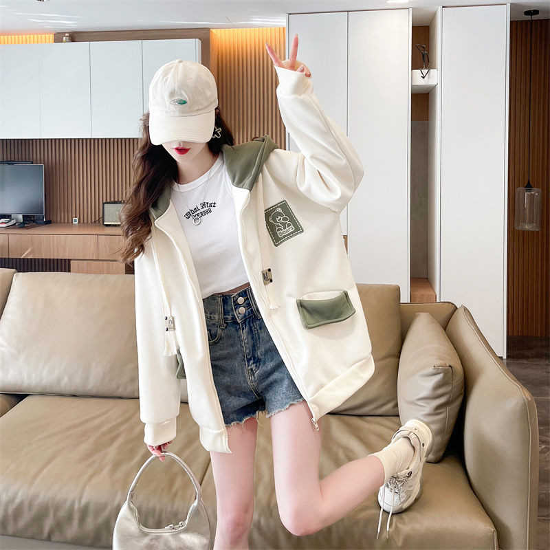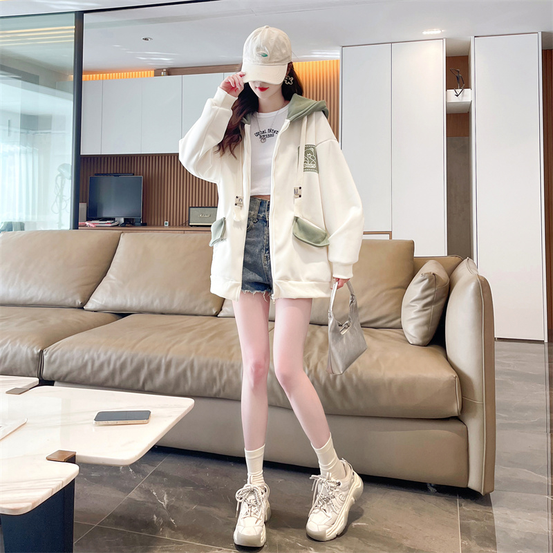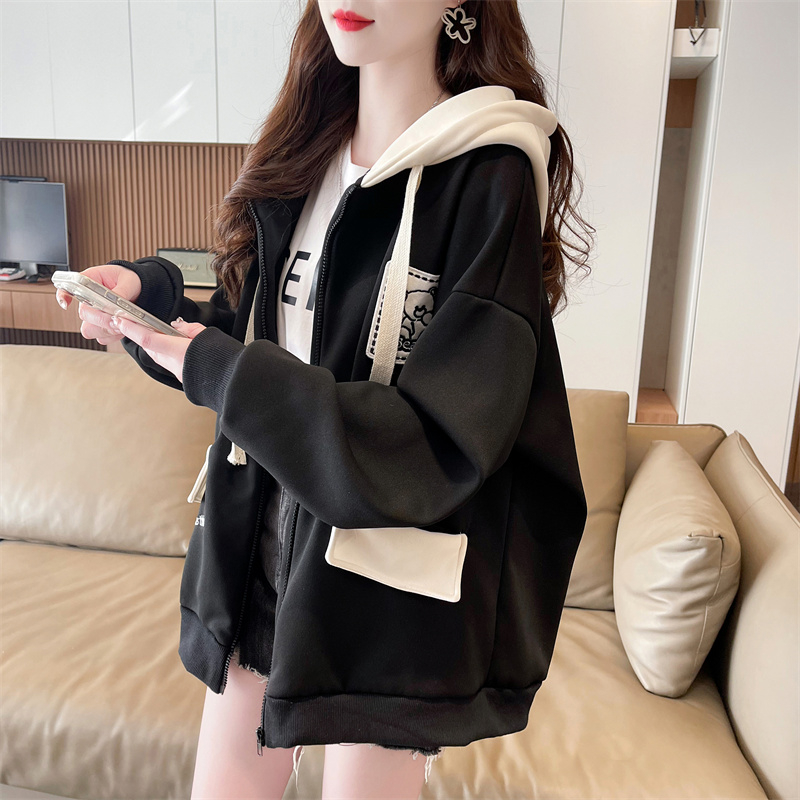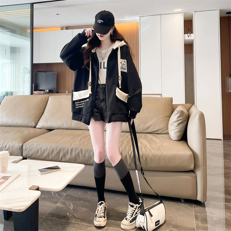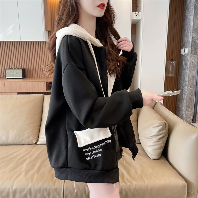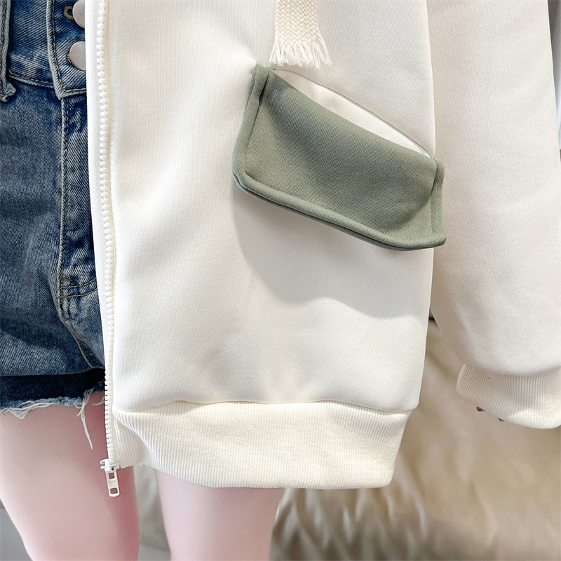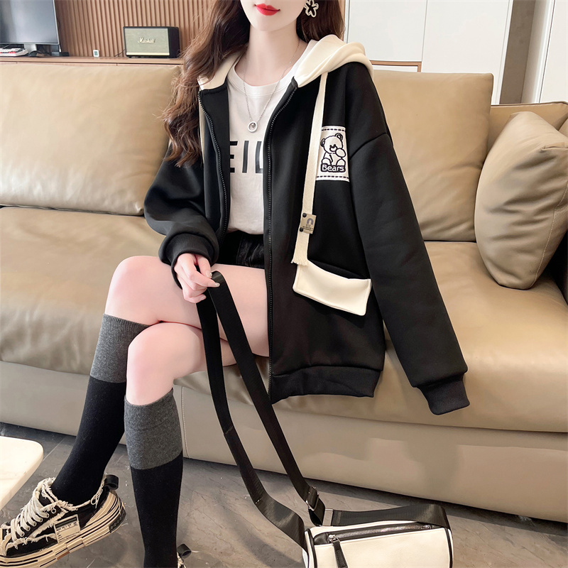 秋冬加絨加厚美式棒球服開衫外套女設計感小衆oversize連帽上衣服
