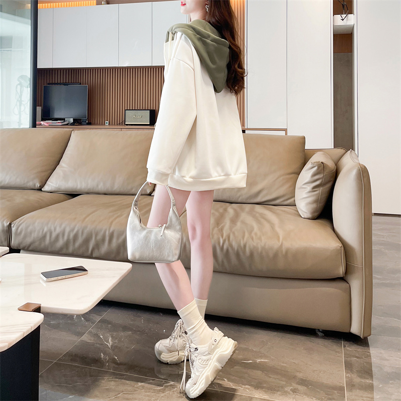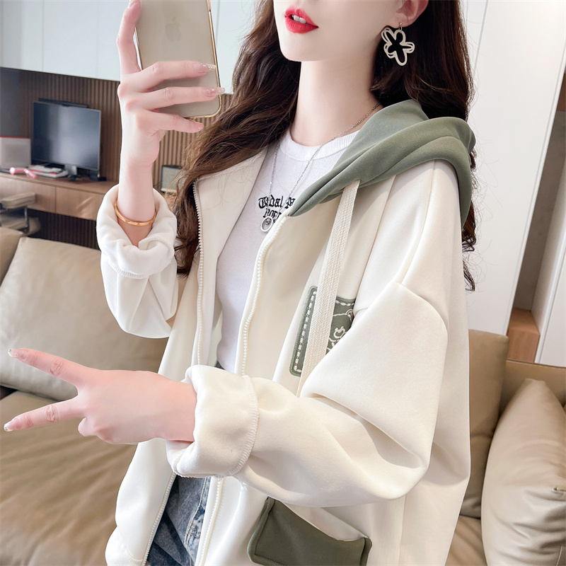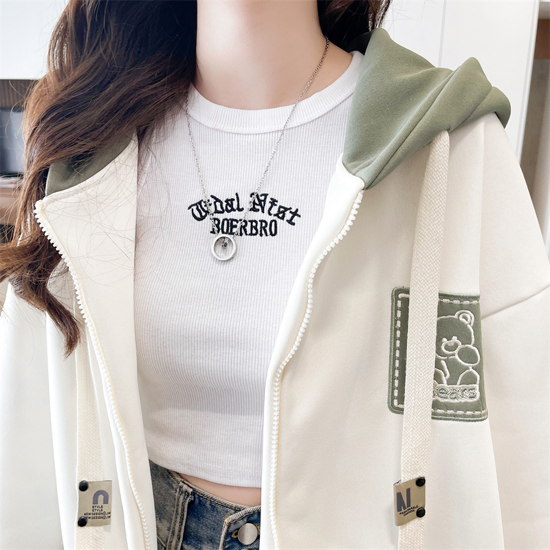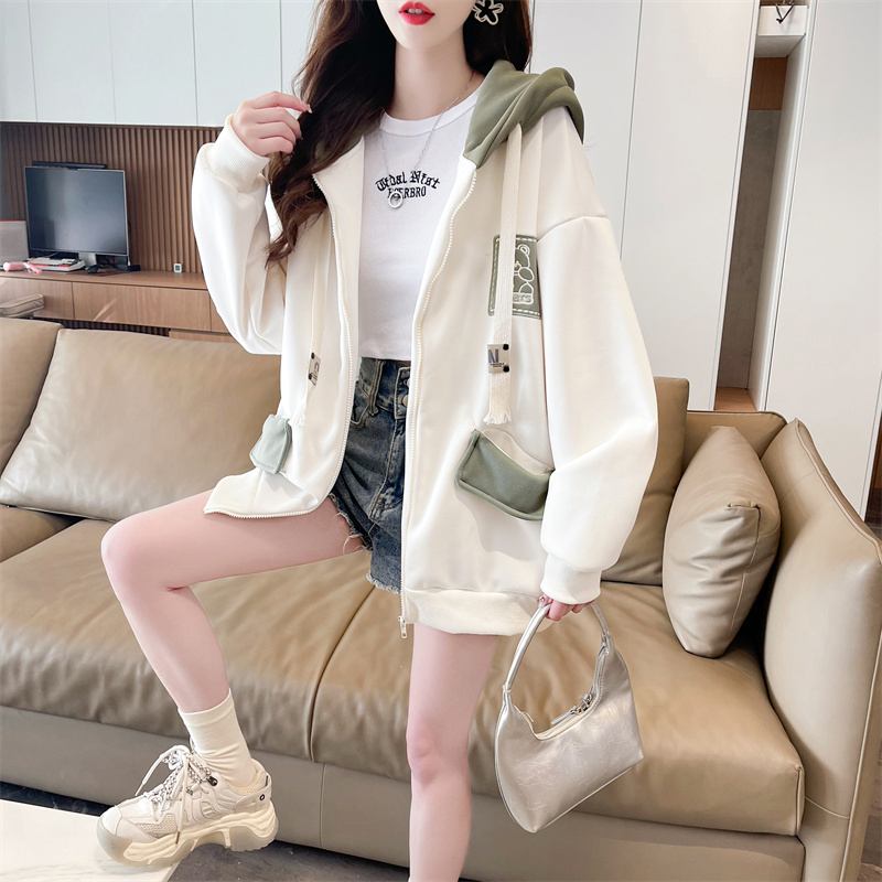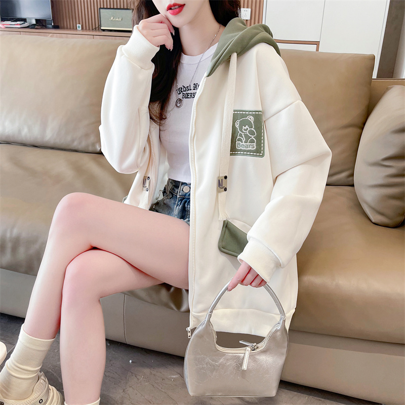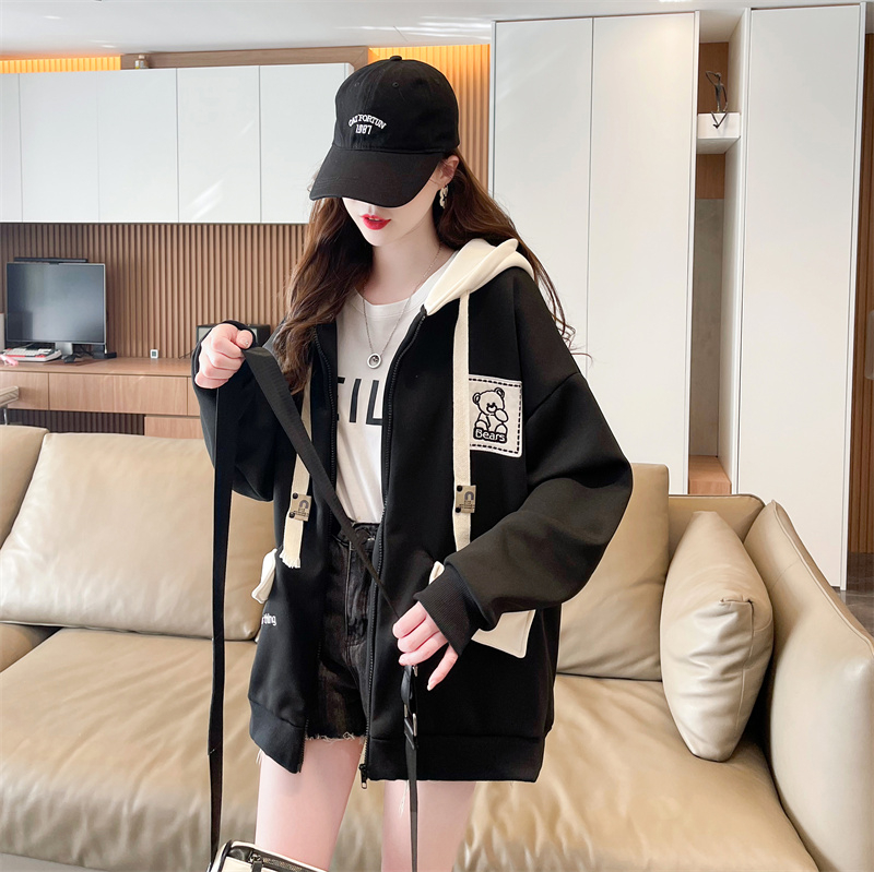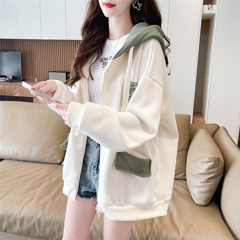 秋冬加絨加厚美式棒球服開衫外套女設計感小衆oversize連帽上衣服