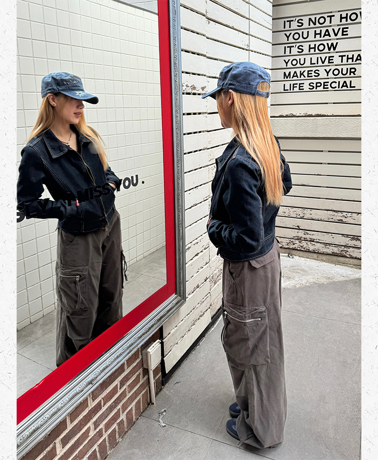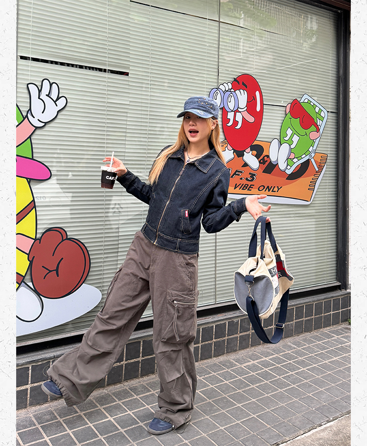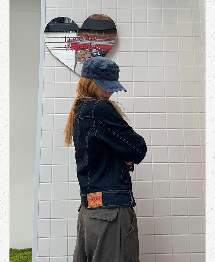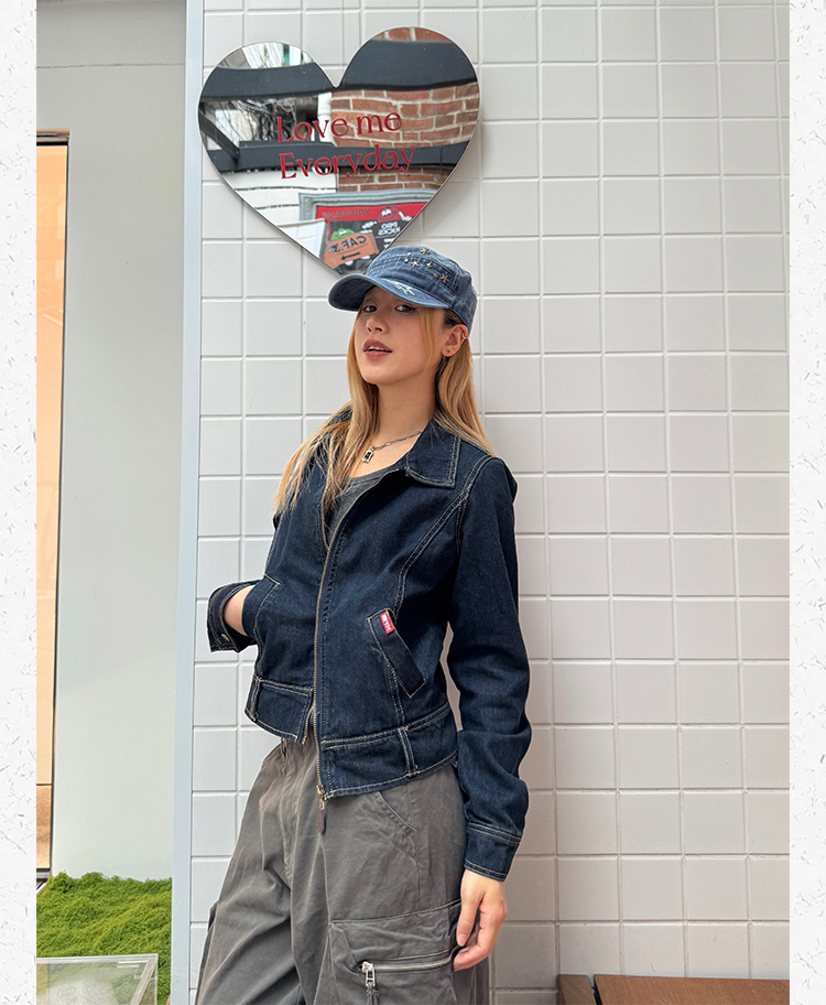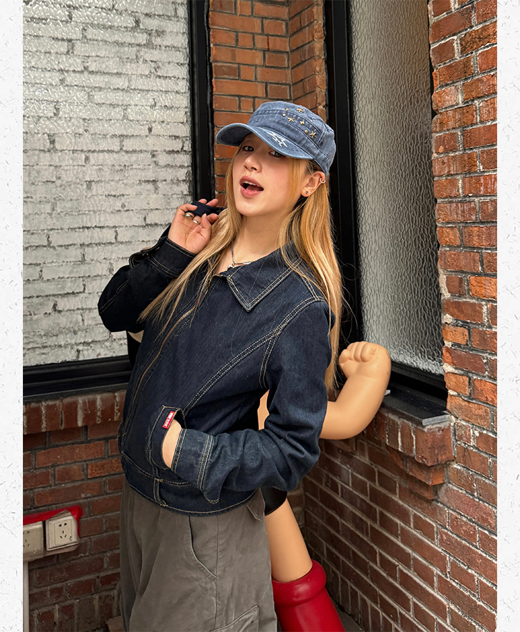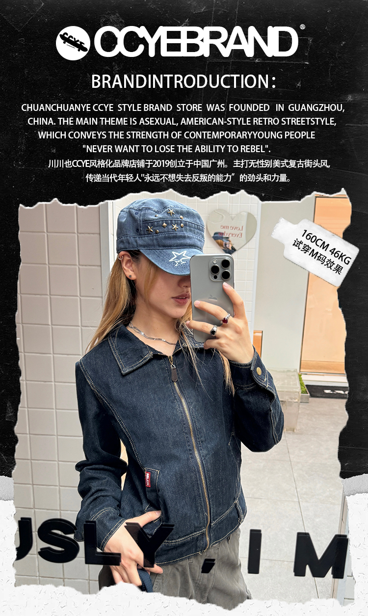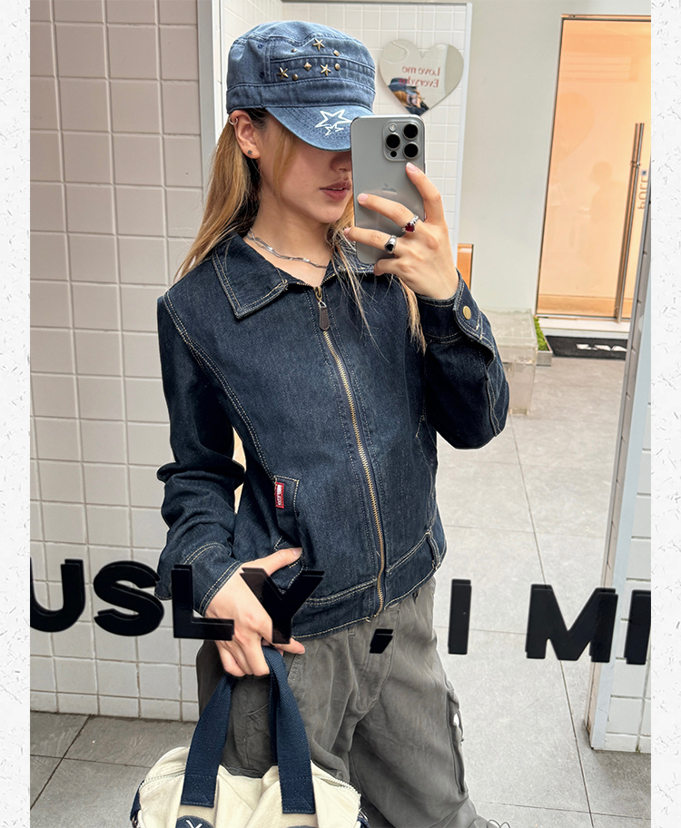 川川也美式做舊修身牛仔夾克外套女復古短款春秋新款上衣cleanfit