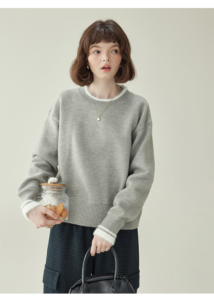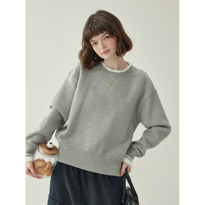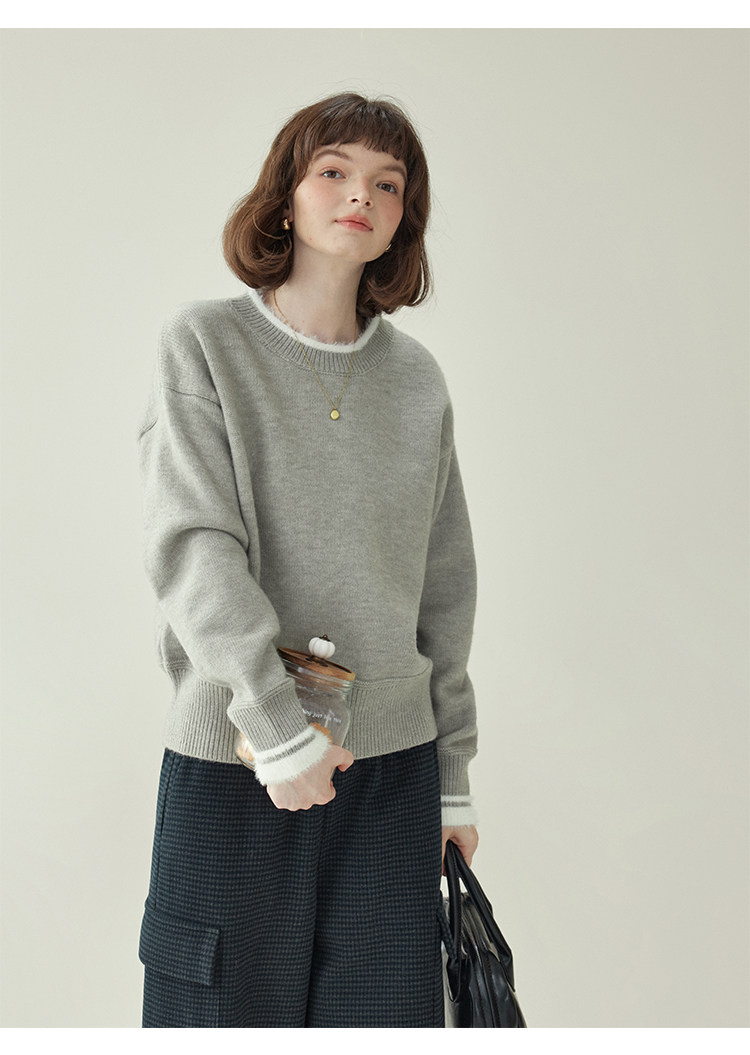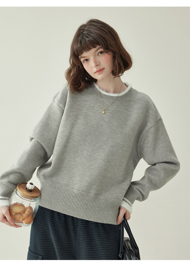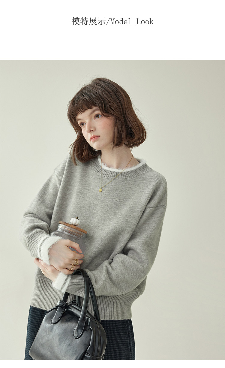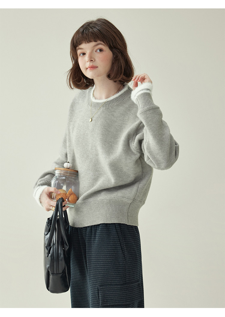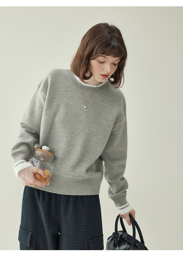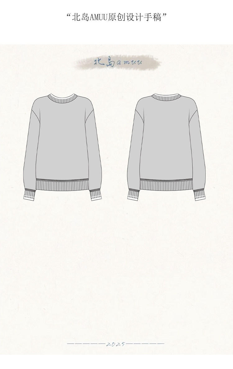 「北島AMUU原創」減齡拼色圓領長袖毛衣女25冬季新款寬松通勤上衣
