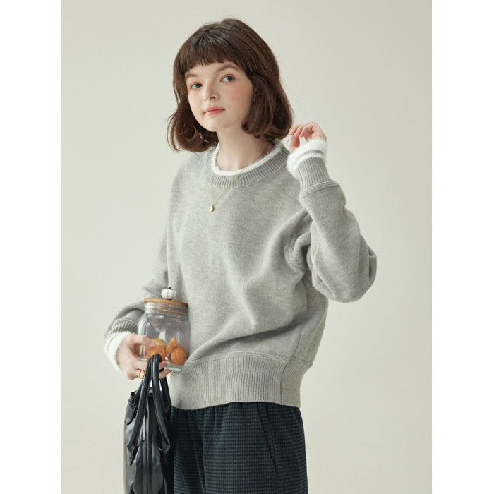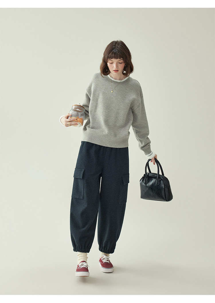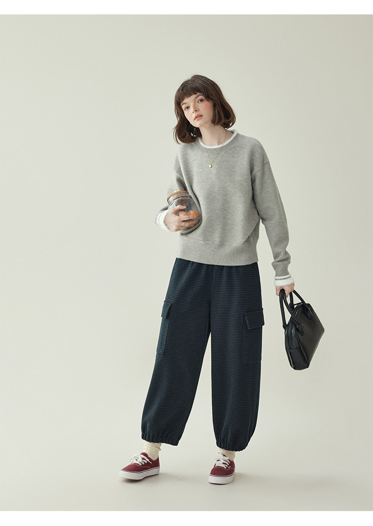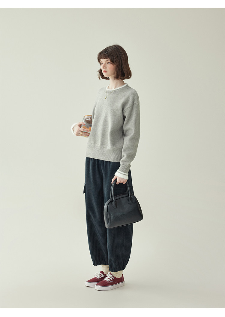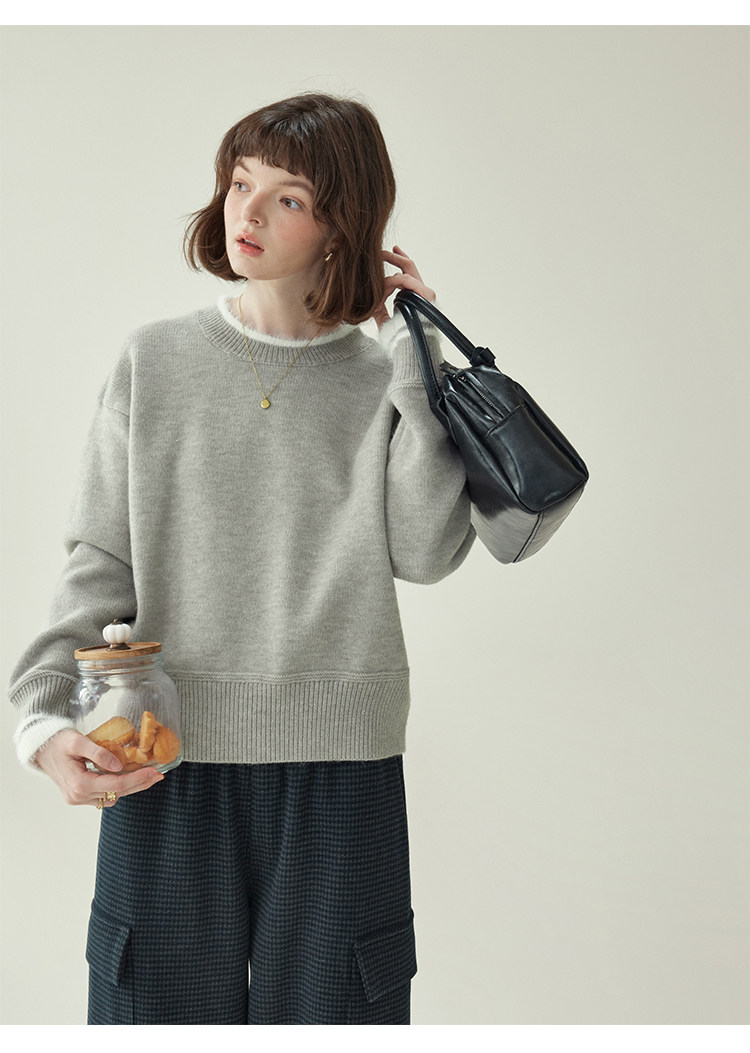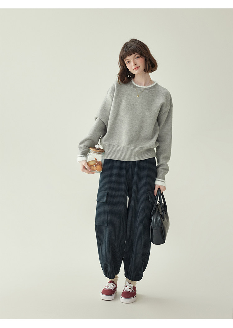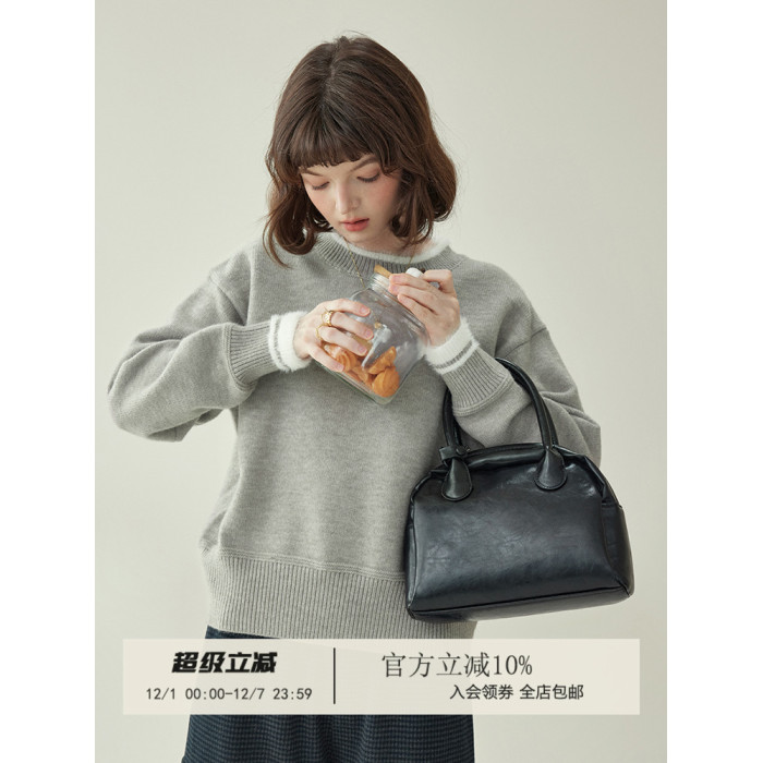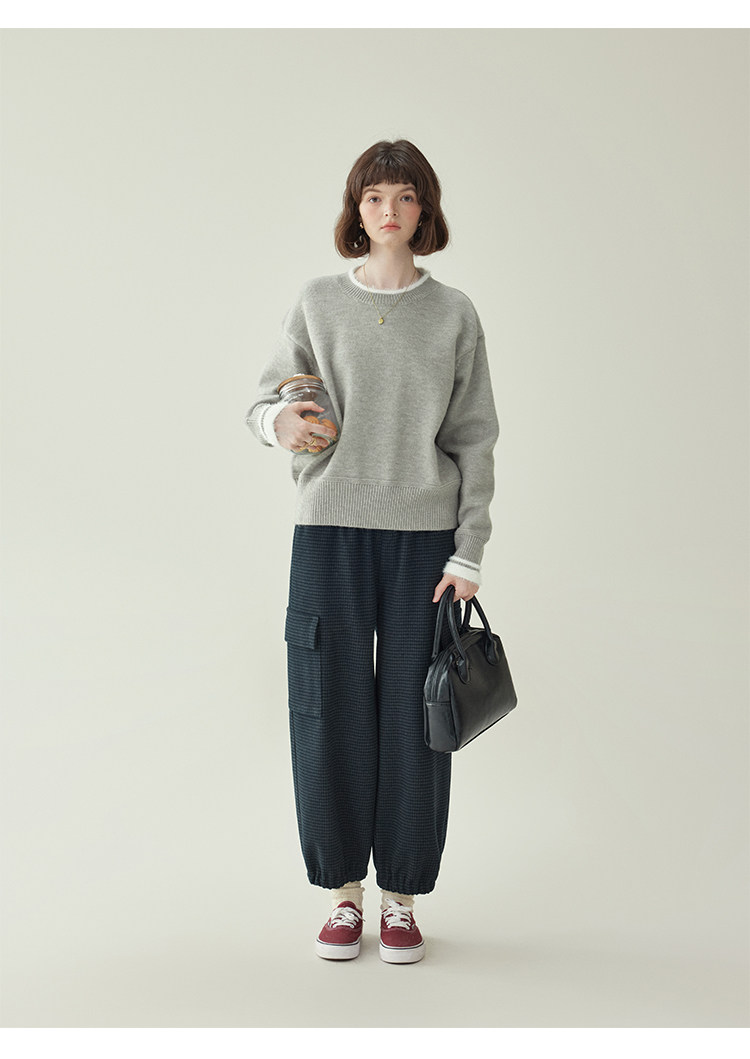 「北島AMUU原創」減齡拼色圓領長袖毛衣女25冬季新款寬松通勤上衣