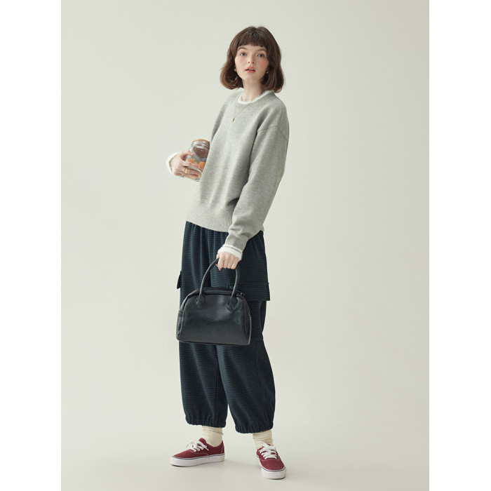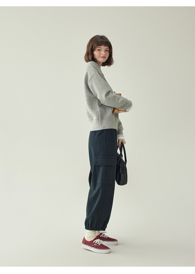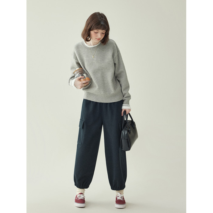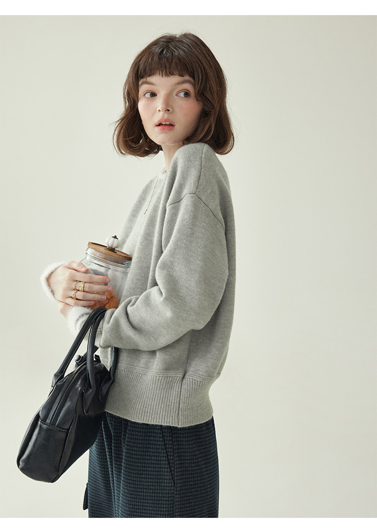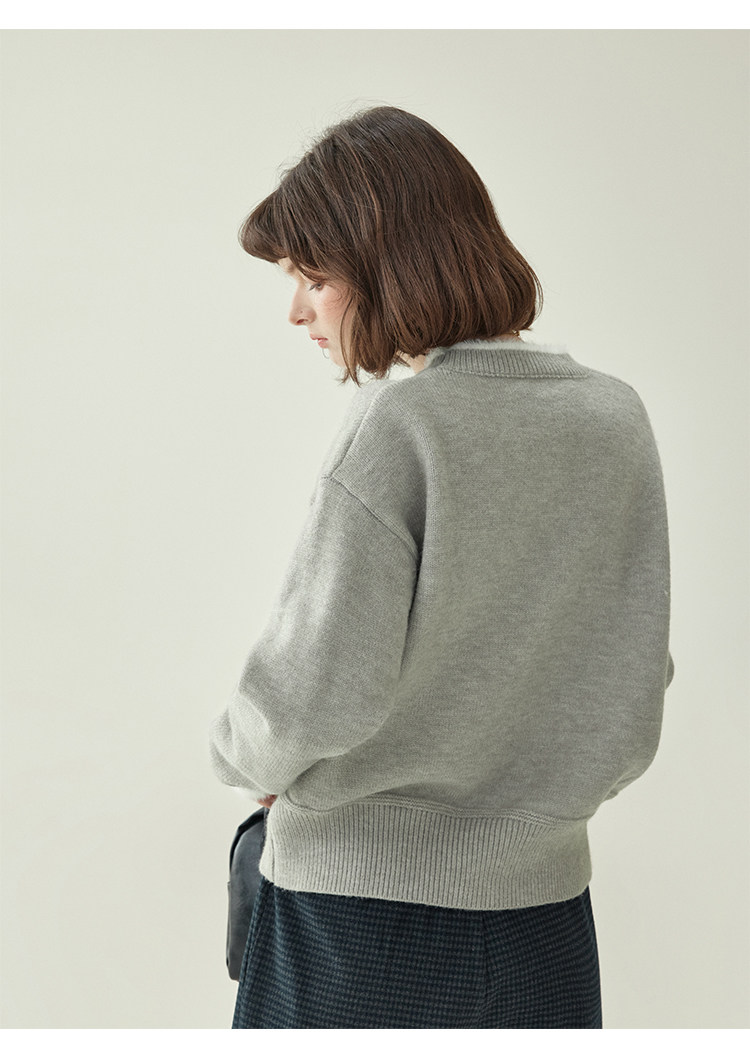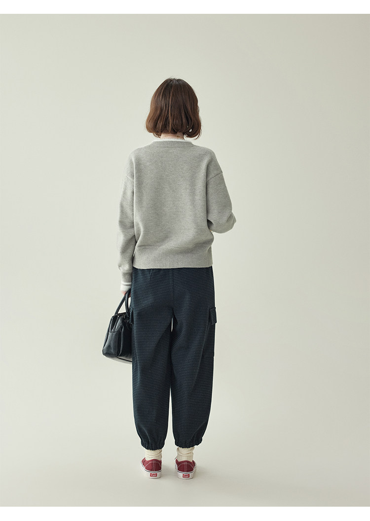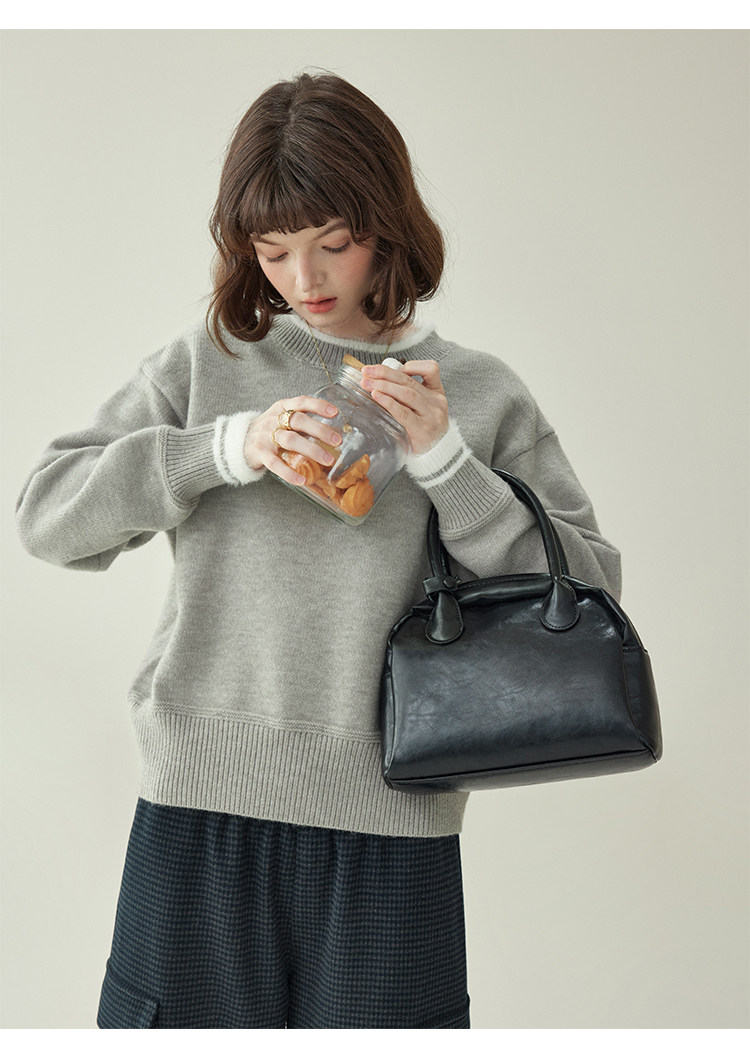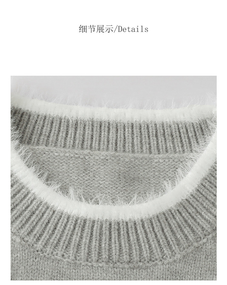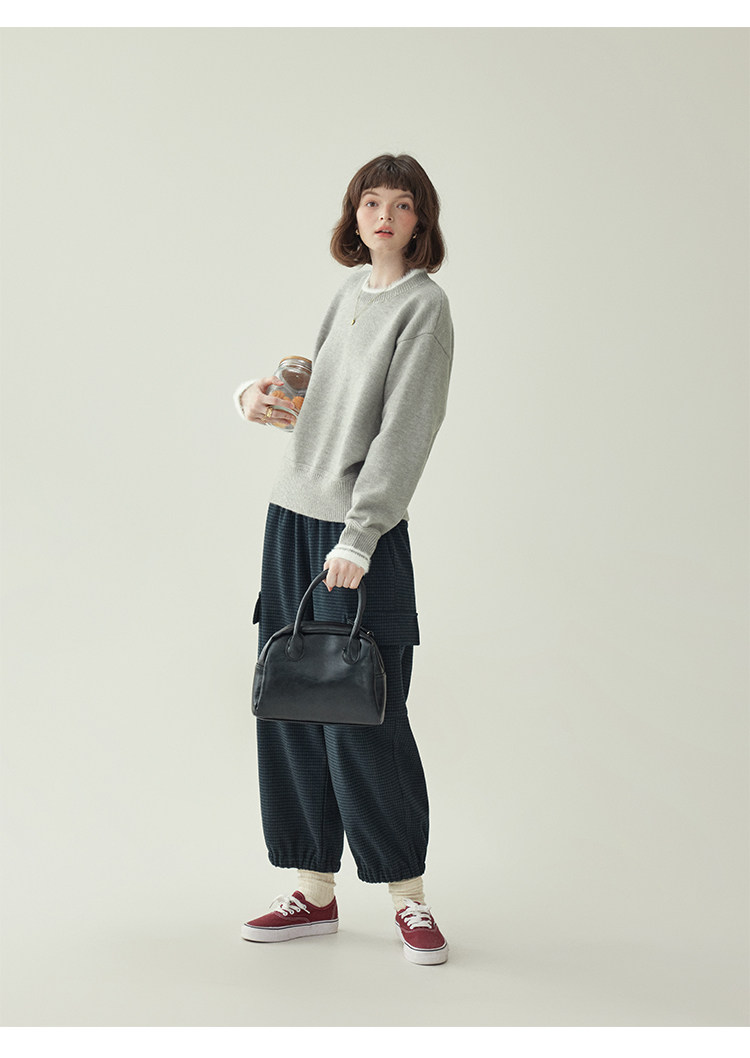 「北島AMUU原創」減齡拼色圓領長袖毛衣女25冬季新款寬松通勤上衣