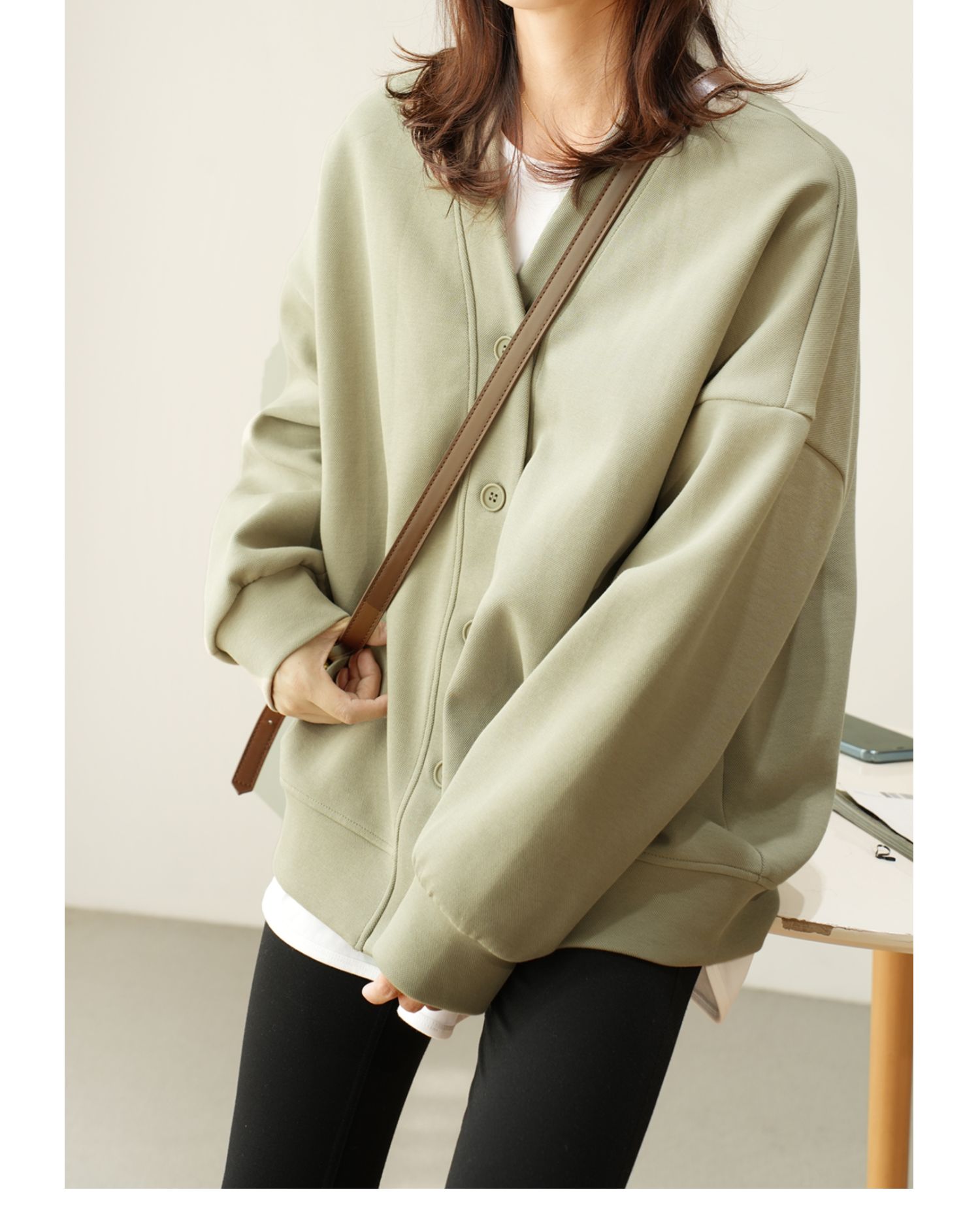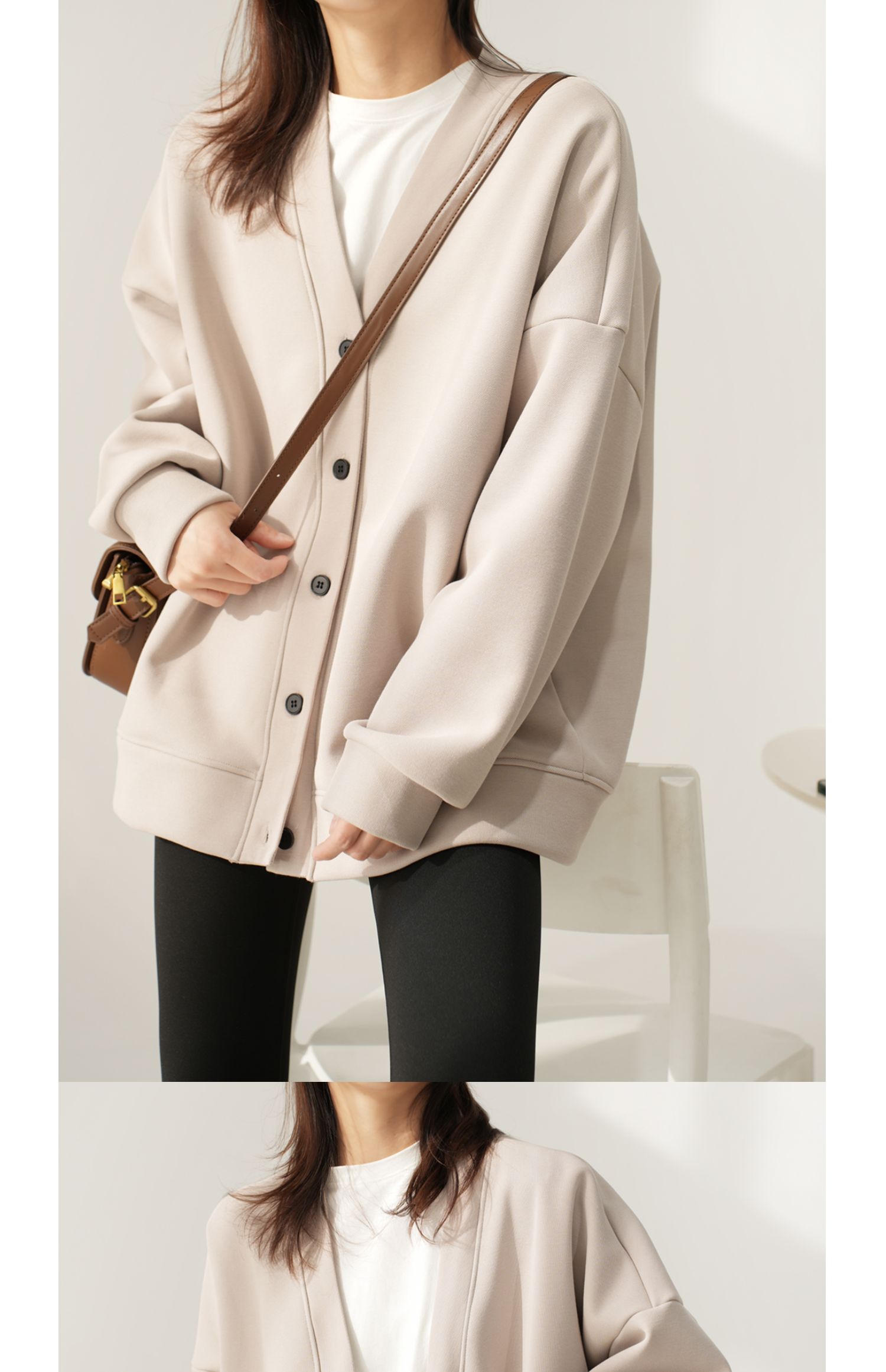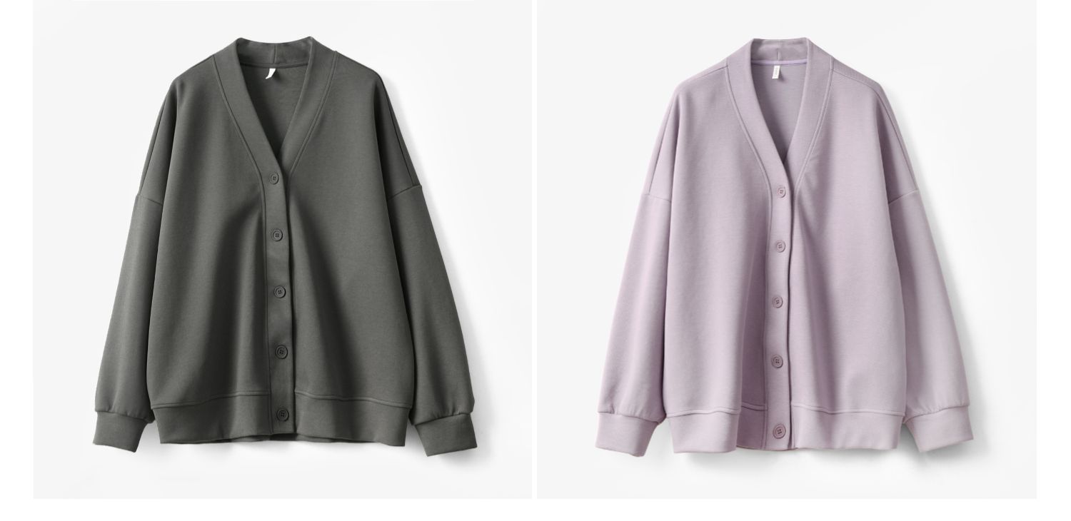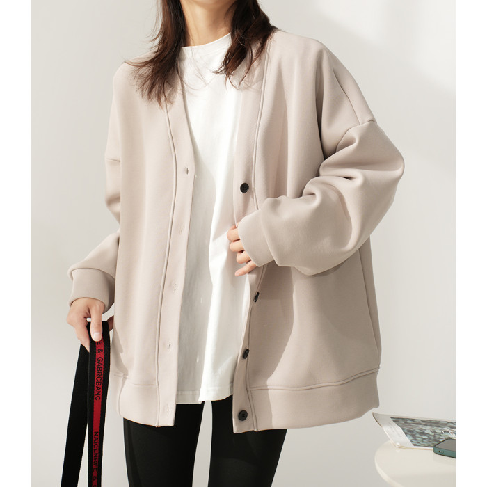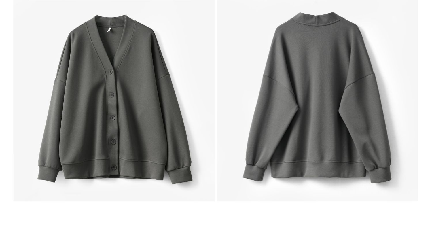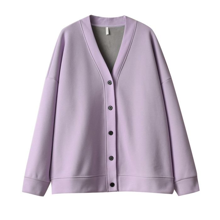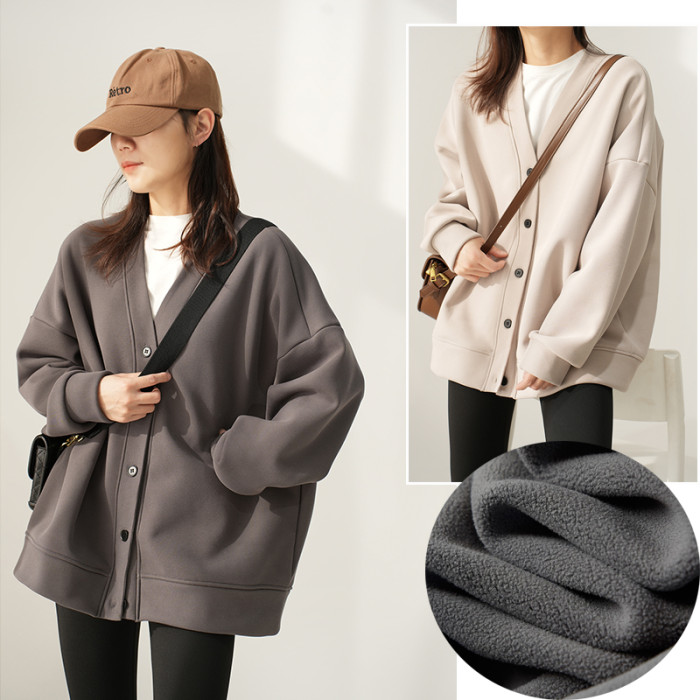 女士珠地棉加絨外套 一體奧麗絨保暖衛衣開衫 V領上衣秋冬款女裝