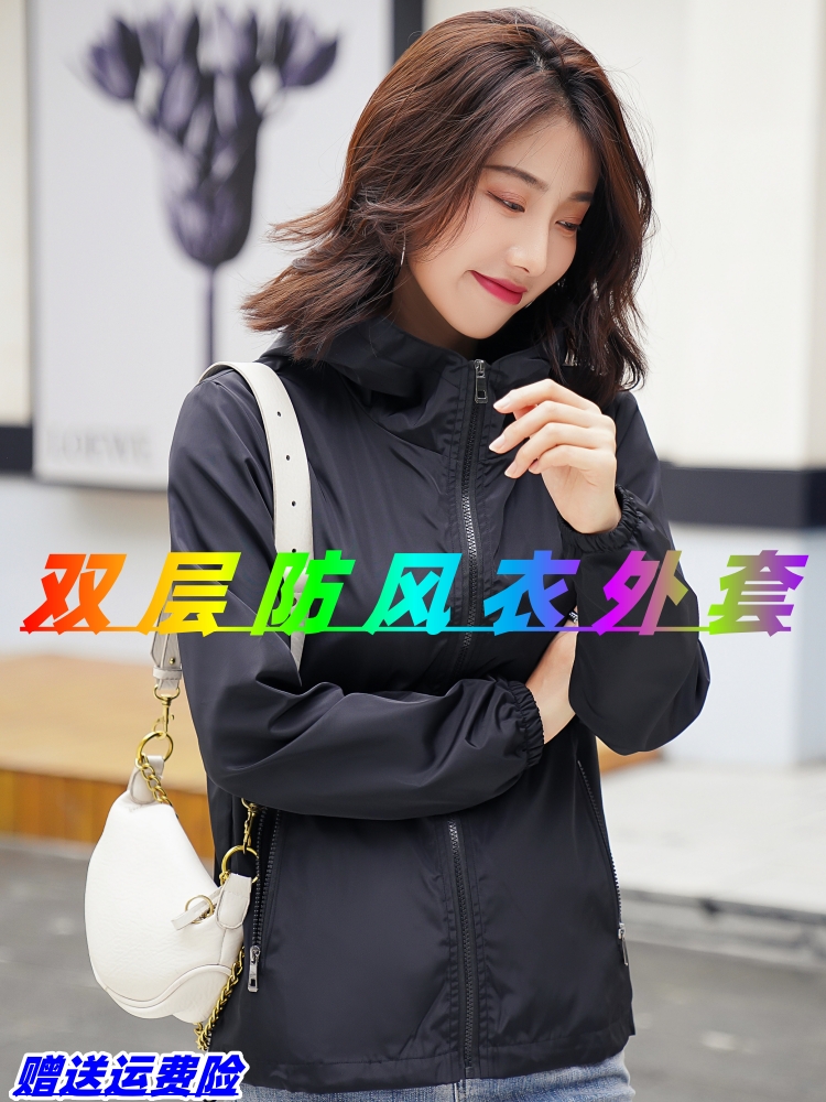 雙層外套女春秋2025新款連帽沖鋒衣百搭休閒風衣短外套上衣夾克衫