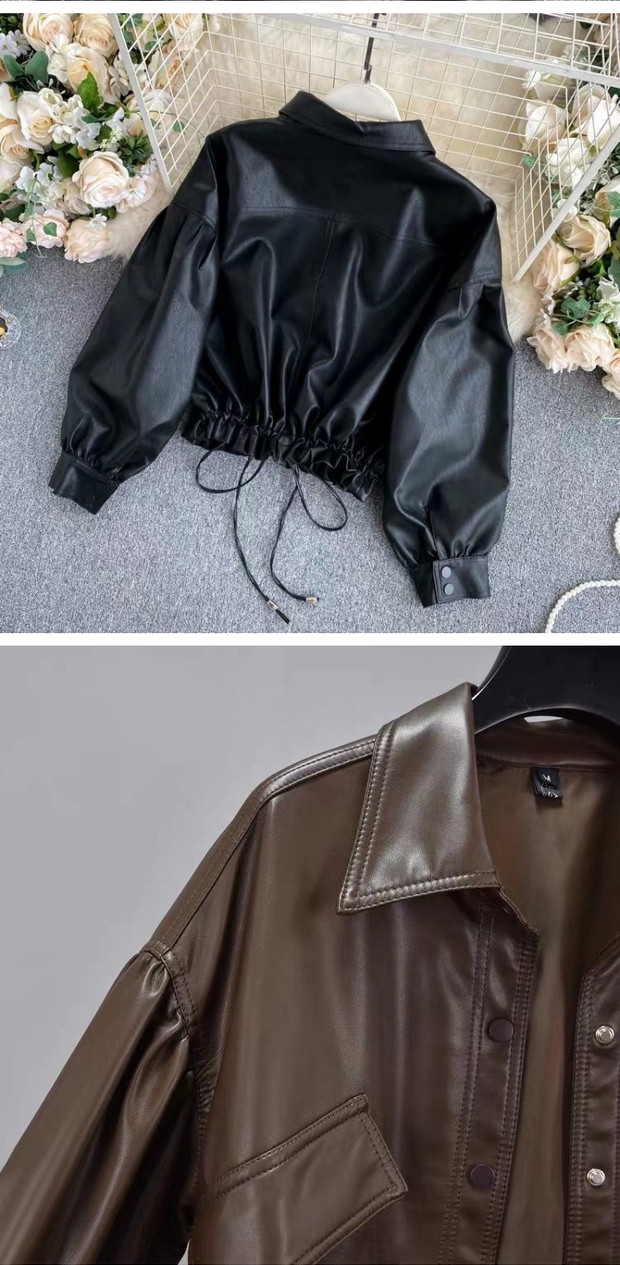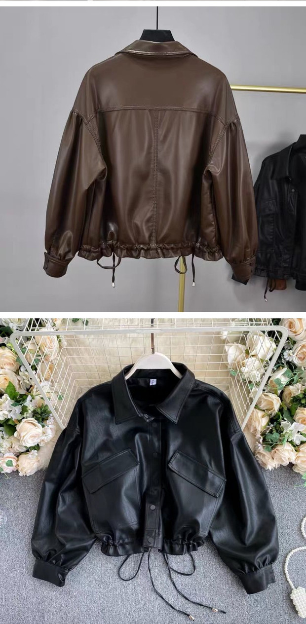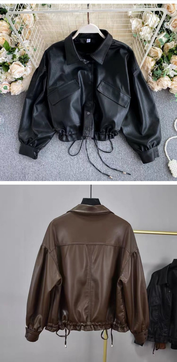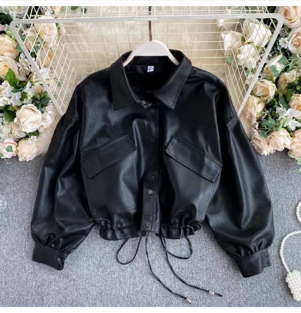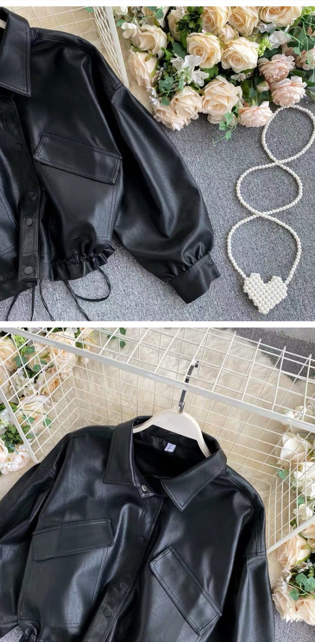 韓版復古bf風寬松版皮衣外套女2025秋新款大口袋修身短款機車夾克