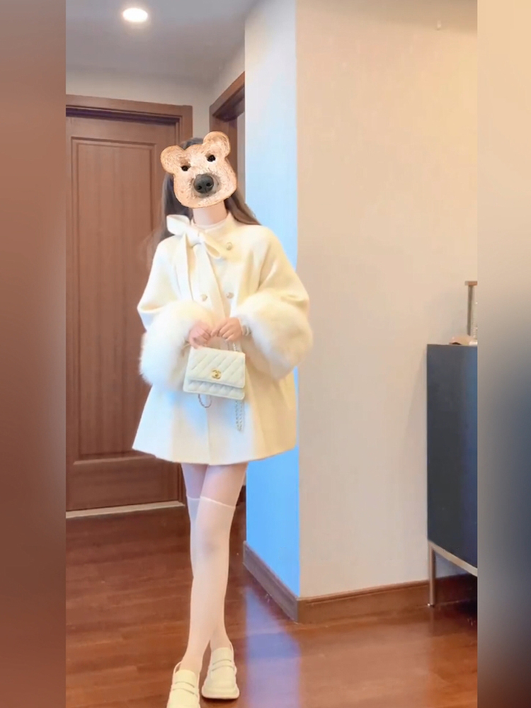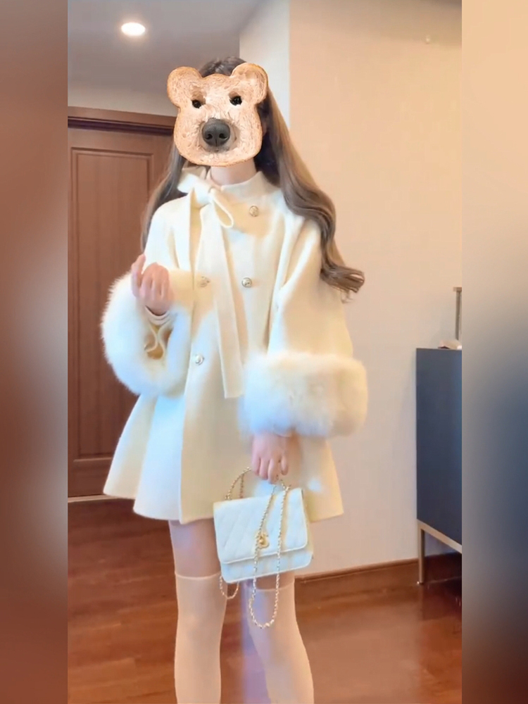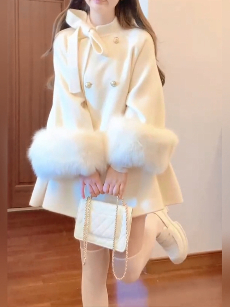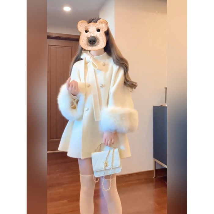 大碼法式富家千金白色毛呢外套女裝秋冬高級感中長款呢子鬭篷大衣