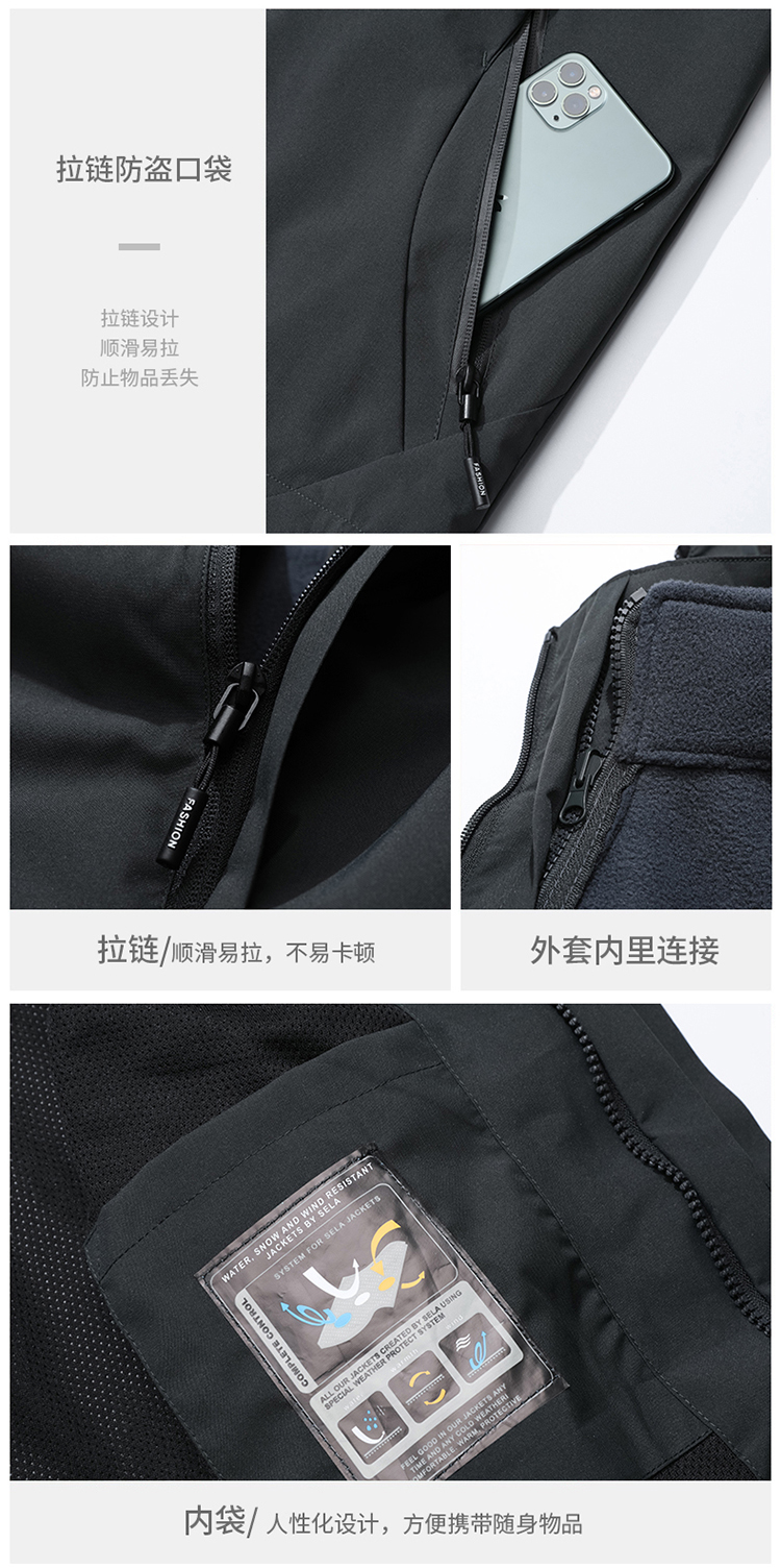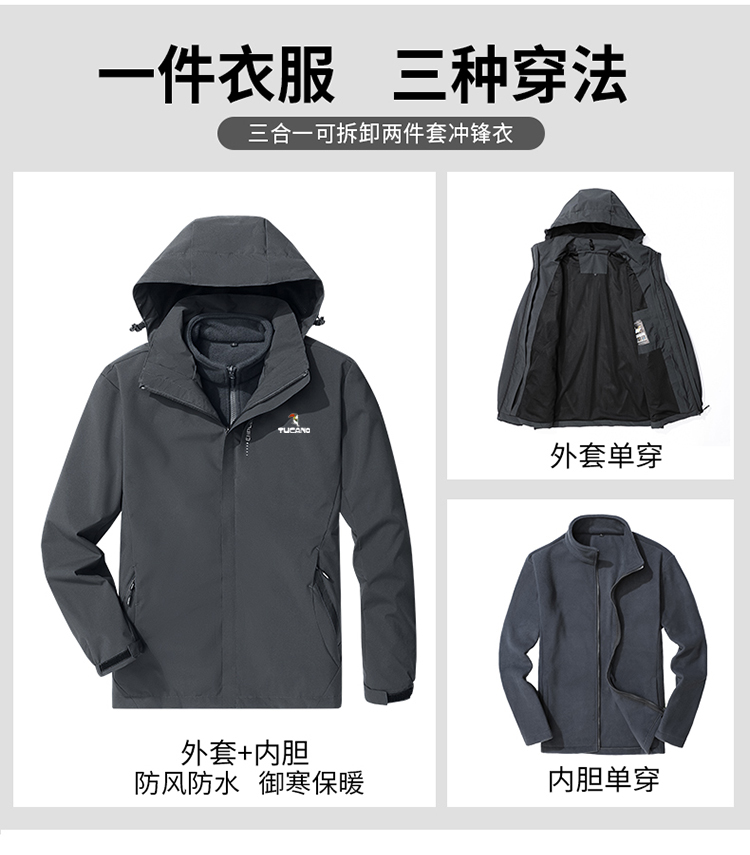 啄木鳥沖鋒衣女春秋季三合一可拆卸防風防水加厚登山服夾克外套男