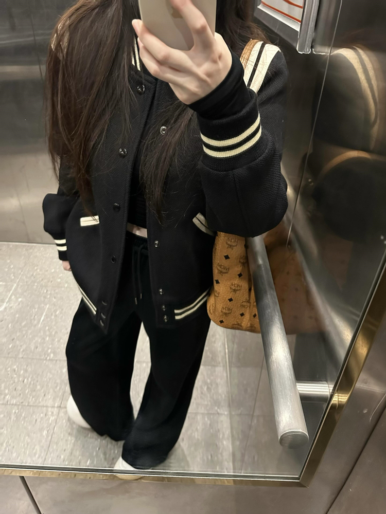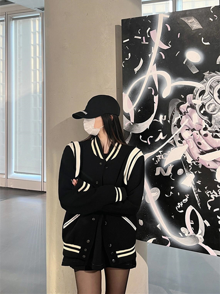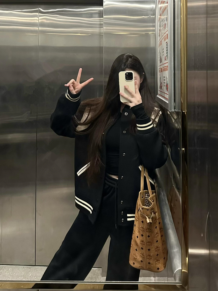 黑色棒球服外套女加厚春秋季2025新款美式復古學院風毛呢夾克上衣