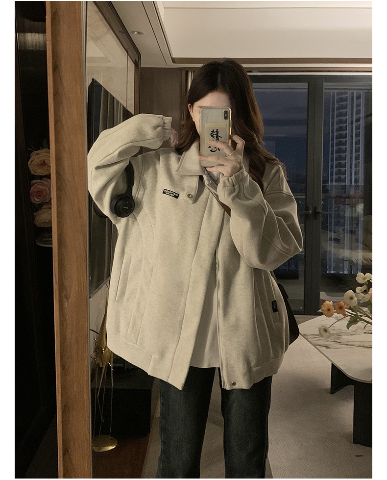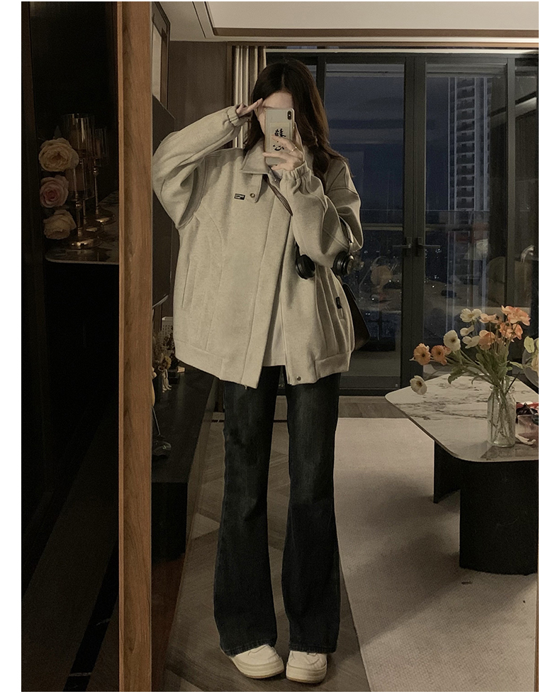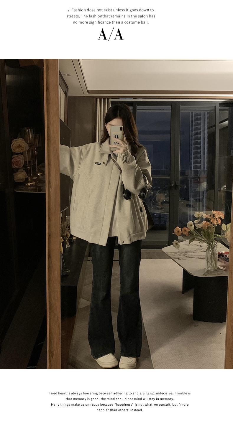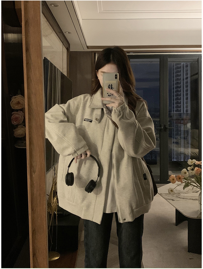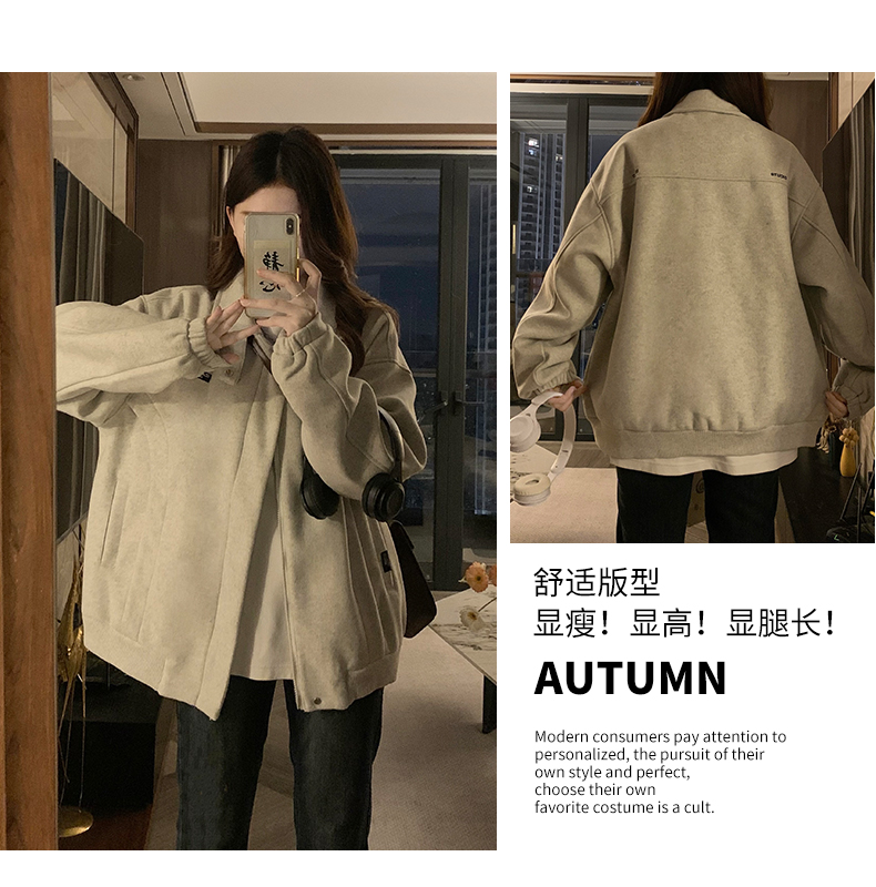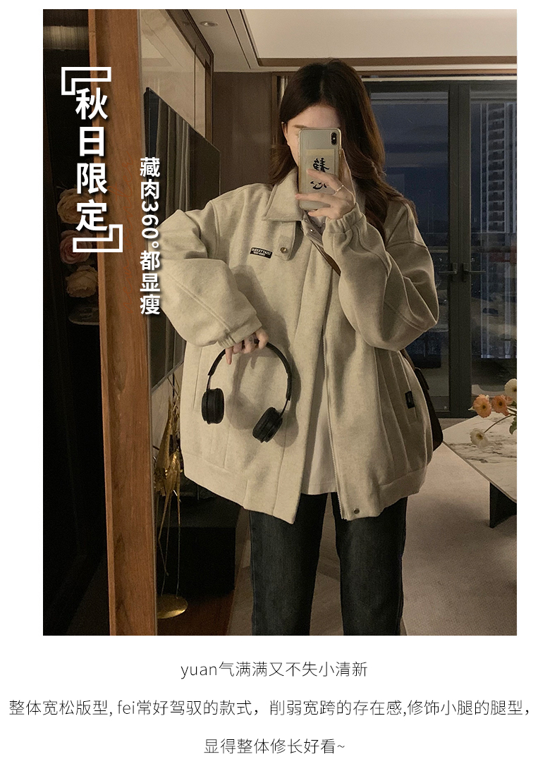 毛呢外套女2025秋冬款寬松百搭設計感小衆美式復古翻領夾克棒球服