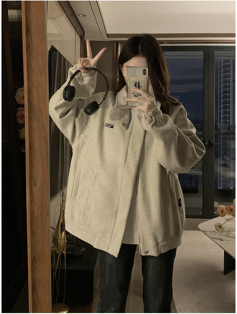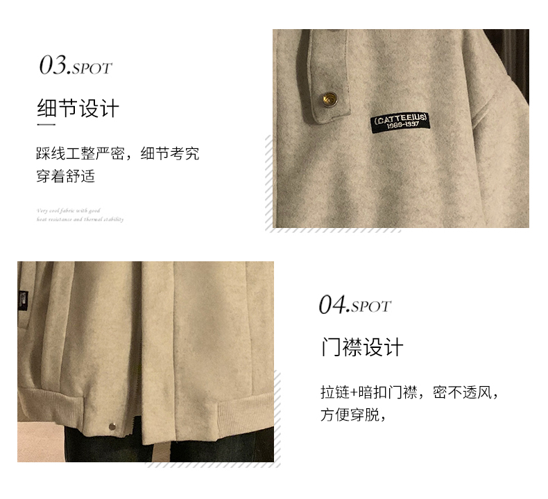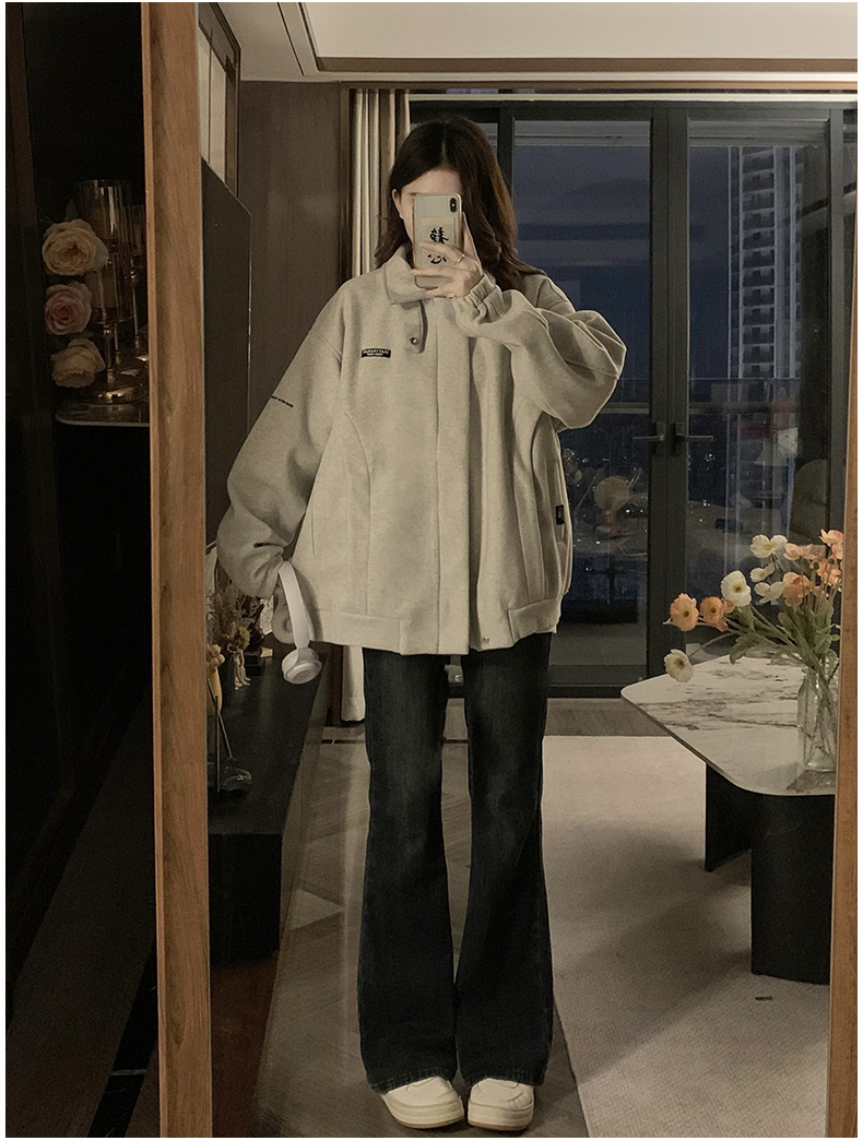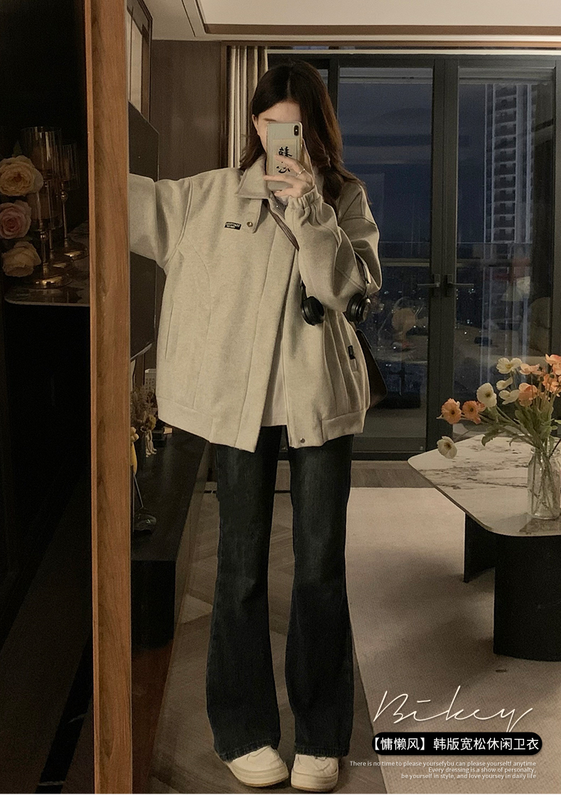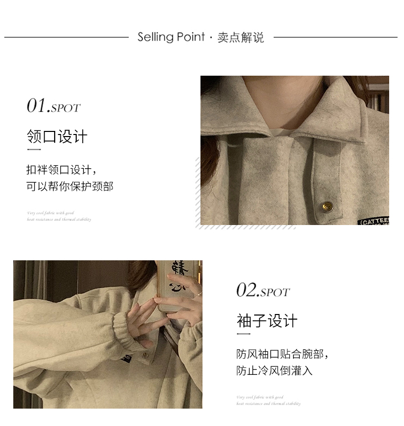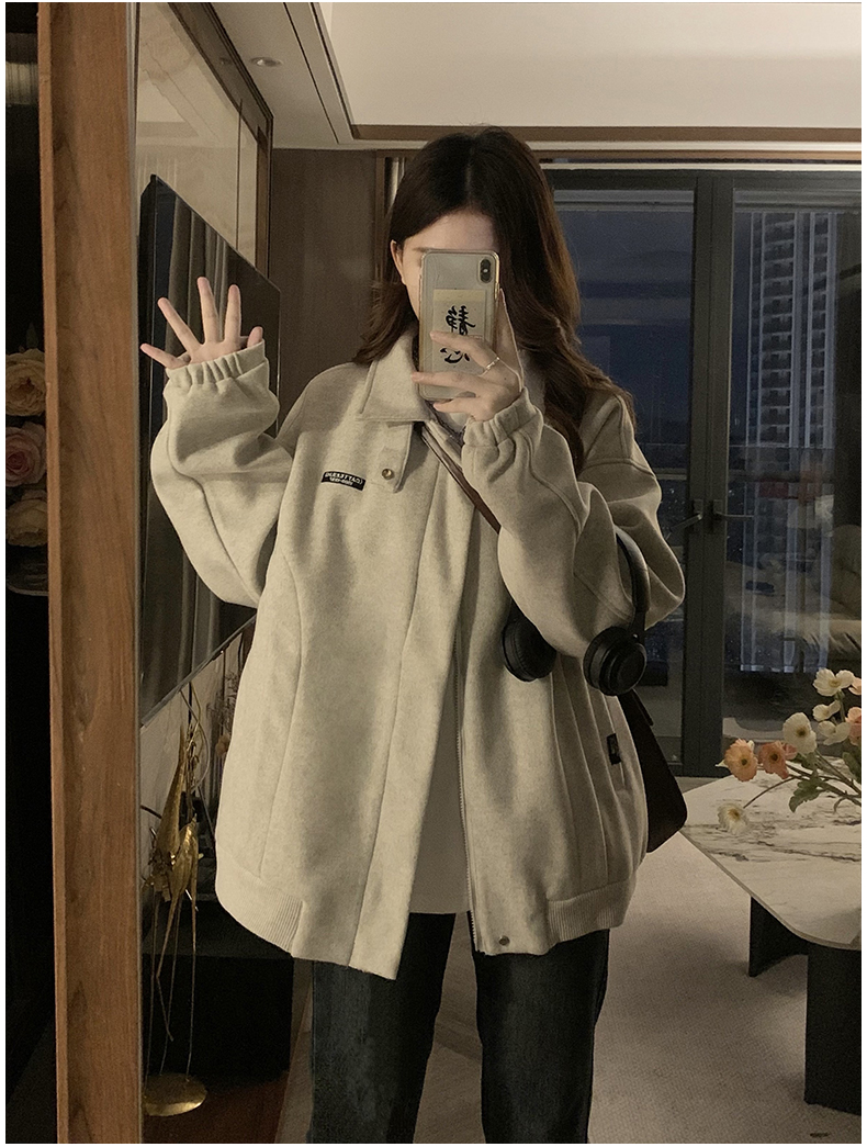 毛呢外套女2025秋冬款寬松百搭設計感小衆美式復古翻領夾克棒球服