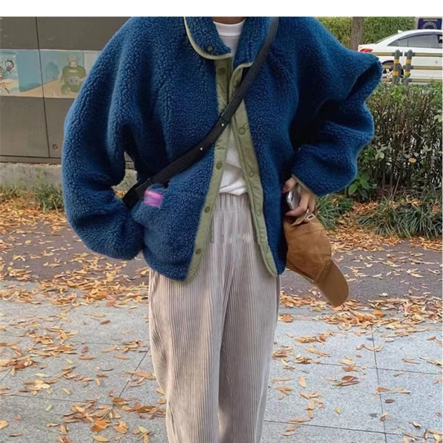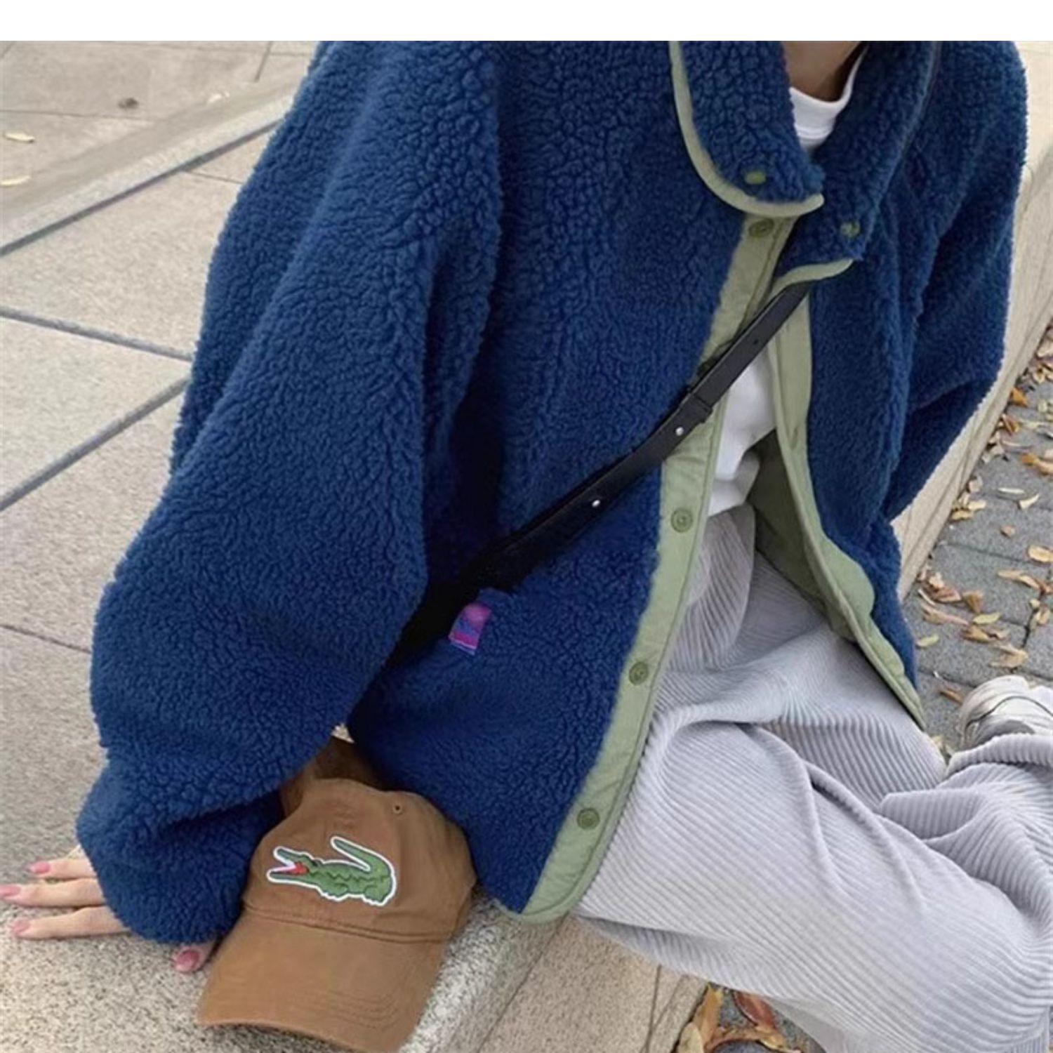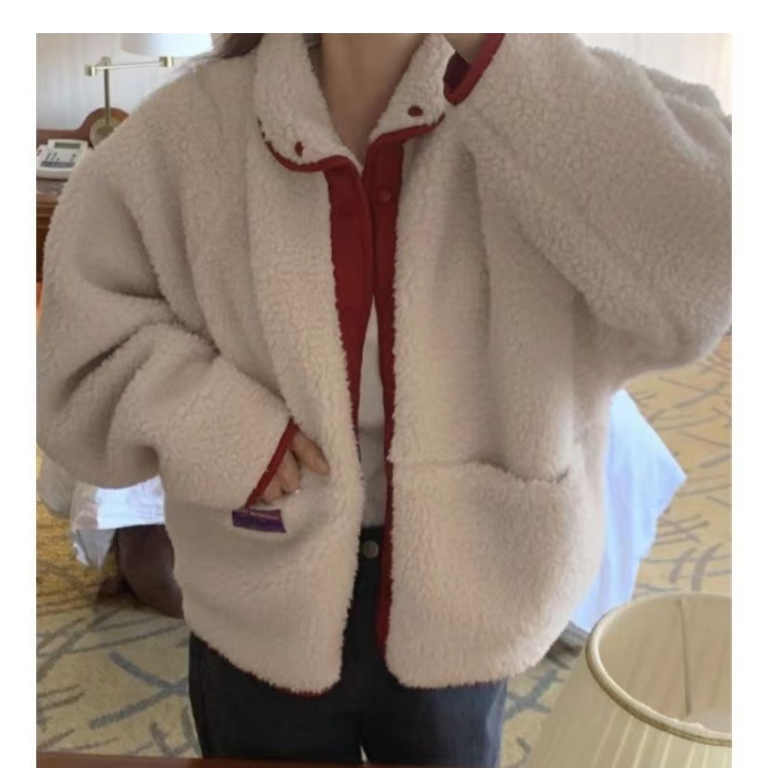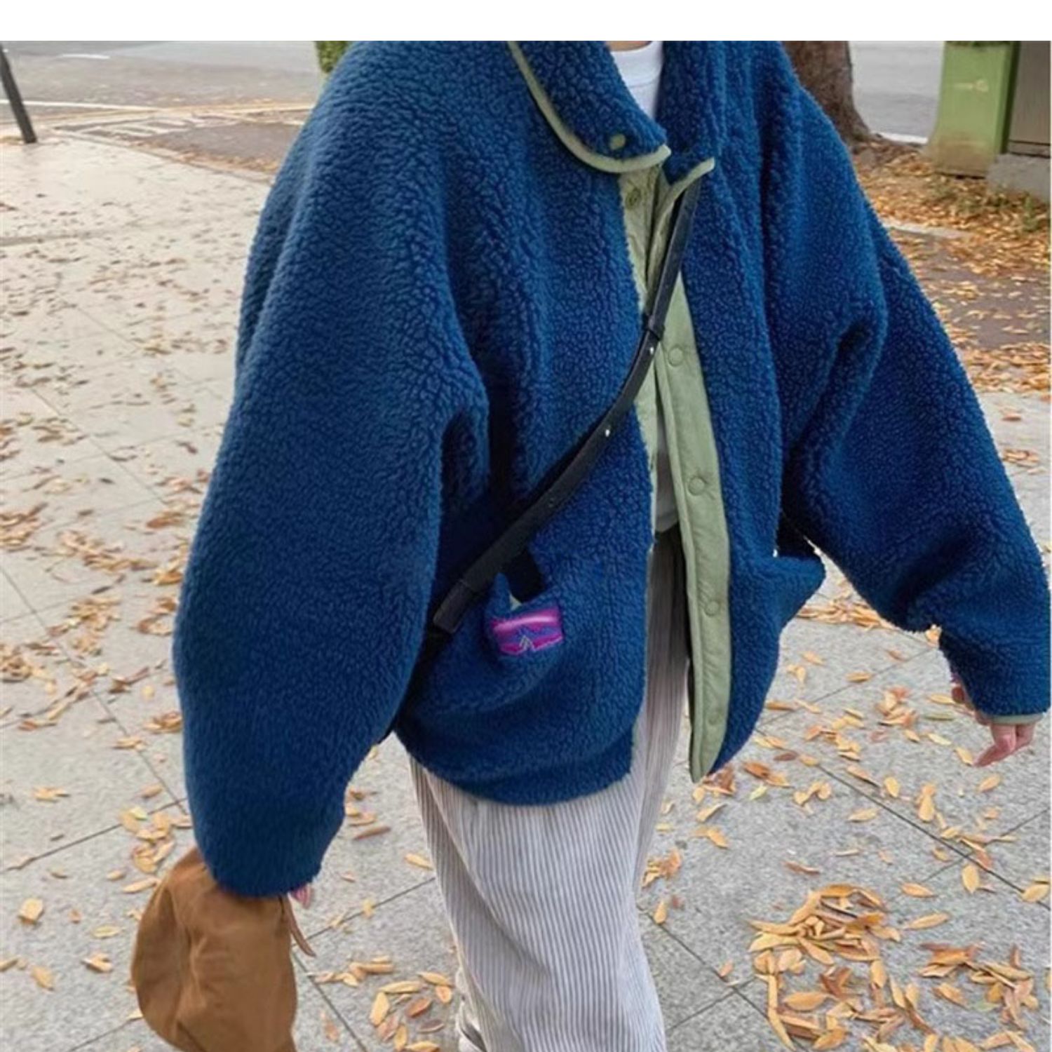 加厚羊羔毛外套女冬季新款韓版寬松撞色正反兩面穿搖粒絨立領上衣