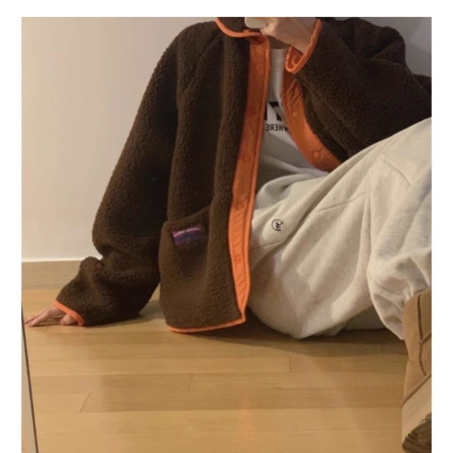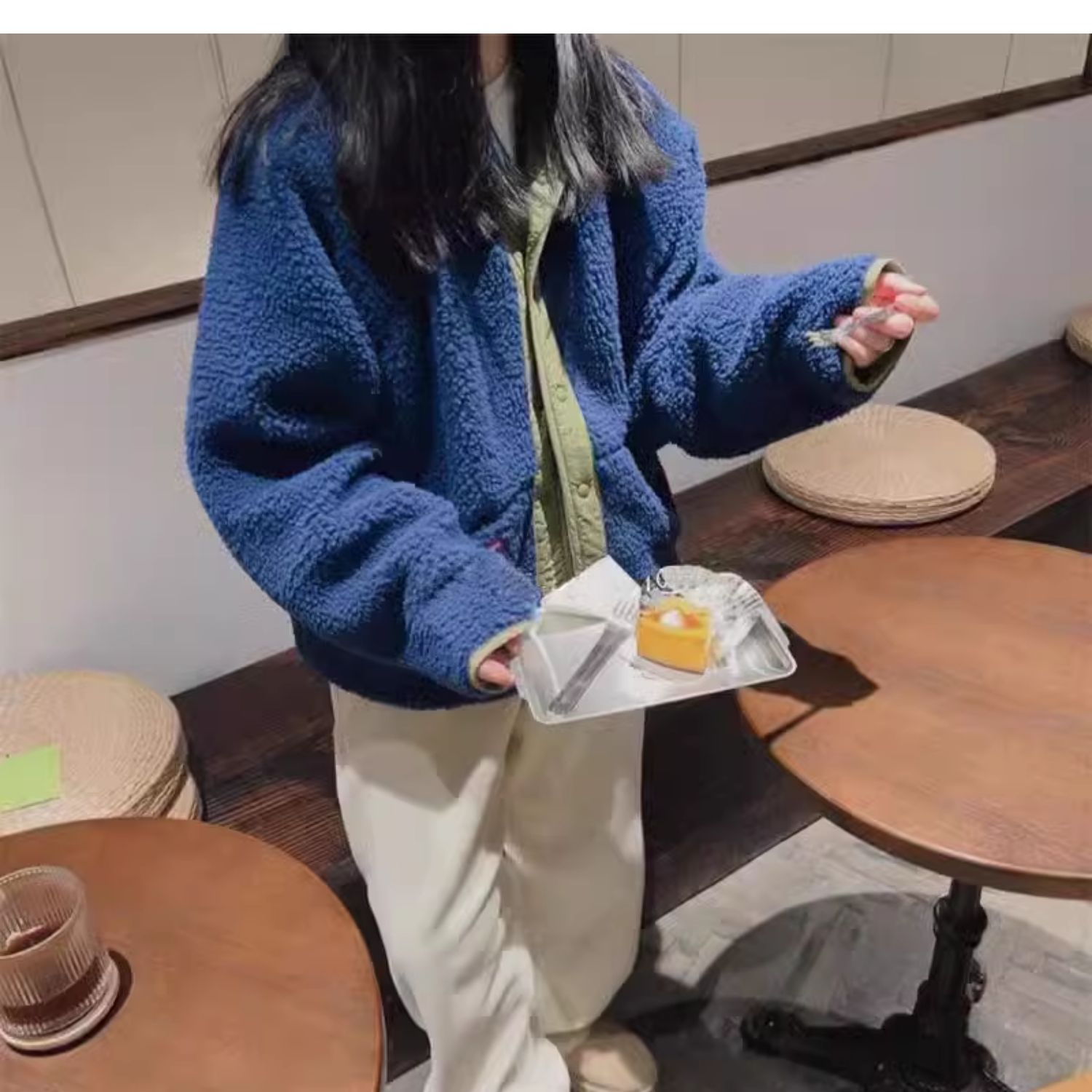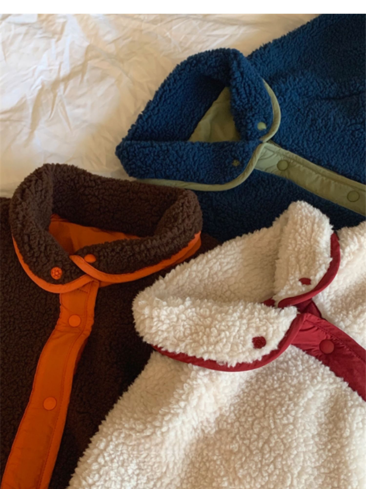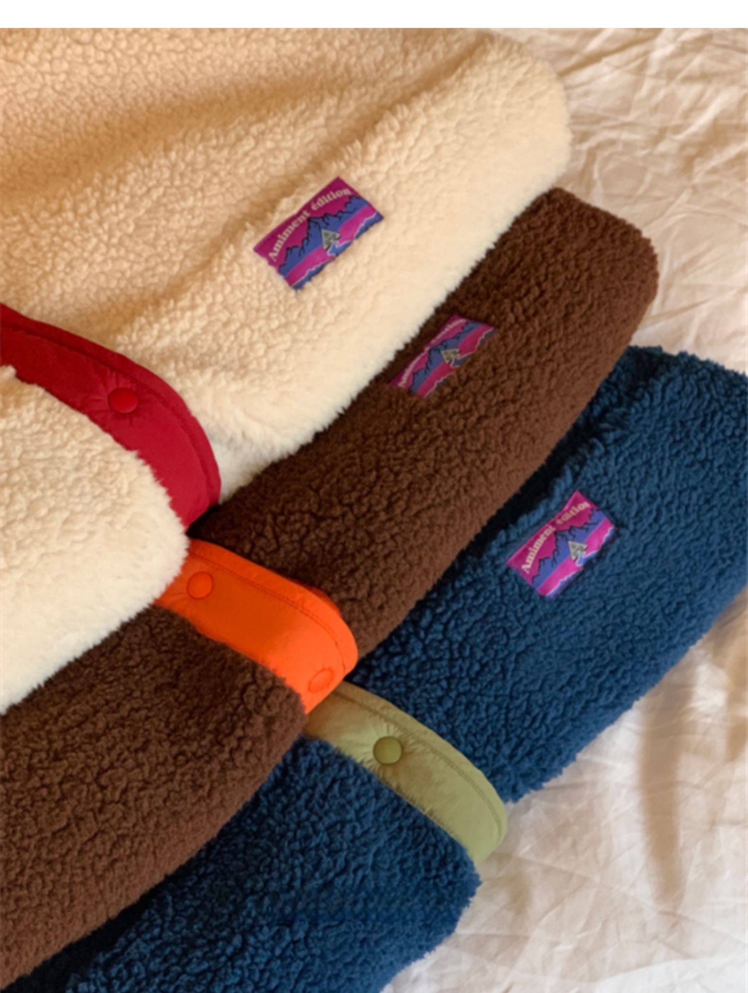 加厚羊羔毛外套女冬季新款韓版寬松撞色正反兩面穿搖粒絨立領上衣