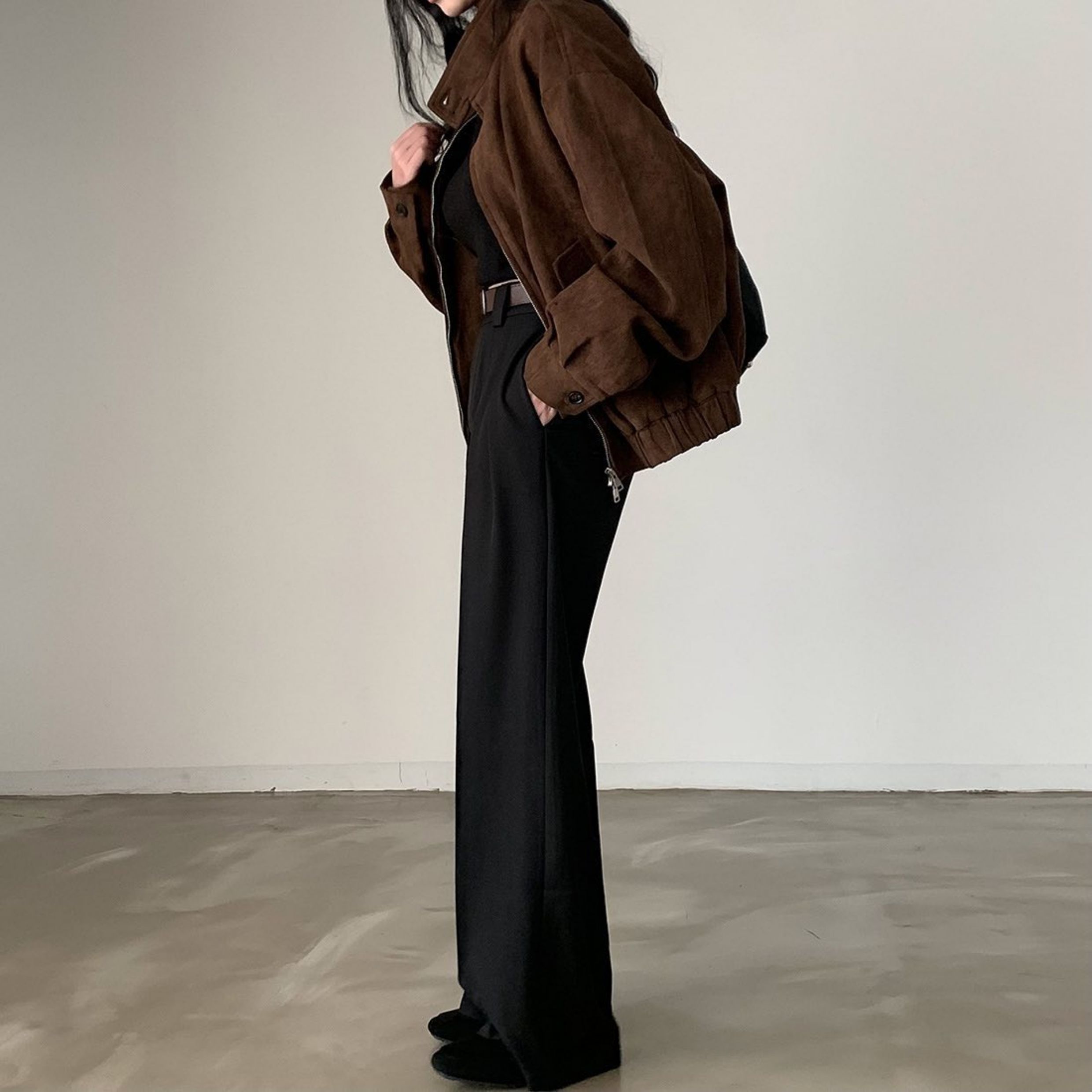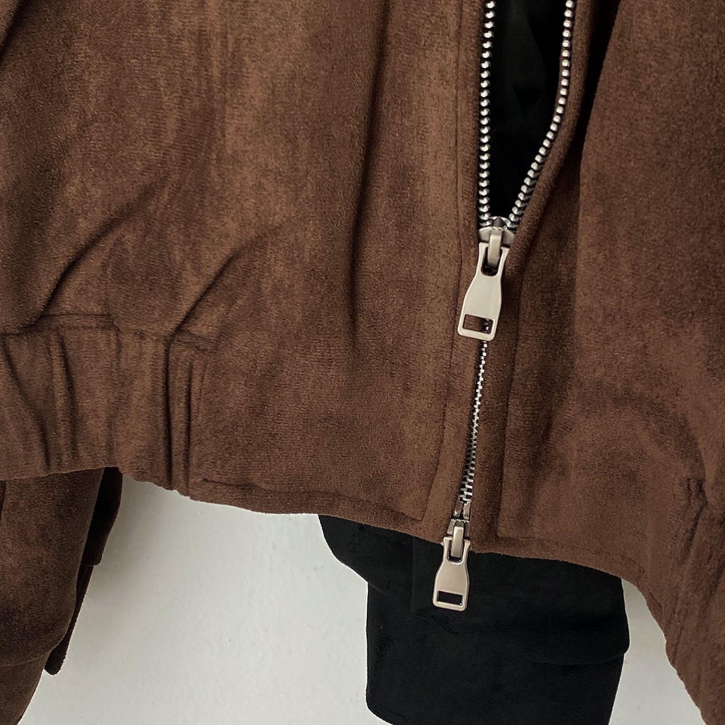 拉夏貝爾復古鹿皮絨夾克外套女2025新款秋冬季加絨設計感小衆上衣