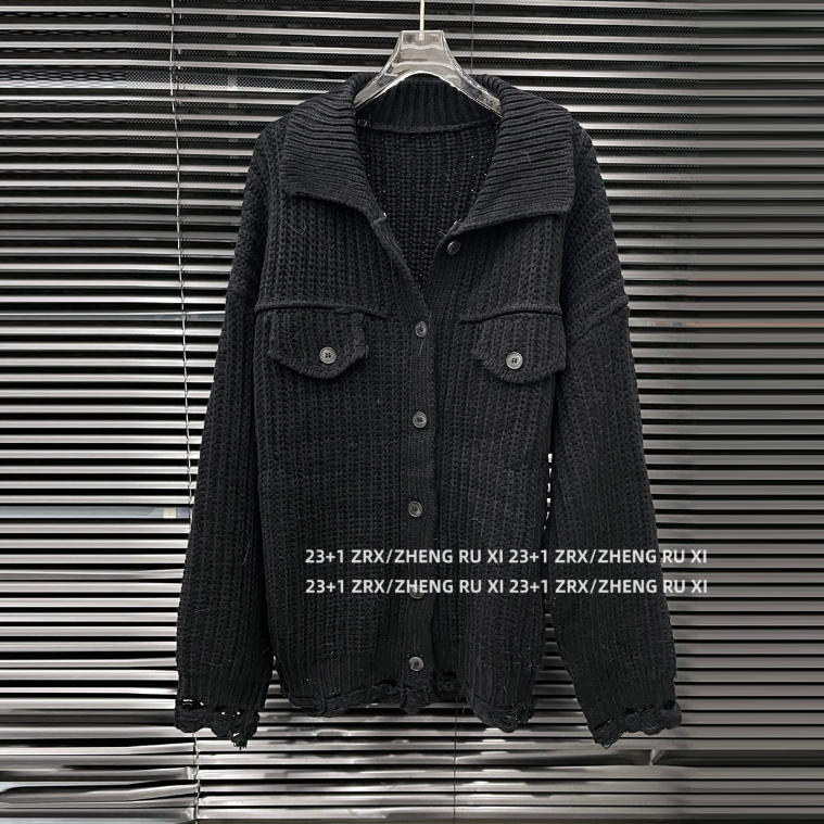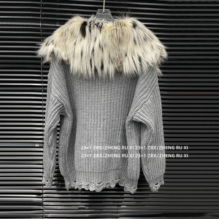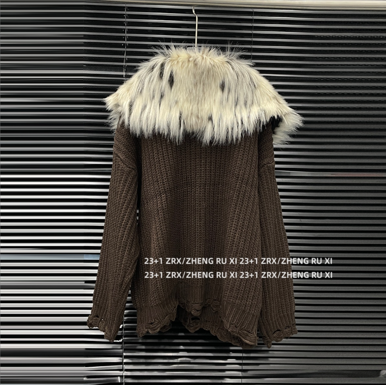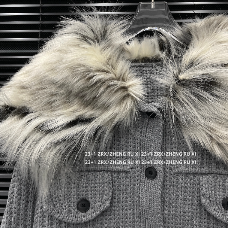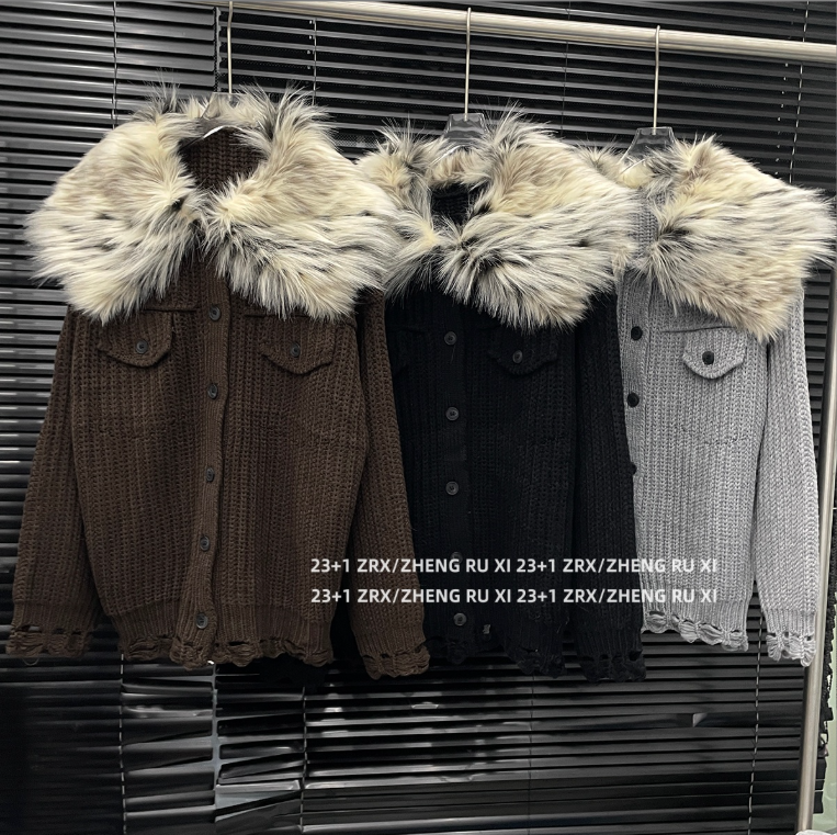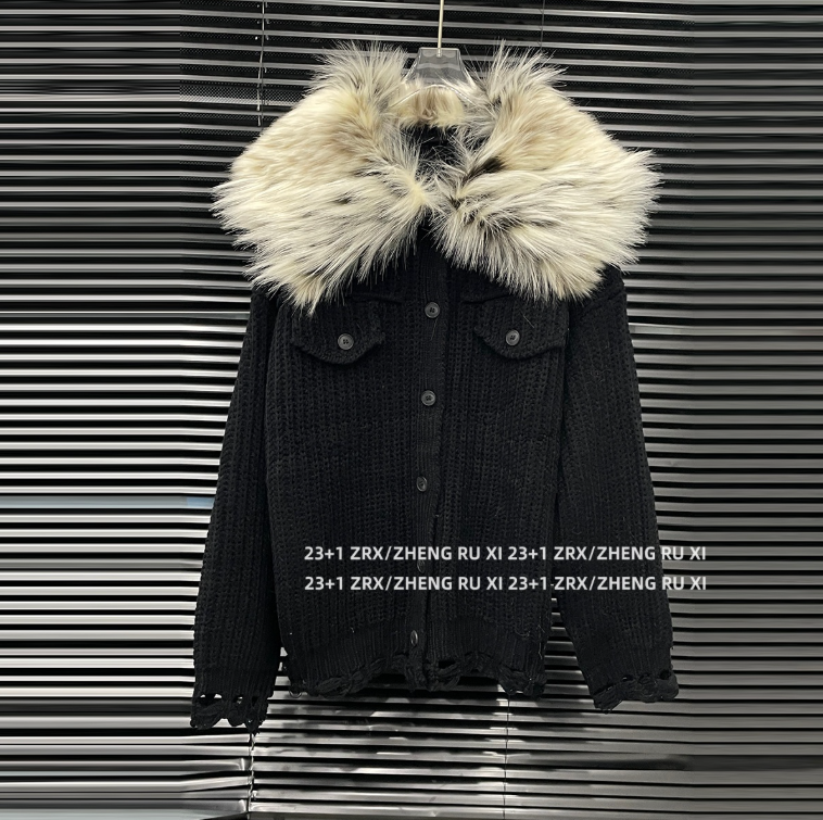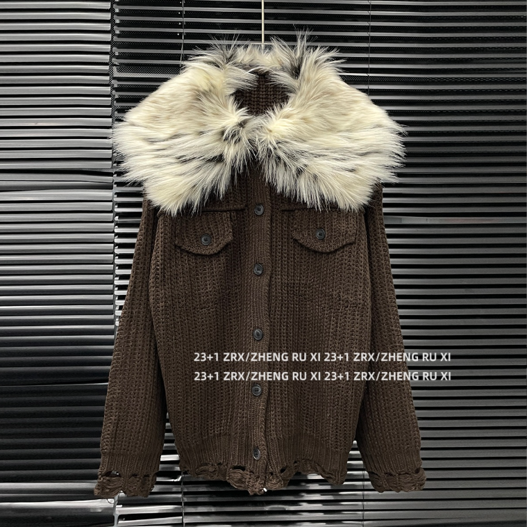 付新博女裝拆卸毛領針織毛衣女美式復古時尚加厚開衫外套15183
