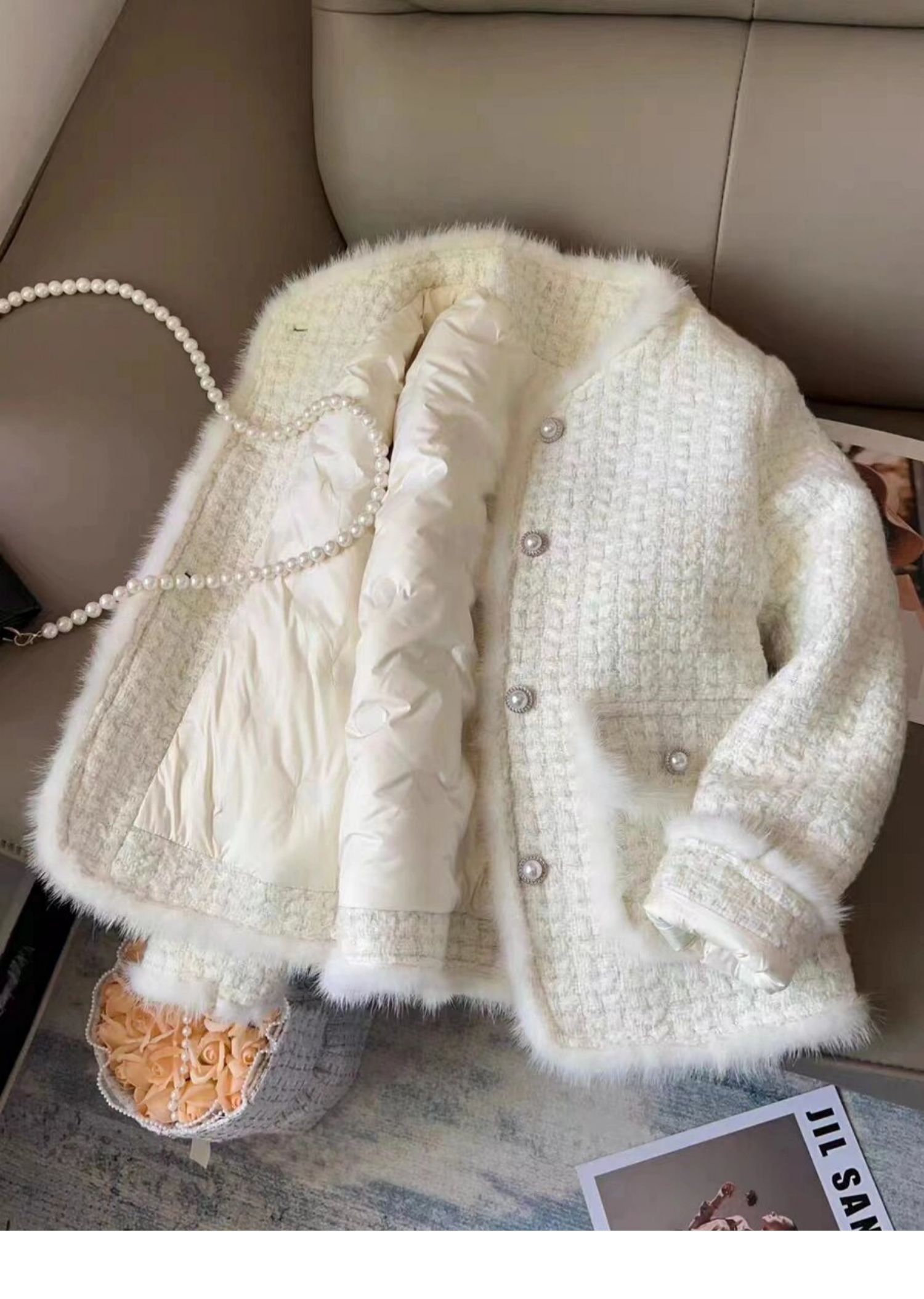 白色小香風羽絨服外套女2025新款秋冬季高級感夾棉加厚小個子短款