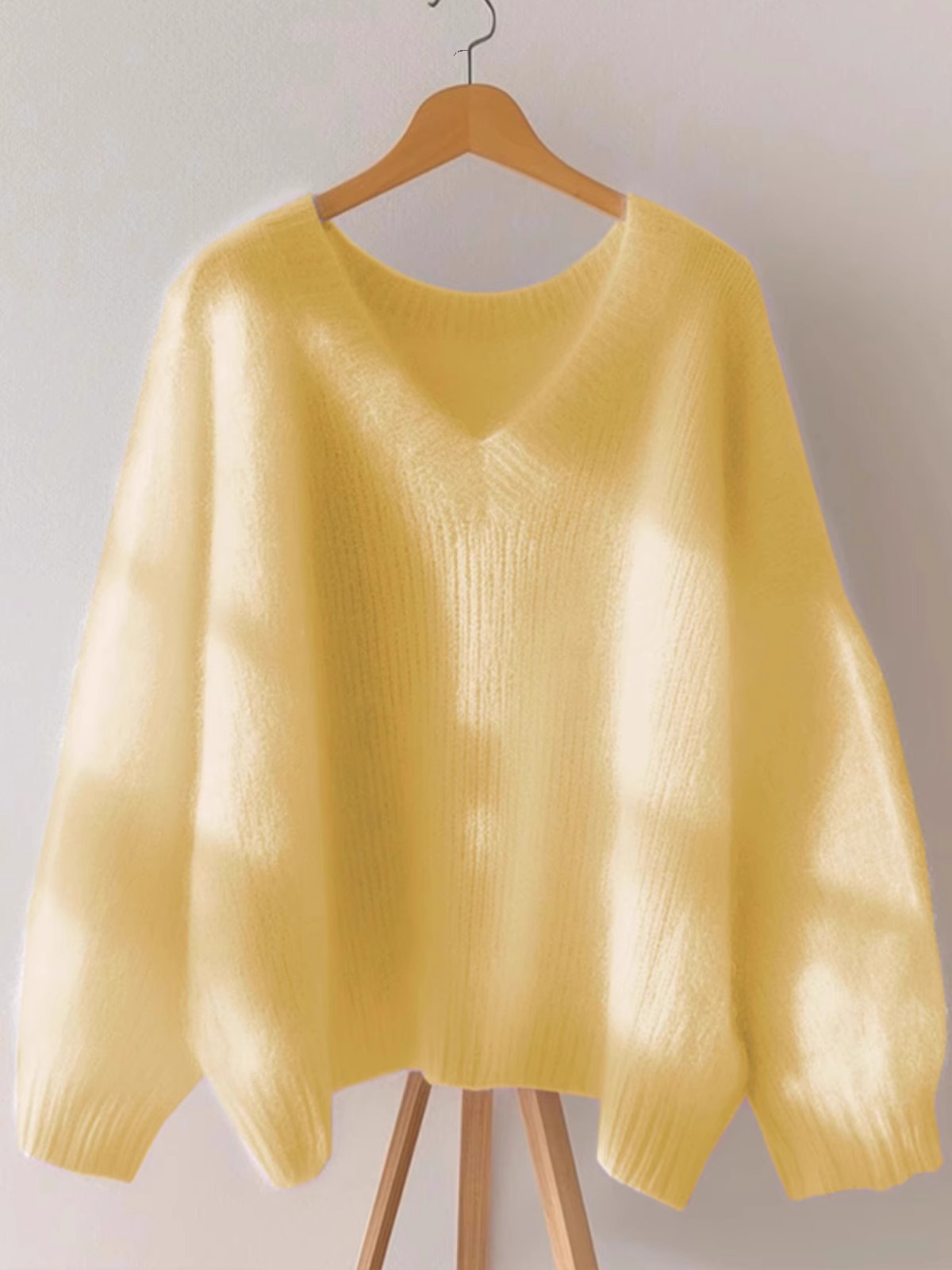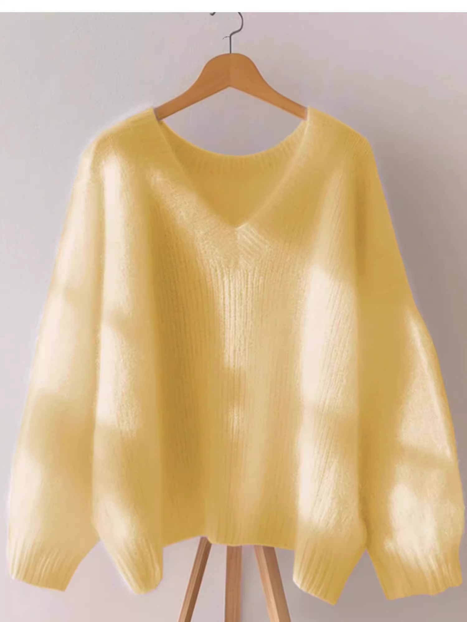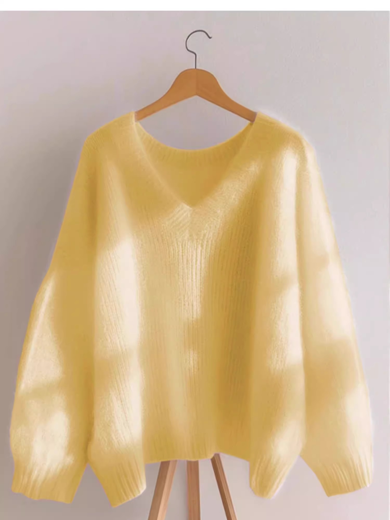 高級感超好看V領軟糯毛衣針織衫女秋冬新款慵懶風松弛感黃色上衣