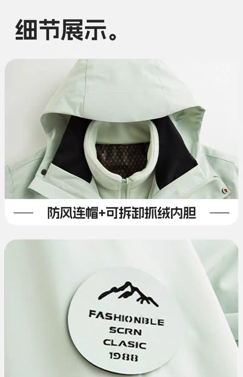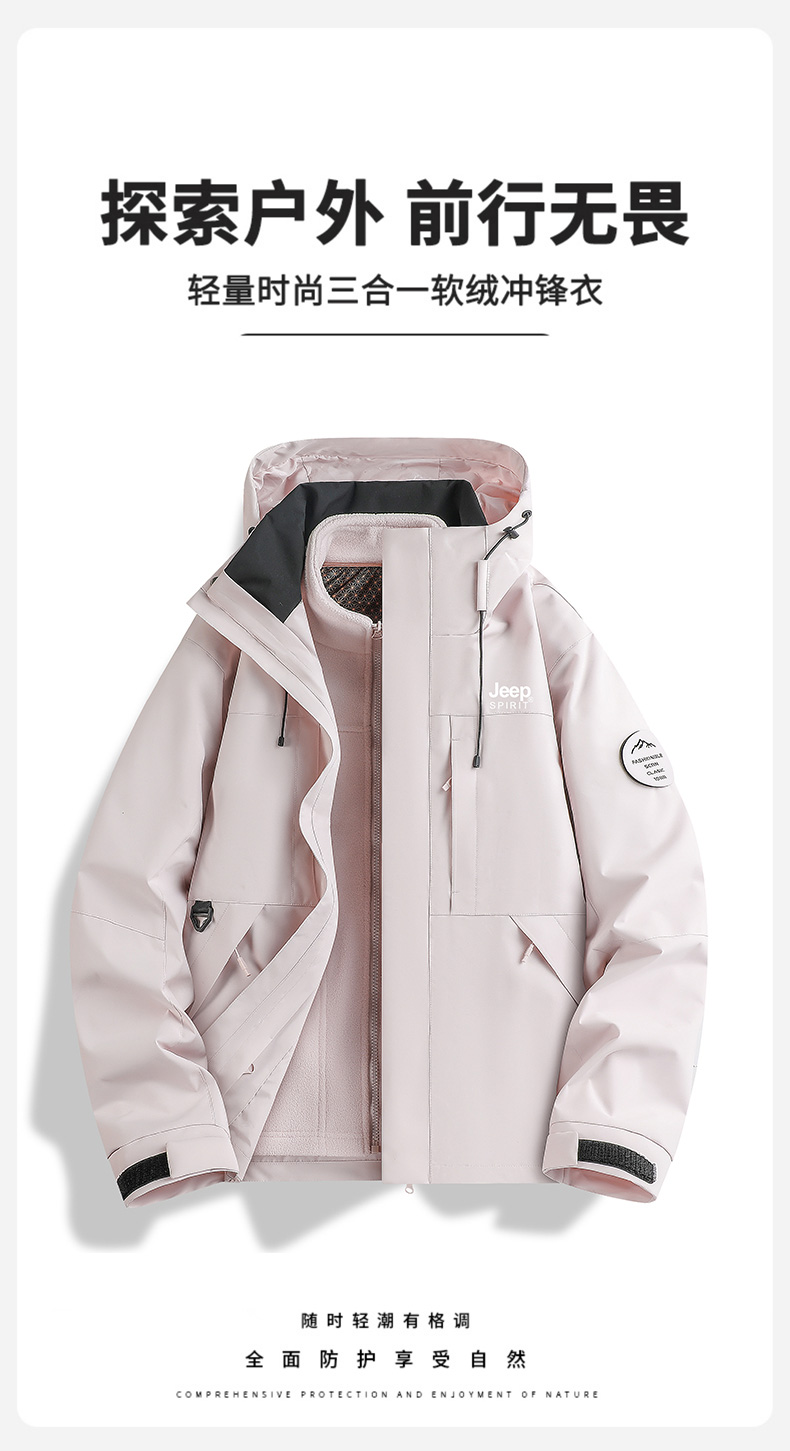 JEEP沖鋒衣女2025新款春秋季戶外三合一可拆卸登山防風冬天外套男