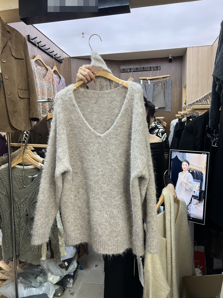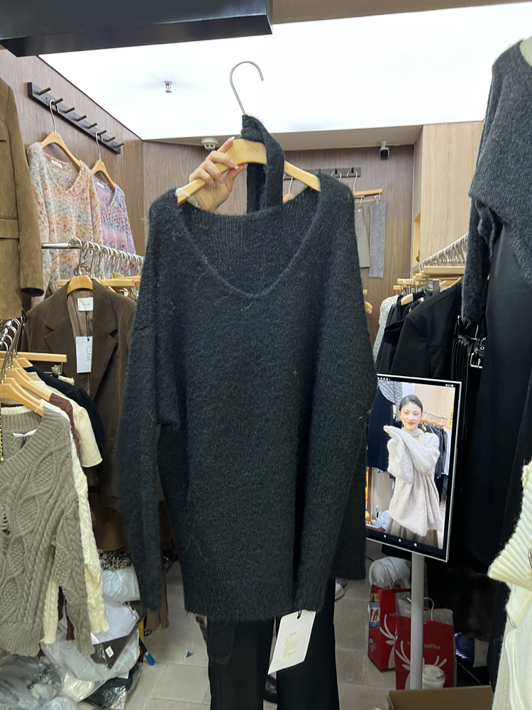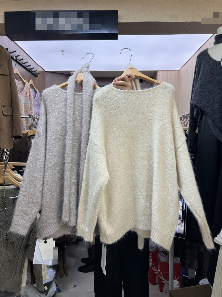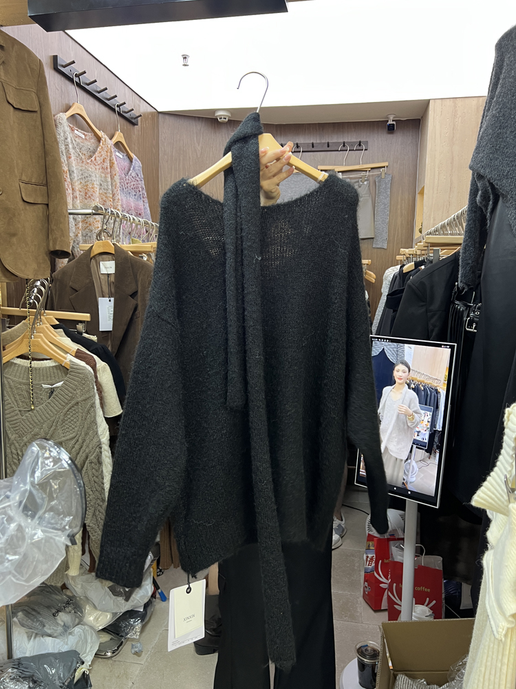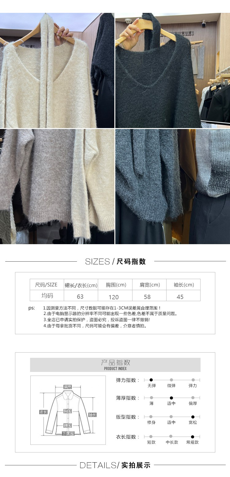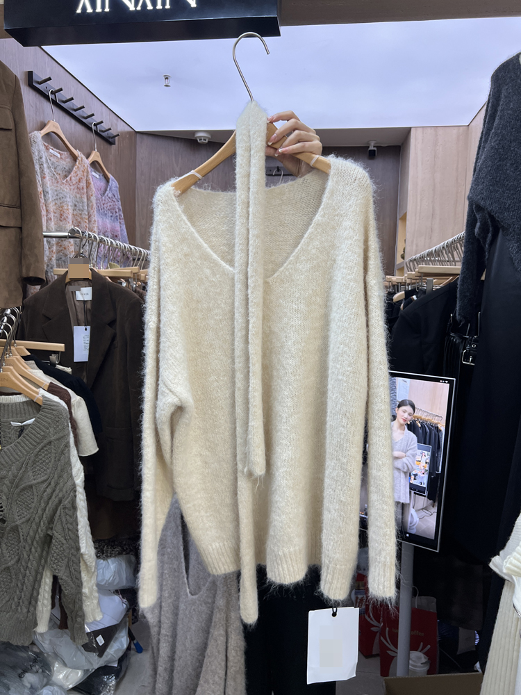 秋季韓版休閒針織慵懶風時尚韓國東大門百搭顯瘦V領毛衣配圍巾女