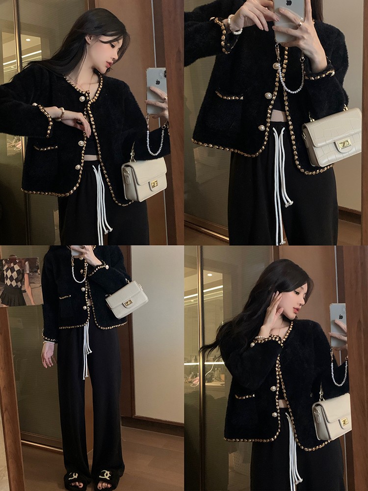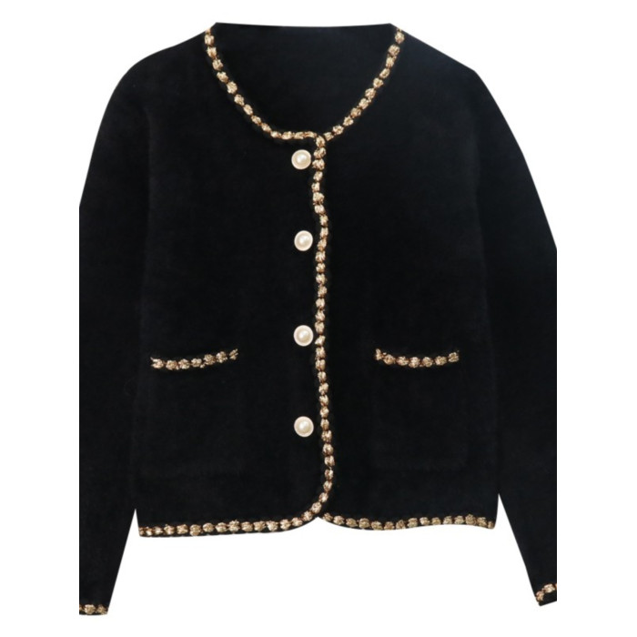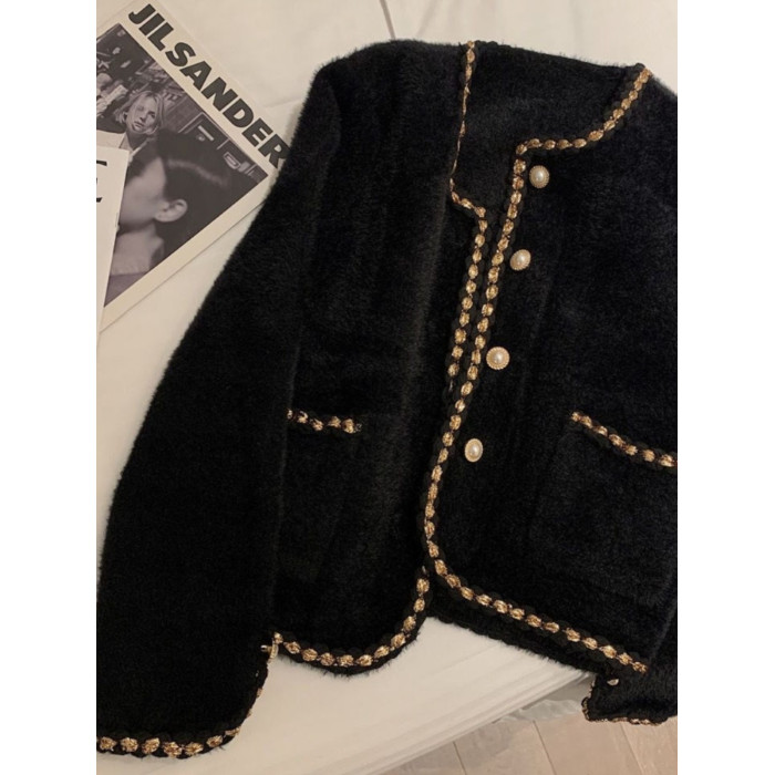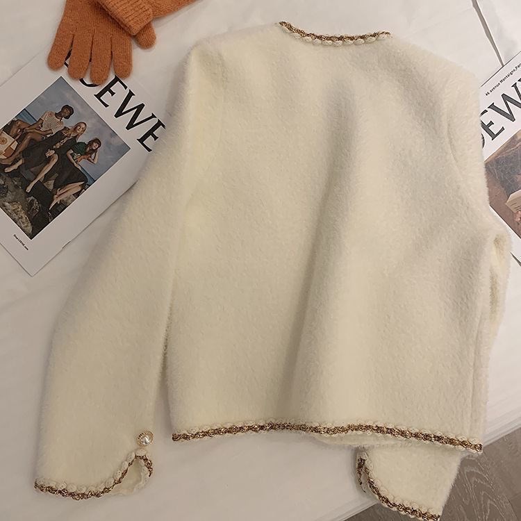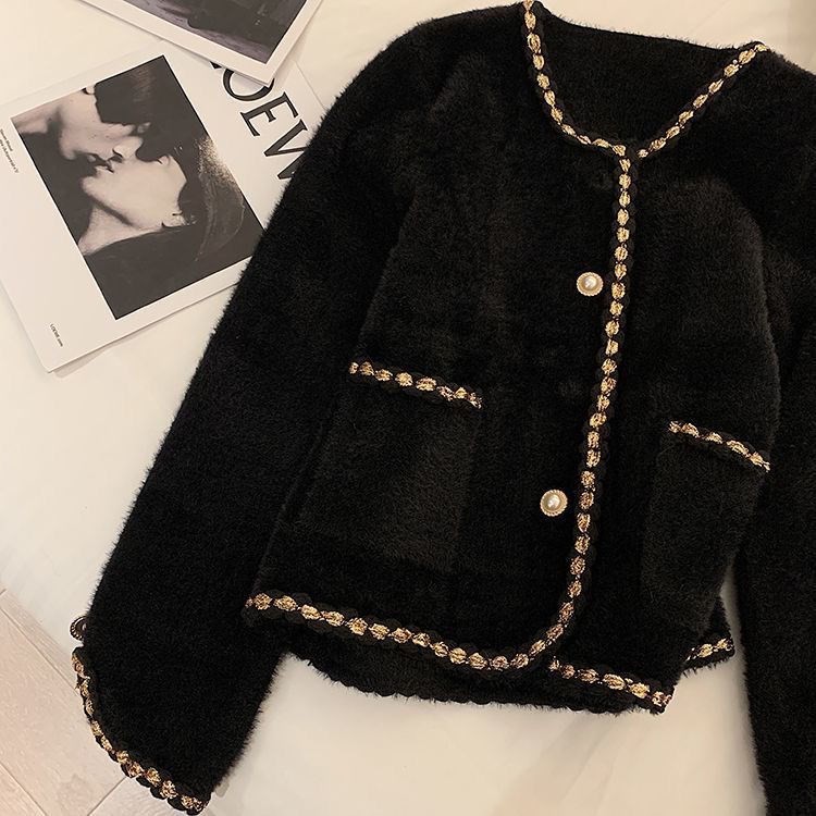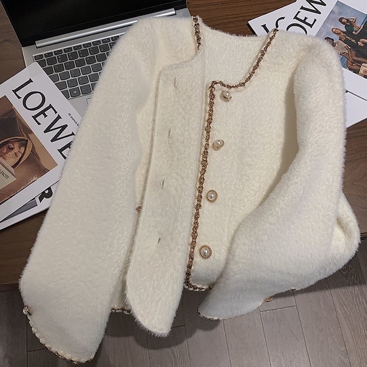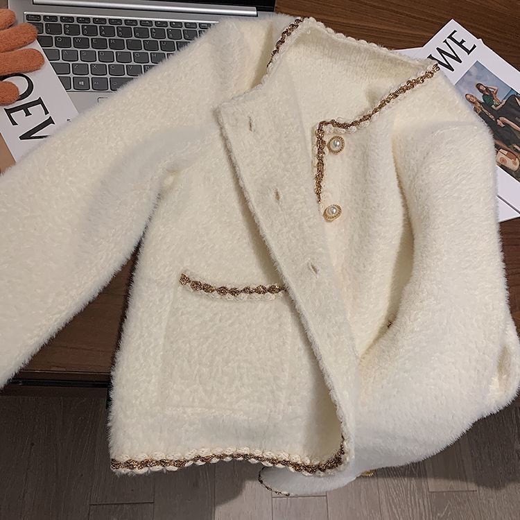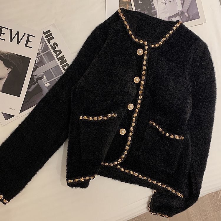 2023秋冬新款高級感水貂絨寬松氣質毛衣外套女短款小香風針織開衫