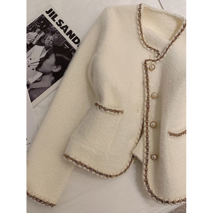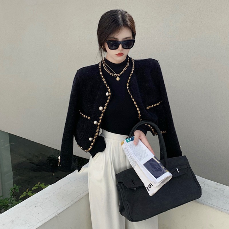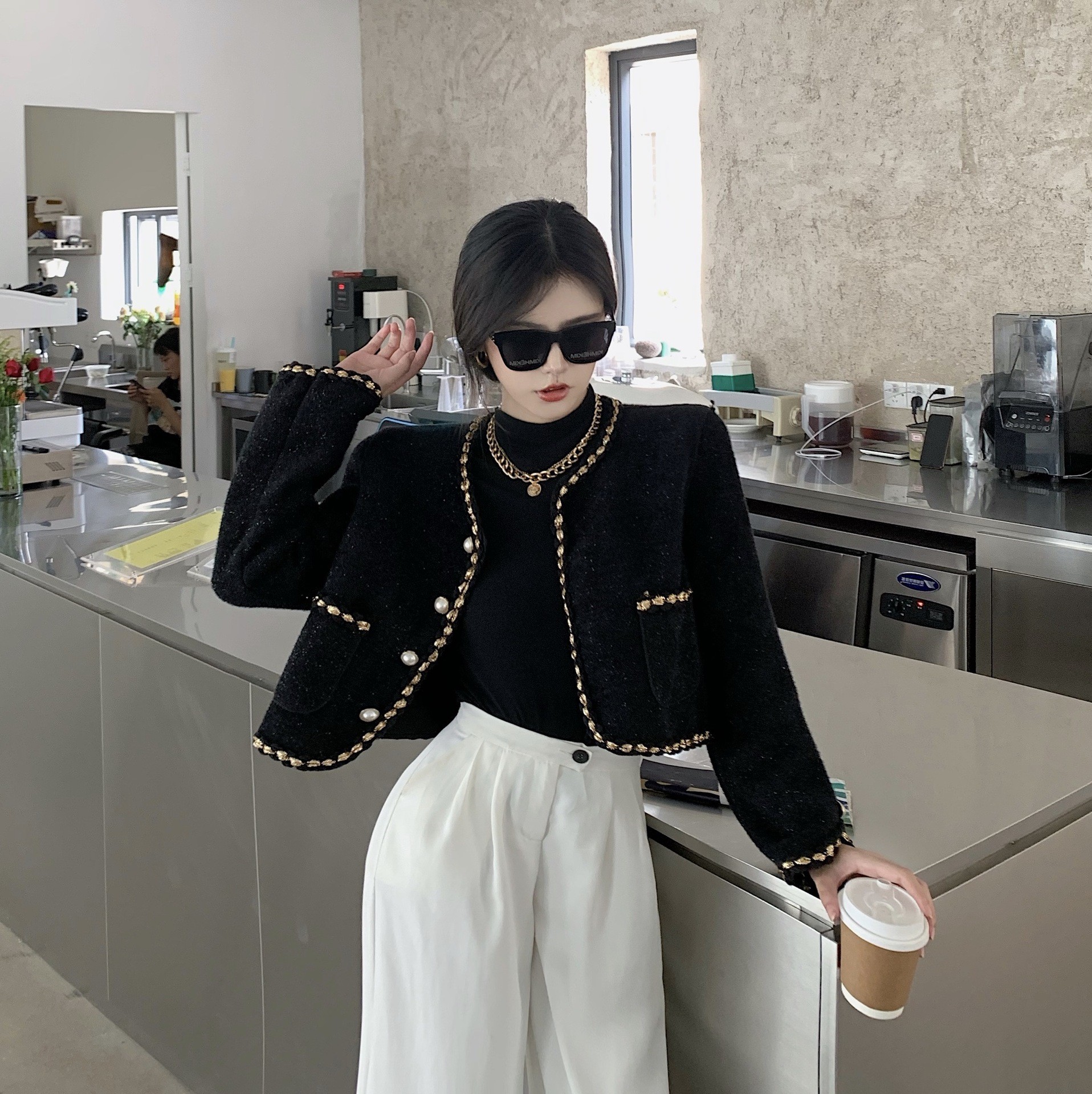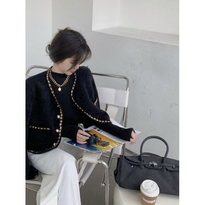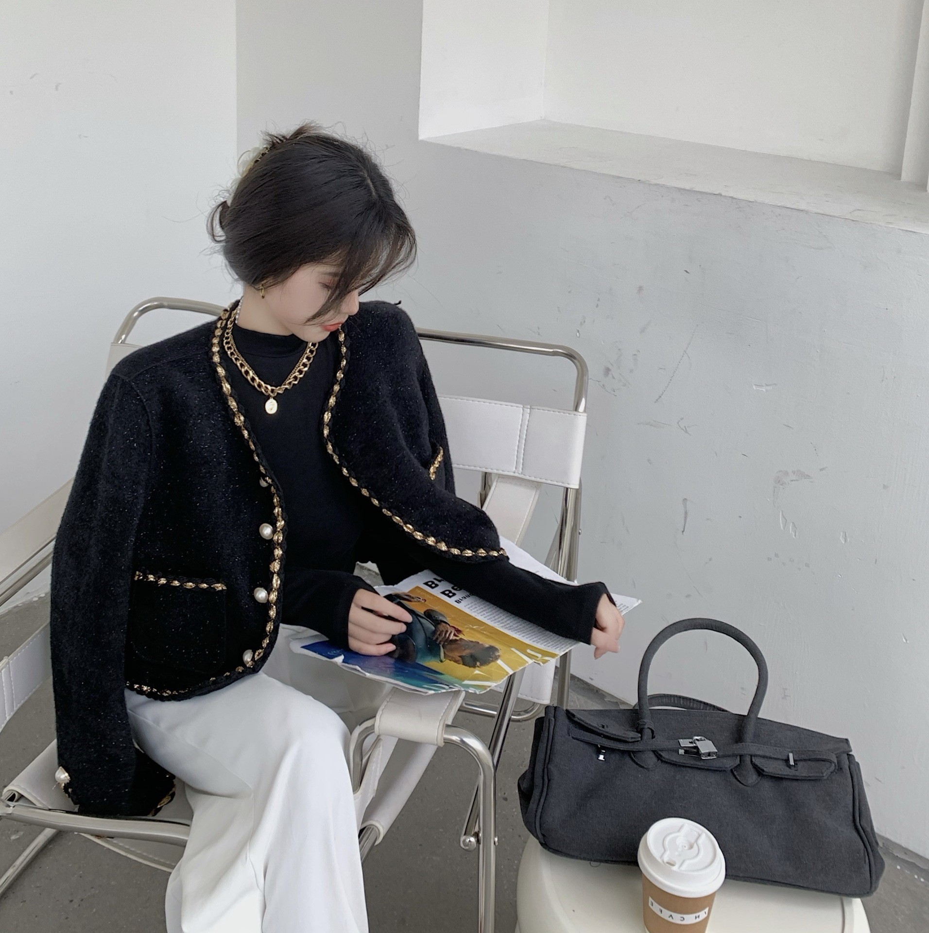 2023秋冬新款高級感水貂絨寬松氣質毛衣外套女短款小香風針織開衫