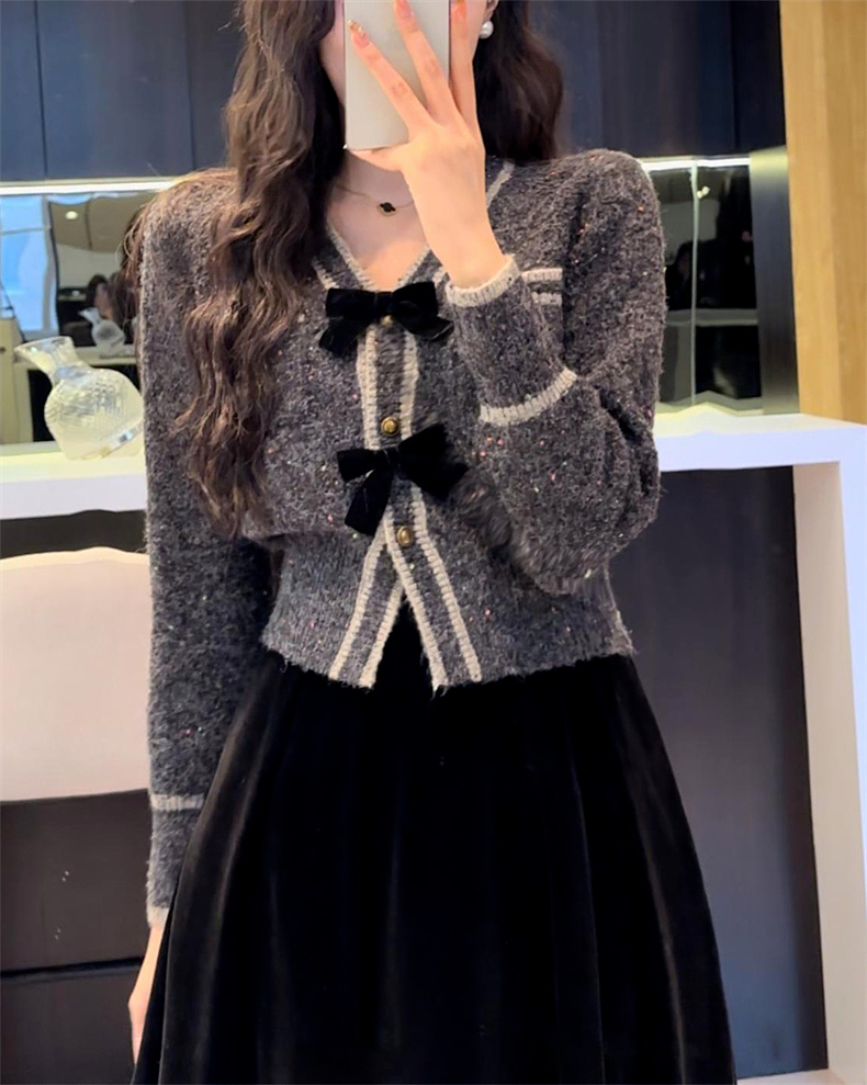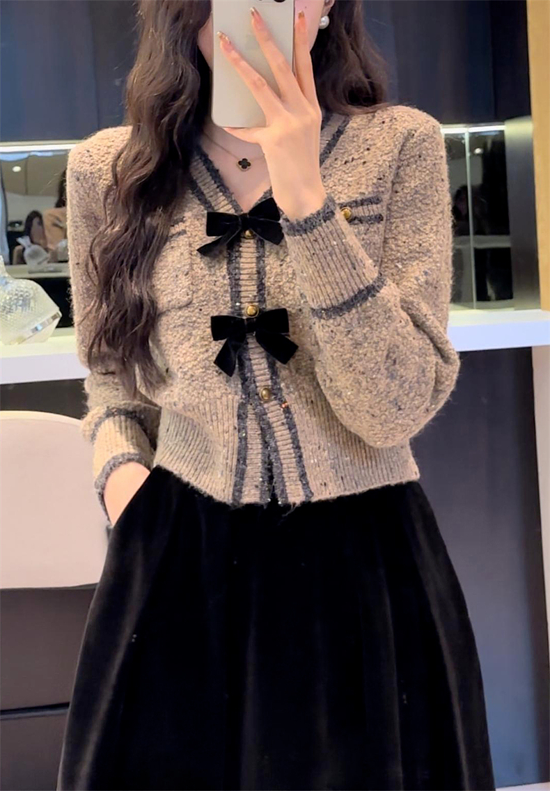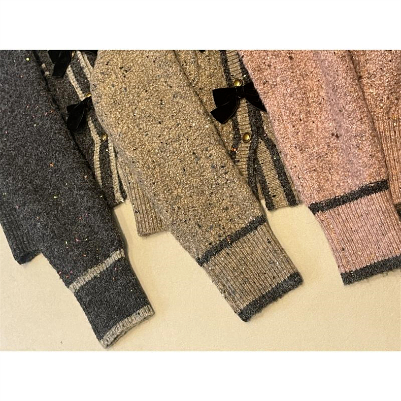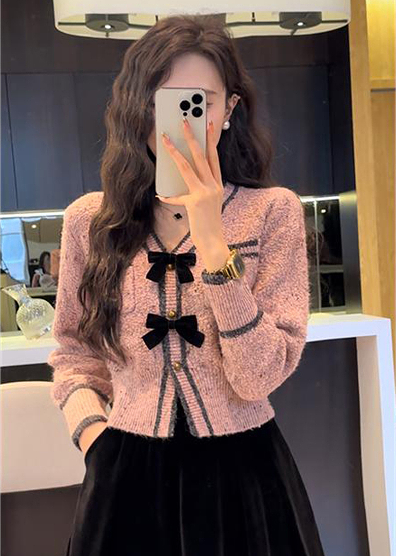 小個子香風粉色蝴蝶結毛衣女2025新款秋冬慵懶高級感法式短款開衫