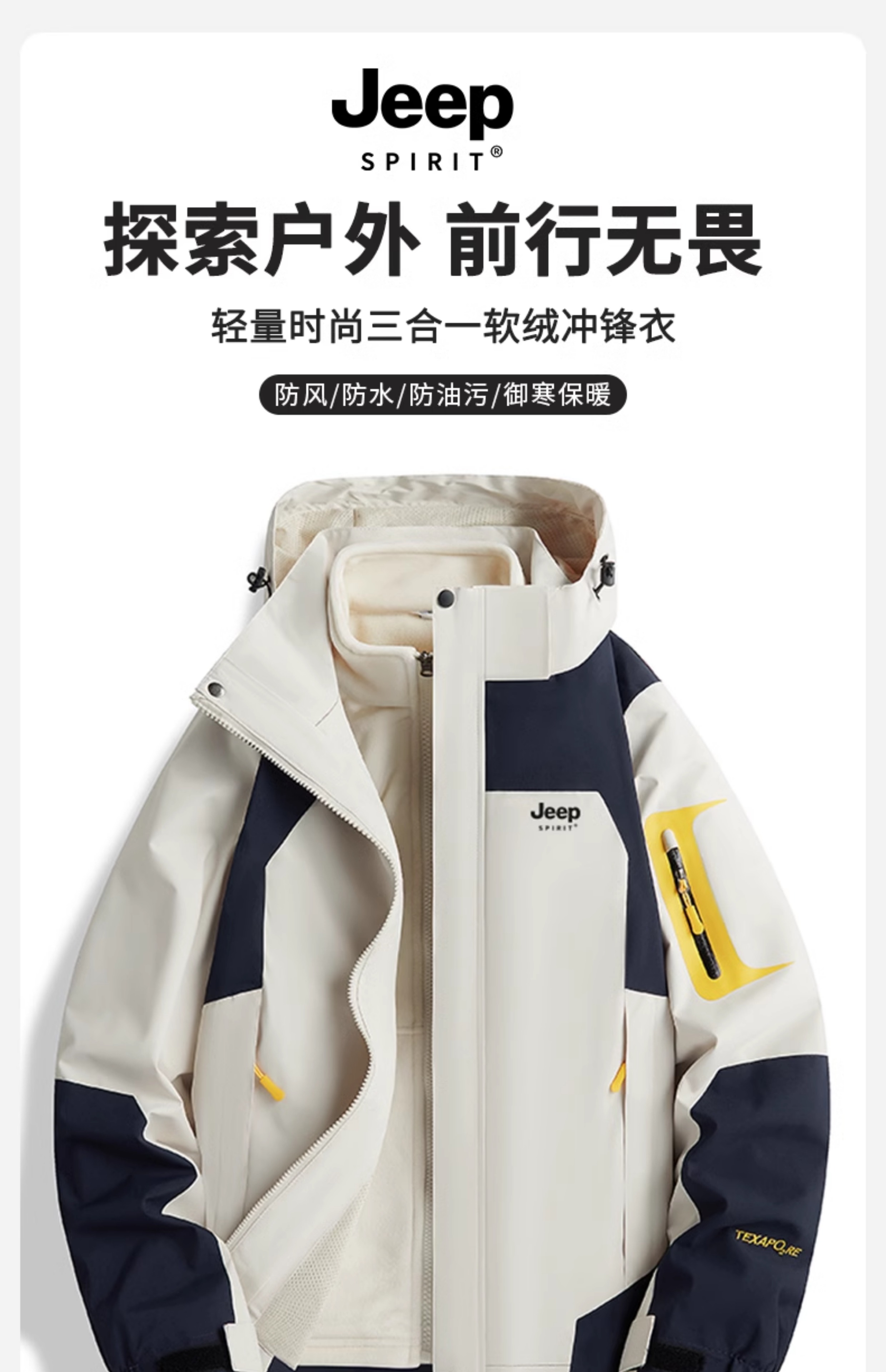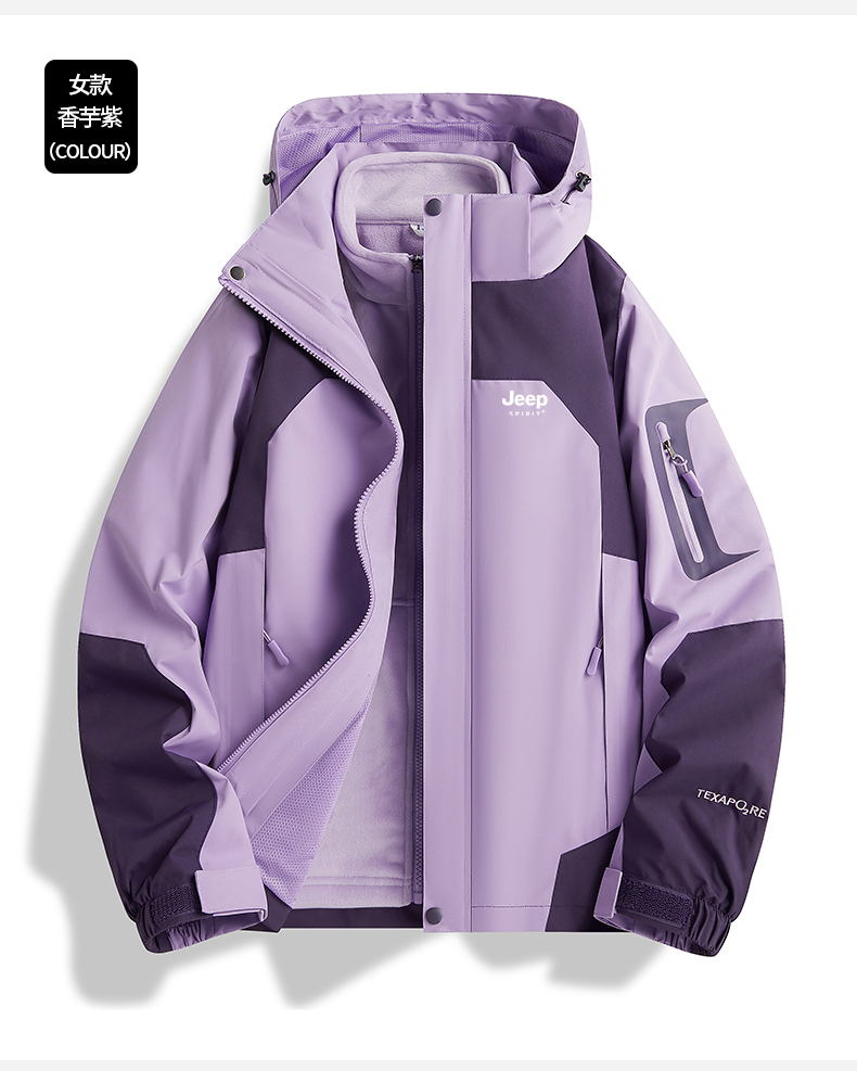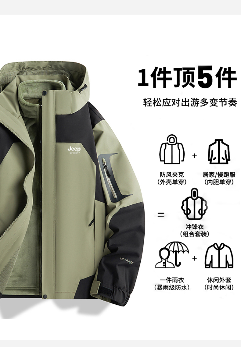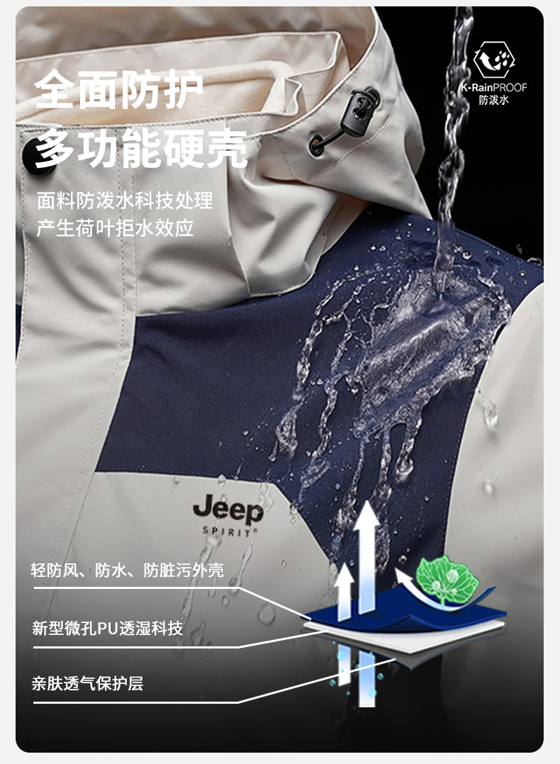 JEEP SPIRIT沖鋒衣女款2025新款春秋季小個子戶外三合一爬山外套