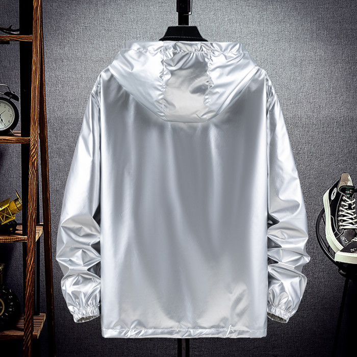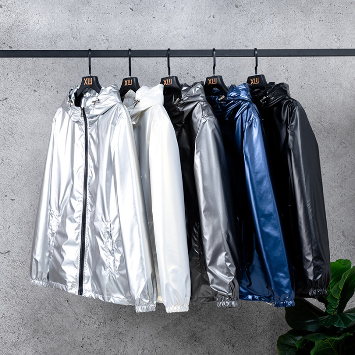 港風亮面銀色外套女2021秋季學生通勤防水休閒夾克時尚百搭防風衣