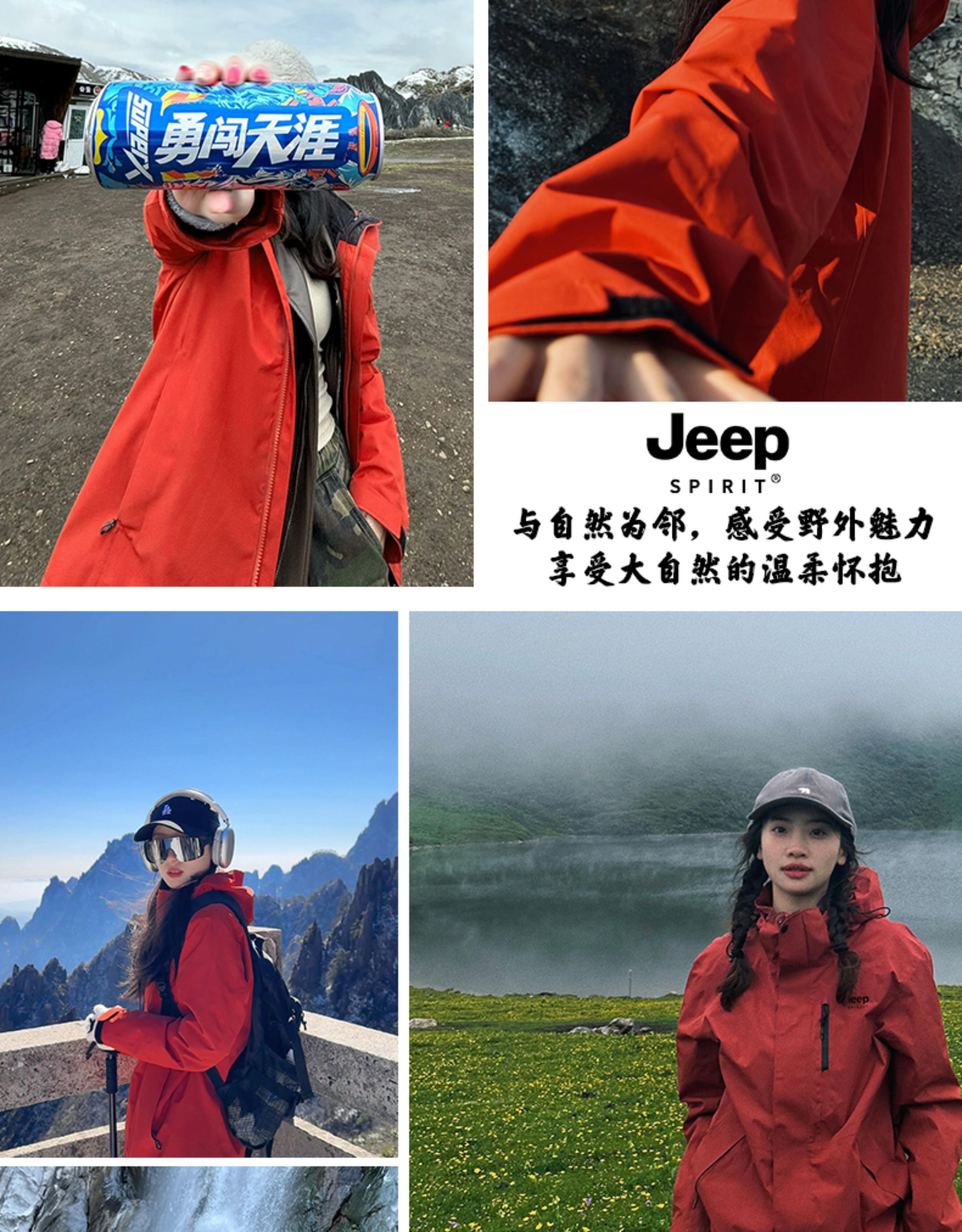 JEEP SPIRIT紅色沖鋒衣女2025新款春秋三合一戶外情侶小個子外套