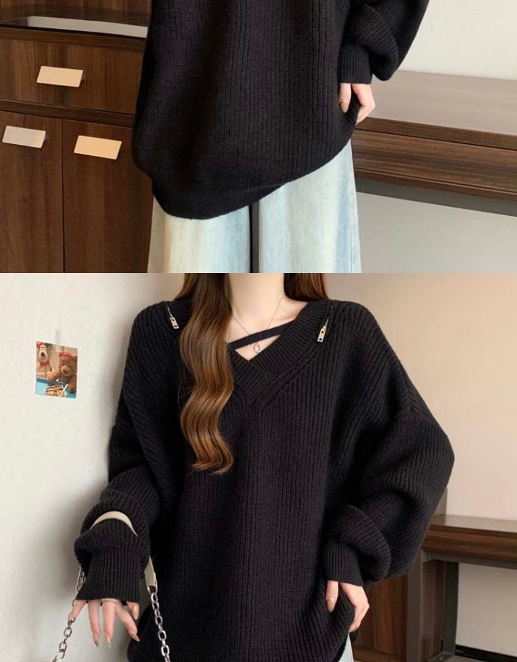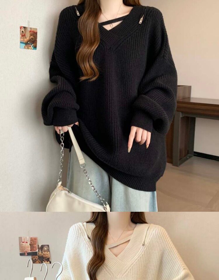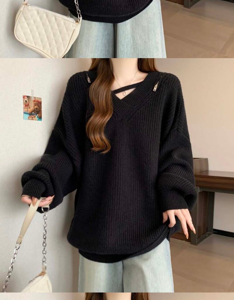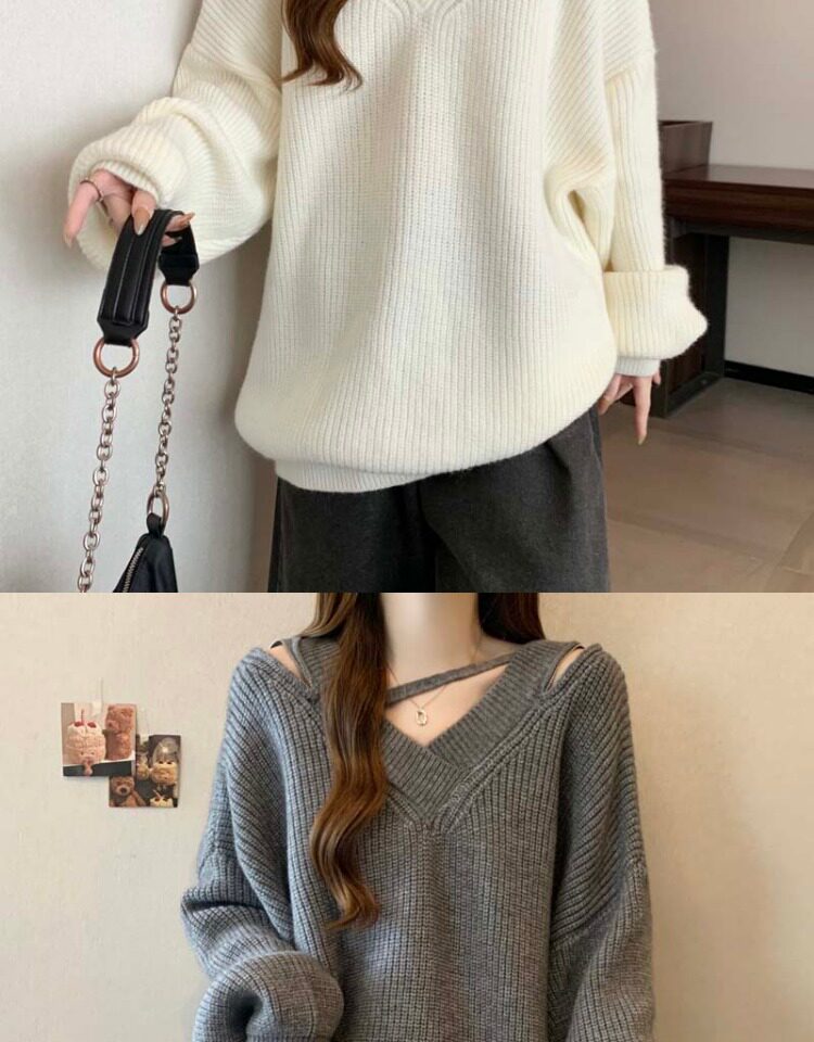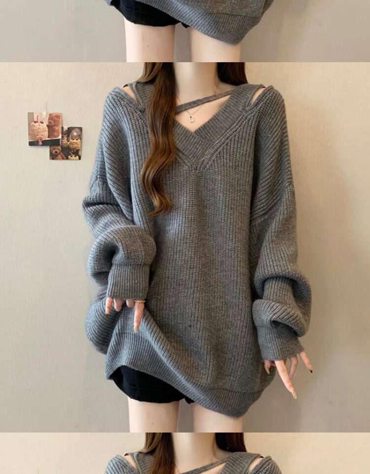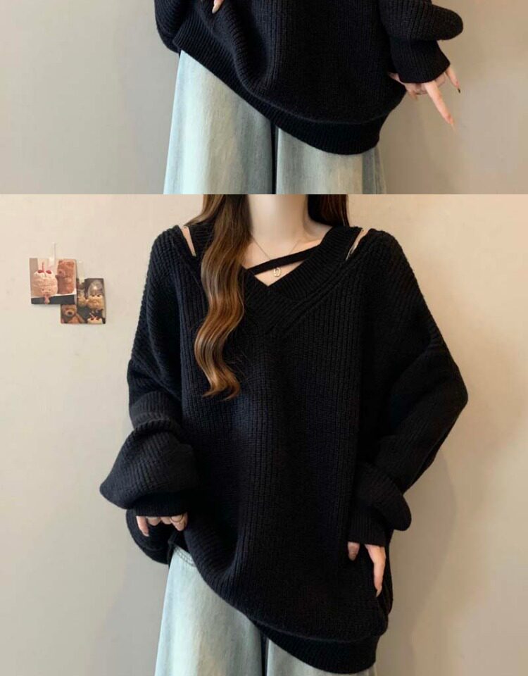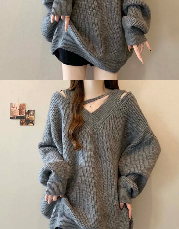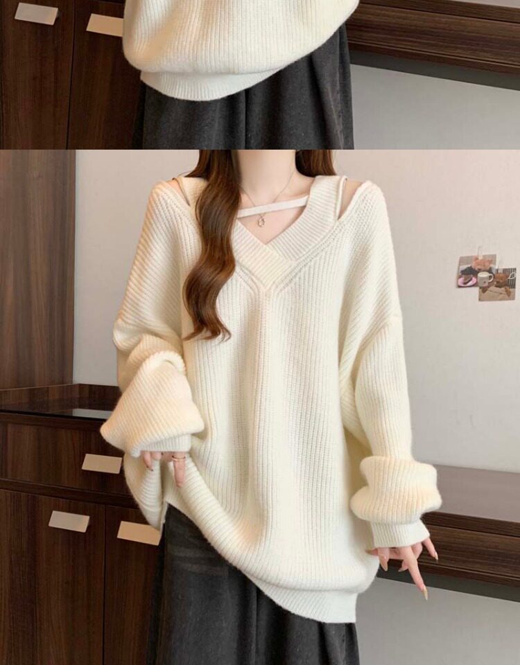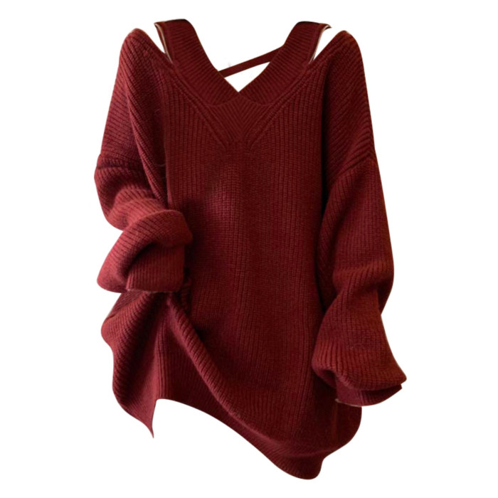 Tina CLUB大碼女裝秋冬季胖mm新年穿搭設計感露肩中長款紅色毛衣