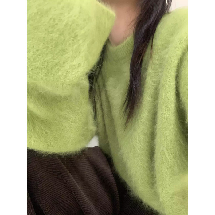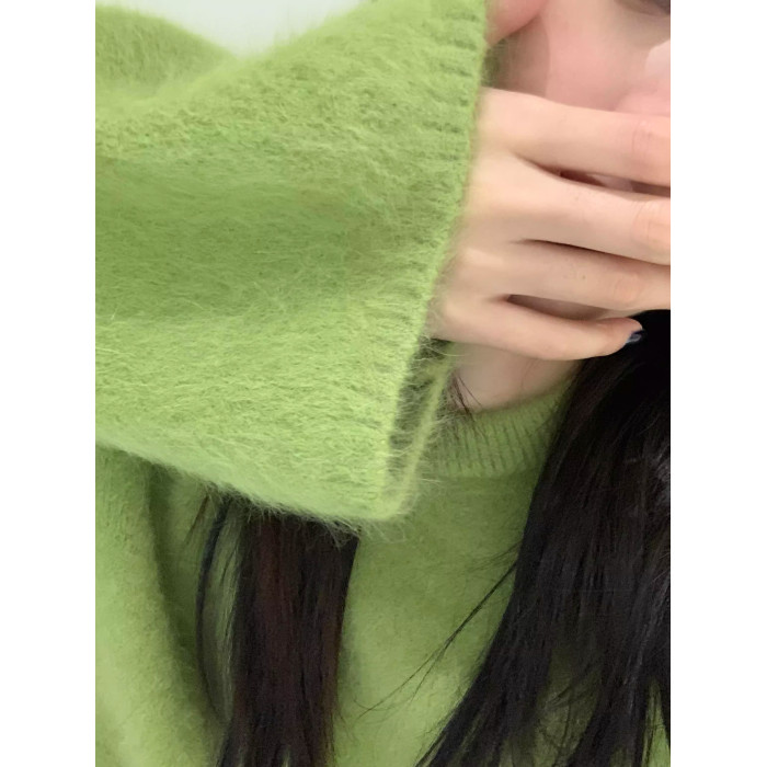 慵懶風綠色顯白長袖毛衣女2025秋冬新款寬松套頭軟糯內搭別致上衣