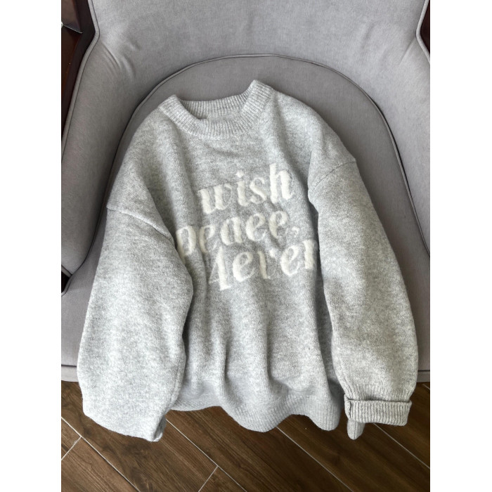 美式復古字母提花灰色毛衣女秋冬寬松外穿慵懶風圓領軟糯針織上衣