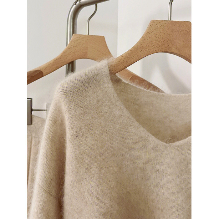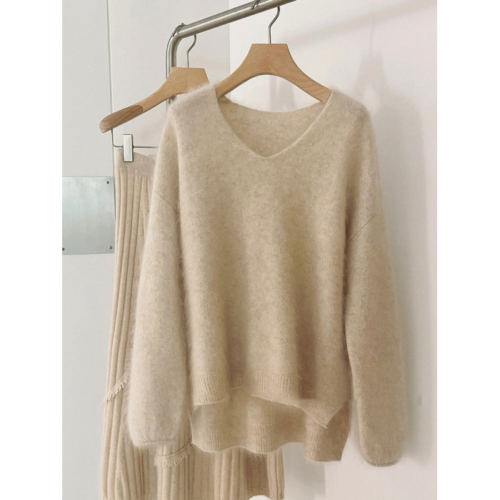 浣熊絨v領毛衣女秋冬內搭慵懶風寬松針織打底衫外穿設計感上衣厚